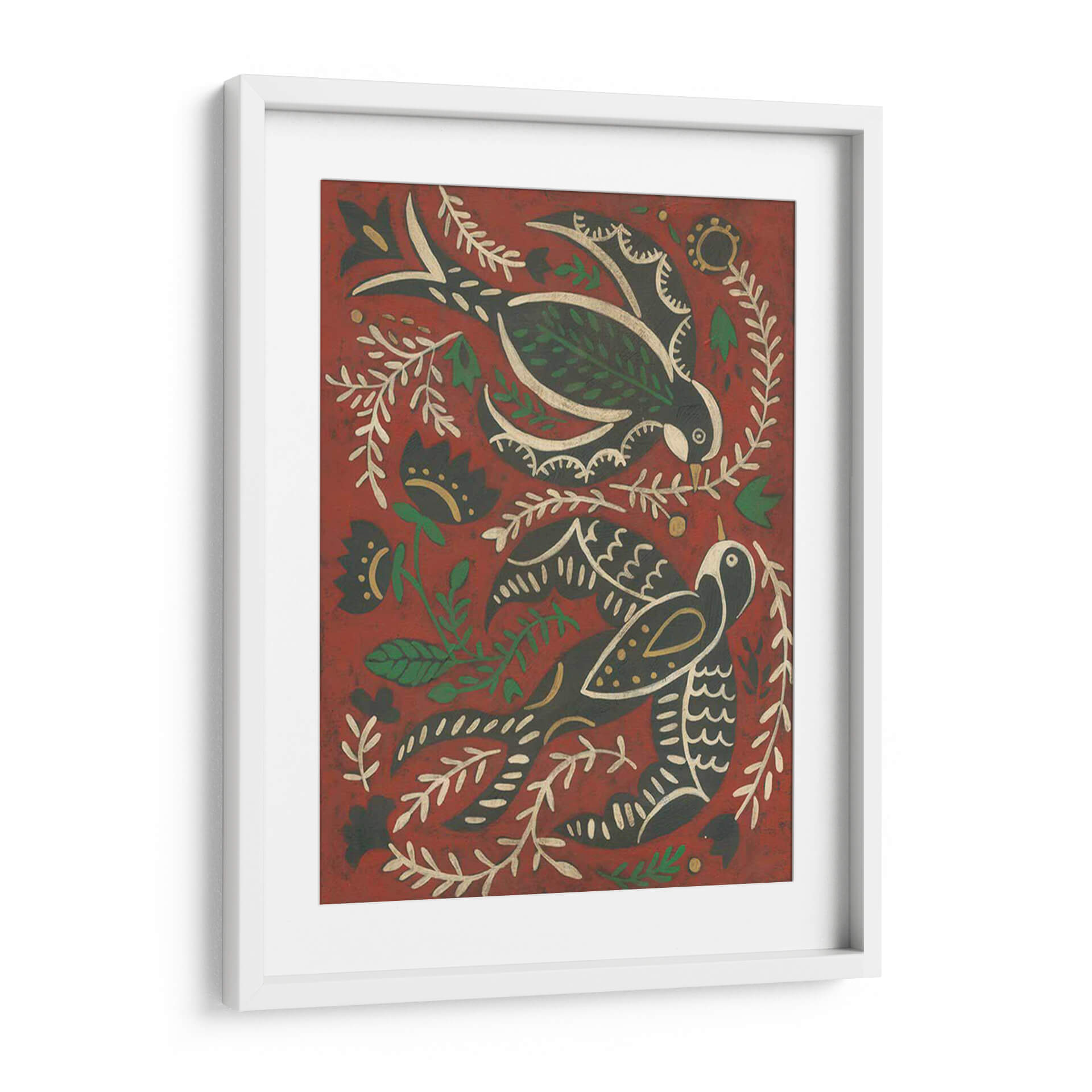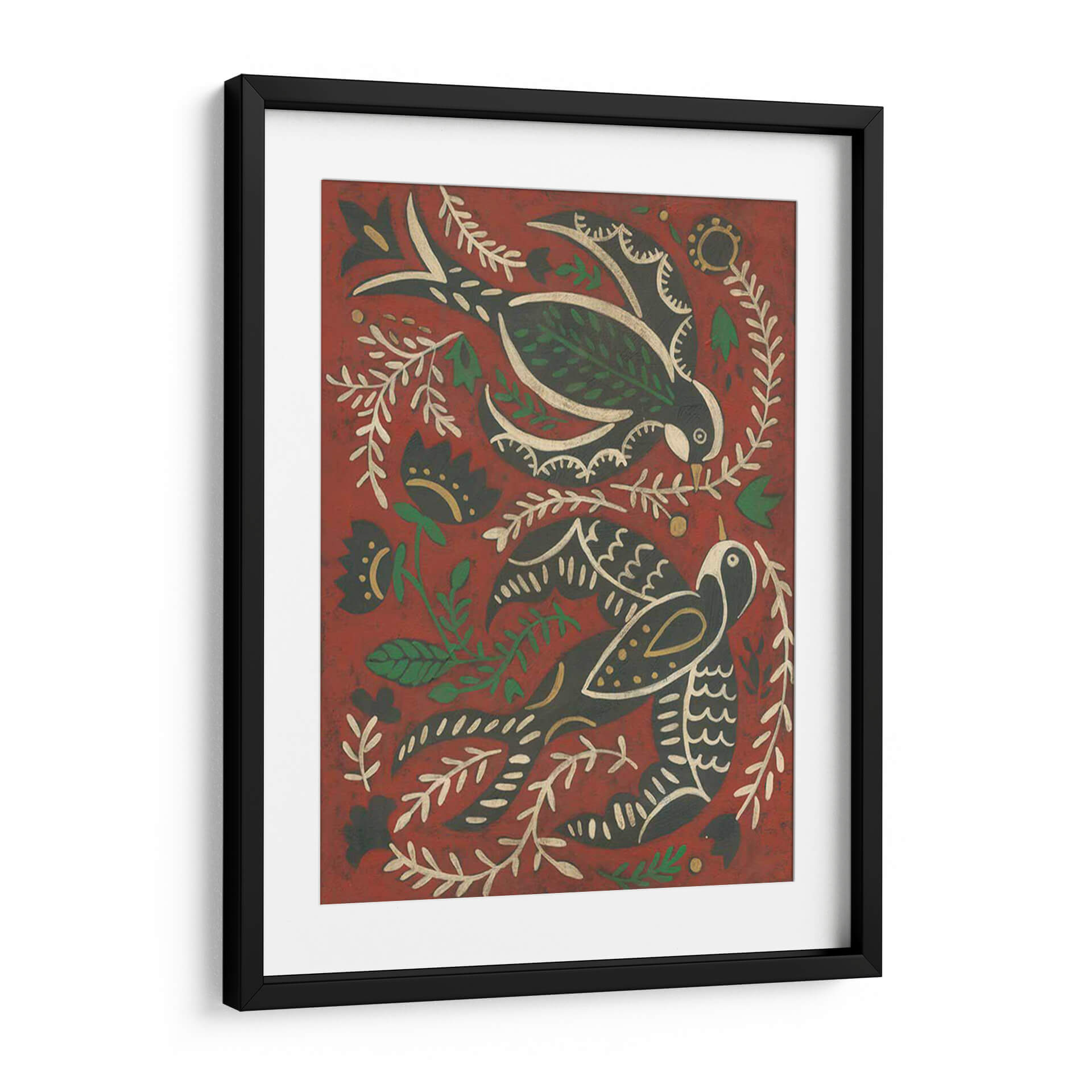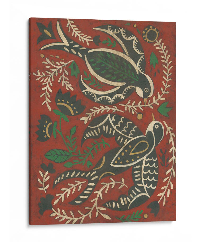 Sumérgete en la cautivadora belleza del cuadro decorativo "Vuelo Bound Ii" de Chariklia Zarris. Esta obra de arte, con su vibrante paleta de rojos intensos y contrastes de negro, verde y detalles dorados, evoca una sensación de vitalidad folclórica y un toque rústico encantador. La composición presenta dos pájaros estilizados, elaboradamente decorados con patrones intrincados, rodeados por un follaje exuberante y flores abstractas. El estilo distintivo de Zarris, que recuerda a las tradiciones del arte popular y los textiles, aporta una narrativa visual única que celebra la naturaleza y el movimiento. Cada trazo y detalle está diseñado para capturar la imaginación, creando una pieza que se siente a la vez antigua y atemporal. Ideal para añadir un punto focal lleno de personalidad a cualquier sala de estar, comedor o incluso un espacio de oficina que busque un toque de color y carácter. "Vuelo Bound Ii" no es solo una obra de arte, sino una ventana a un mundo de imaginación y diseño, perfecta para quienes aprecian la artesanía detallada y los motivos orgánicos. Descubre cómo este cuadro decorativo puede transformar tu hogar en un santuario de estilo y expresión artística, convirtiéndose en el centro de todas las miradas y conversaciones.