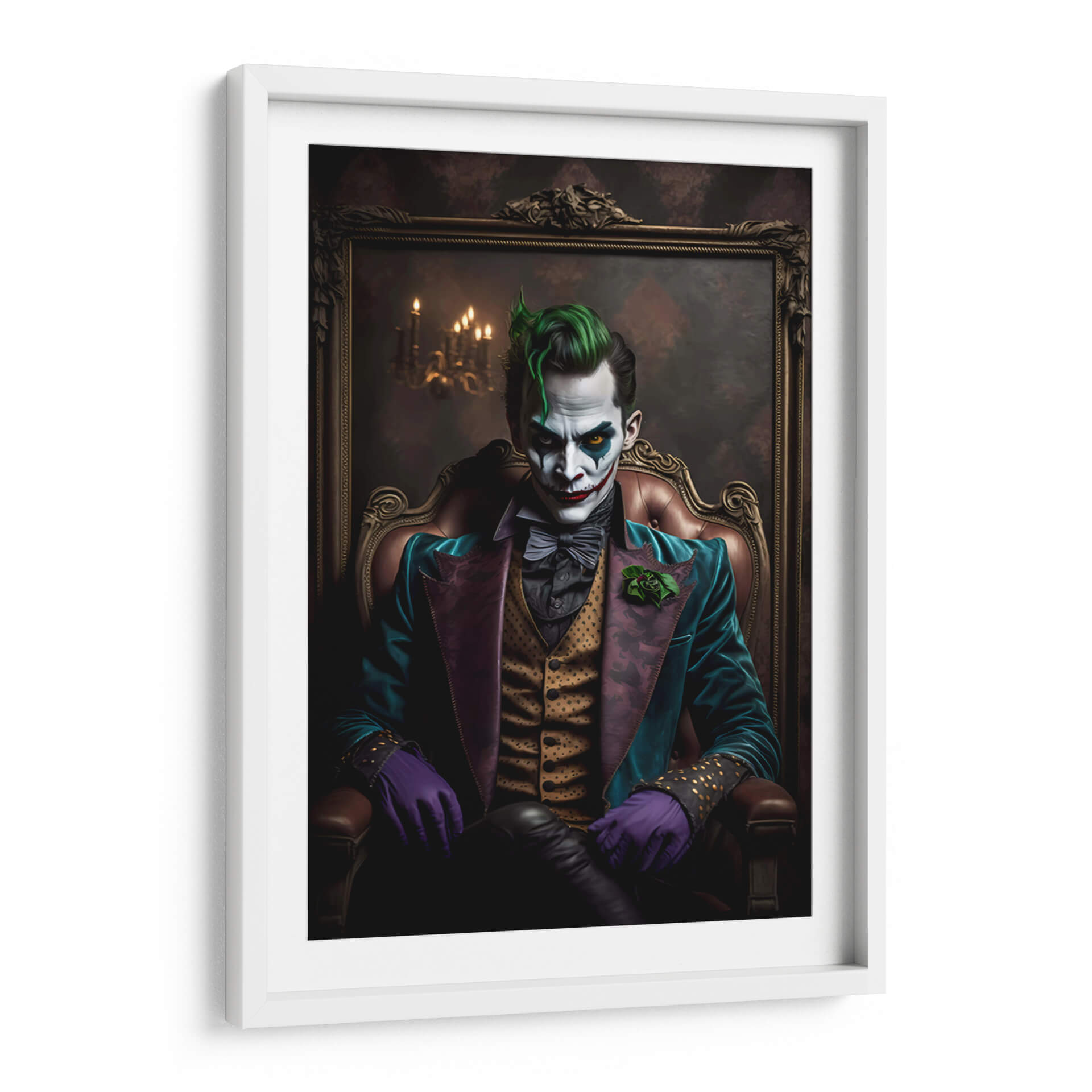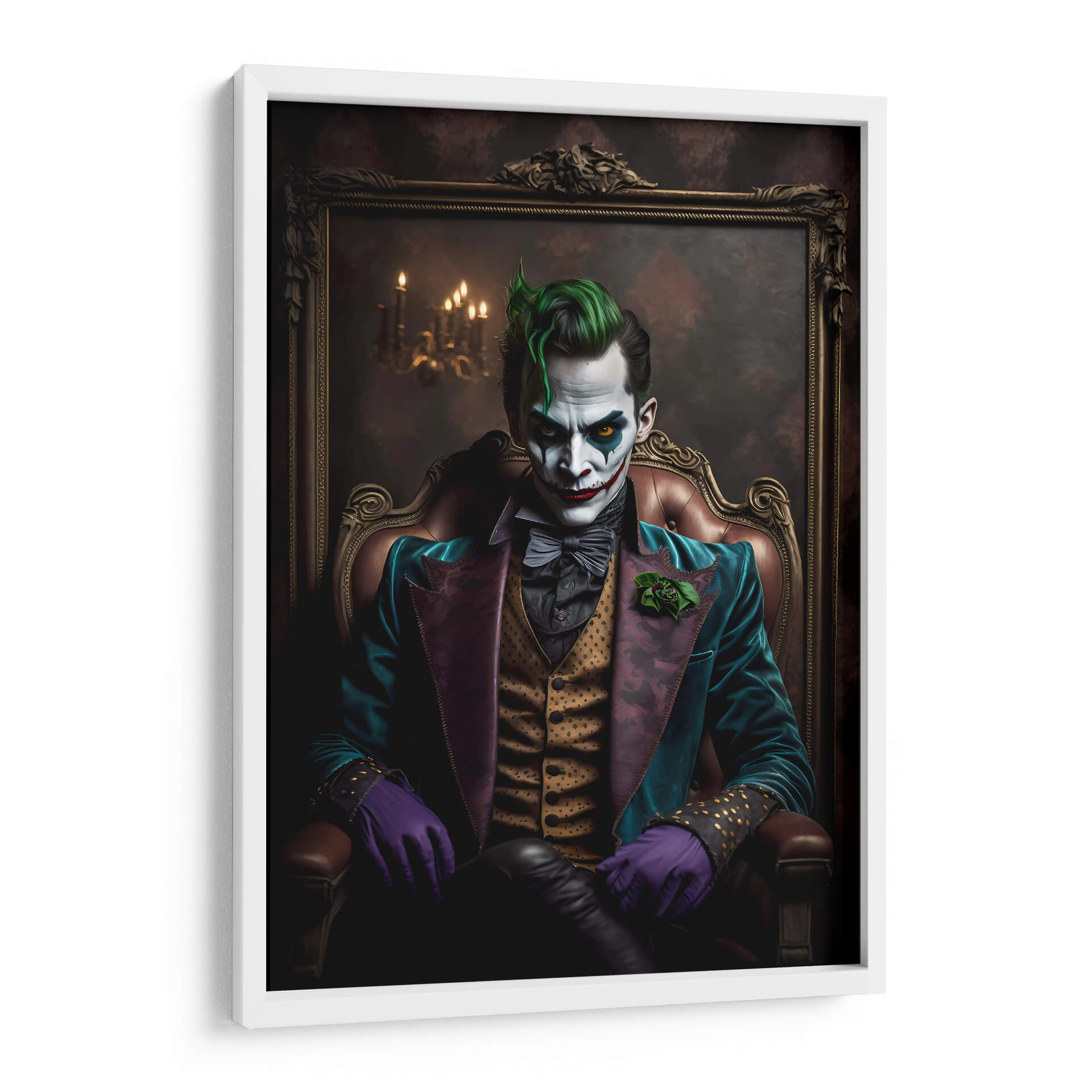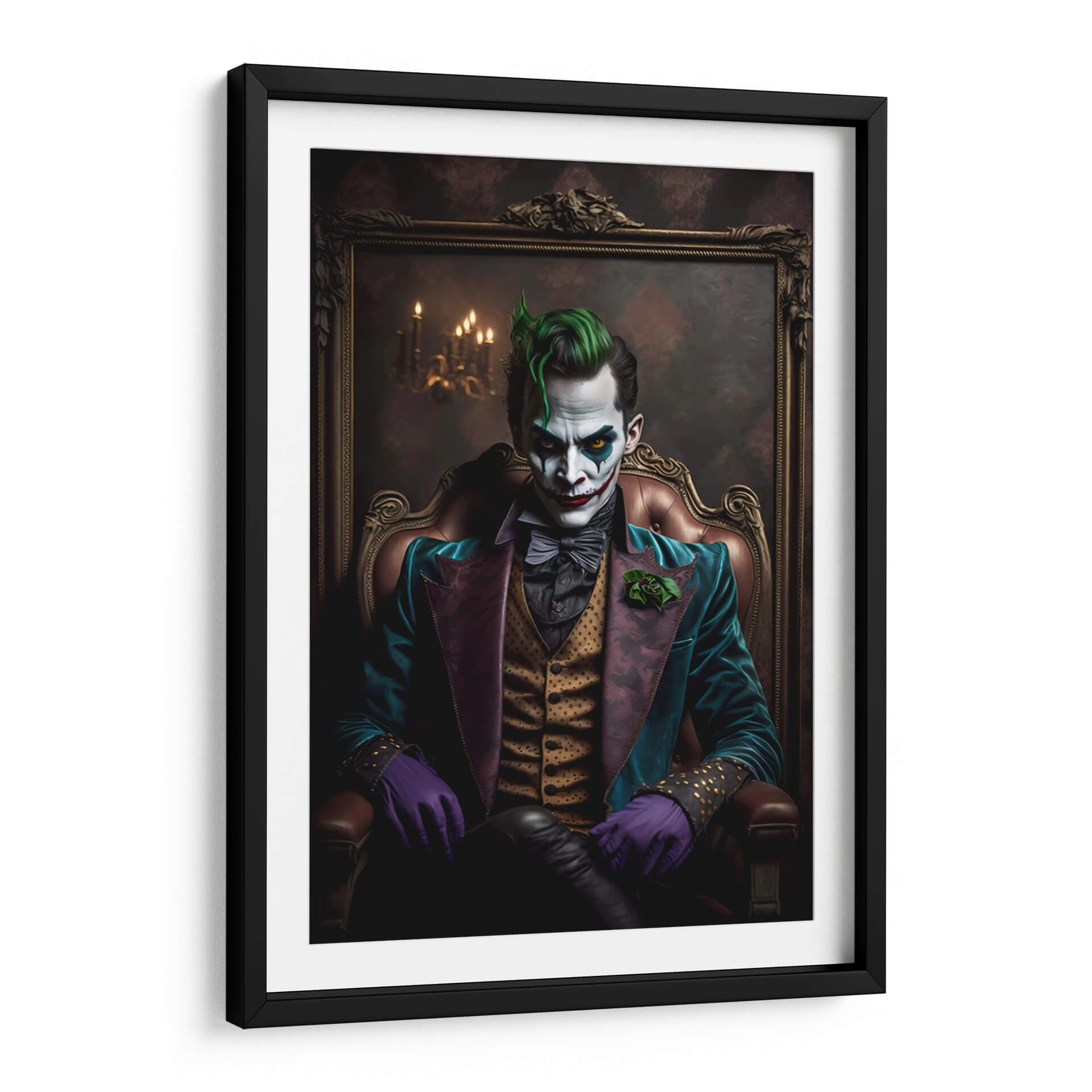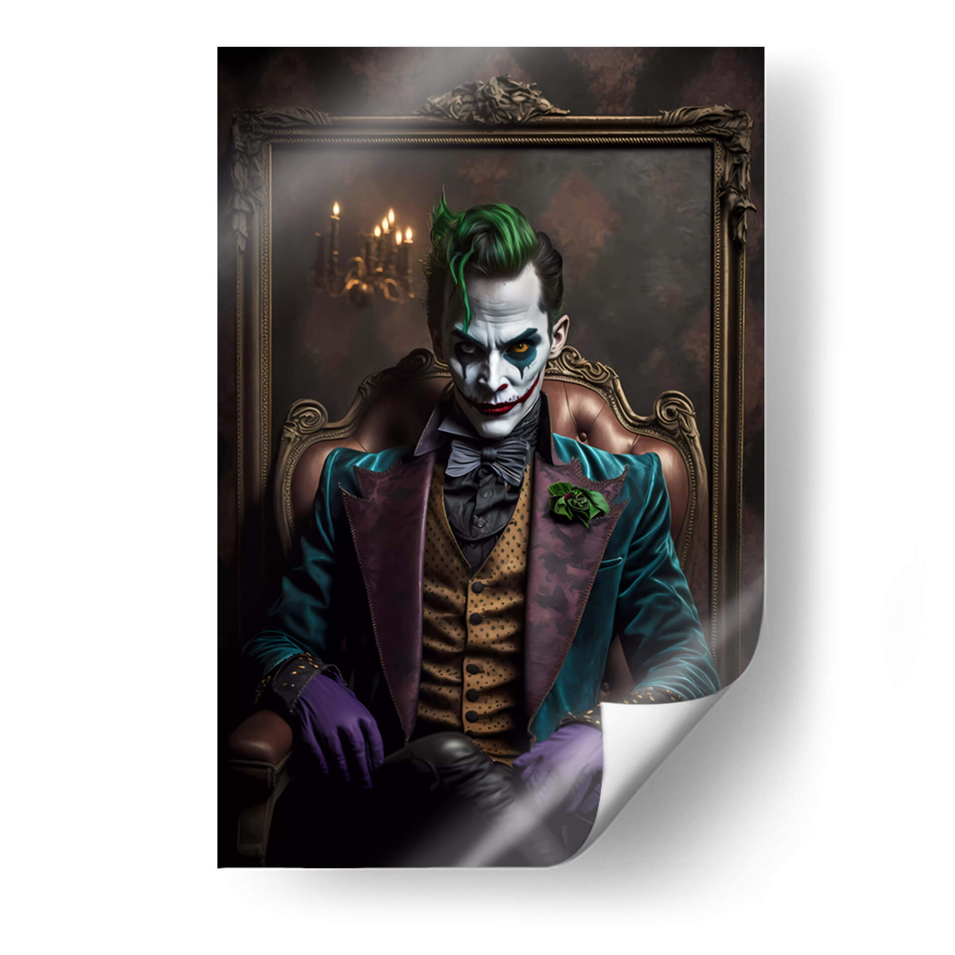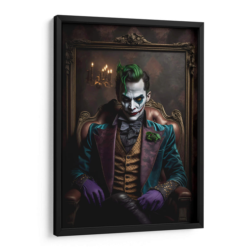 Sumérgete en la enigmática presencia de 'Joker Victoriano', una obra de arte que redefine la dualidad y el misterio. Este cuadro decorativo captura a un personaje icónico reimaginado con una estética de época, fusionando lo macabro con la opulencia. La figura central, sentada majestuosamente en un sillón de terciopelo, irradia una energía compleja; sus intensos ojos amarillos y la distintiva sonrisa pintada contrastan con la finura de su vestimenta victoriana, de terciopelo verde azulado y detalles dorados. El fondo oscuro, sutilmente texturizado y realzado por la luz de candelabros, evoca una atmósfera de intriga y teatralidad, invitando a la contemplación. Los tonos profundos y ricos de la paleta, dominados por marrones, verdes esmeralda, púrpuras y acentos dorados, confieren a la pieza una sensación de profundidad y sofisticación. El estilo artístico, una mezcla de realismo detallado con un toque de fantasía oscura, la convierte en una pieza impactante para cualquier espacio que busque un acento audaz y conversacional. Ideal para salones, estudios o cualquier rincón que desee un toque de audacia y carácter distintivo.