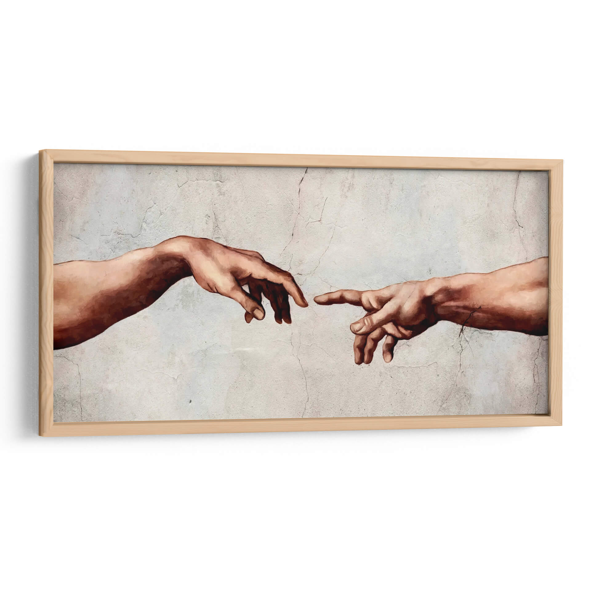 Captura la esencia icónica de la creación y la conexión humana con "La Creación de Adán (manos)" de Dav Madrid. Esta obra de arte decorativa presenta una recreación fiel de uno de los momentos más reconocibles de la historia del arte, enfocándose en el tenso y poderoso instante en que los dedos de Adán y Dios están a punto de tocarse. La paleta de colores terrosos y cálidos, con sutiles sombras y luces, confiere a las manos una textura realista y palpable, mientras que el fondo texturizado en tonos grises y beige añade profundidad y un aire de antigüedad atemporal. El estilo de Dav Madrid, inspirado en el Renacimiento pero con un toque contemporáneo, logra que esta imagen clásica resuene con el espectador moderno. Es una pieza que evoca el origen de la vida, la chispa divina y la interconexión fundamental entre seres. Ideal para cualquier espacio que busque un toque de significado trascendental y una conversación visual poderosa. Este cuadro decorativo es perfecto para añadir un punto de reflexión y belleza a tu sala de estar, estudio u oficina, sirviendo como un recordatorio constante de la potencia de la conexión. Transforma tu pared en un lienzo de historia y emoción con esta icónica representación.