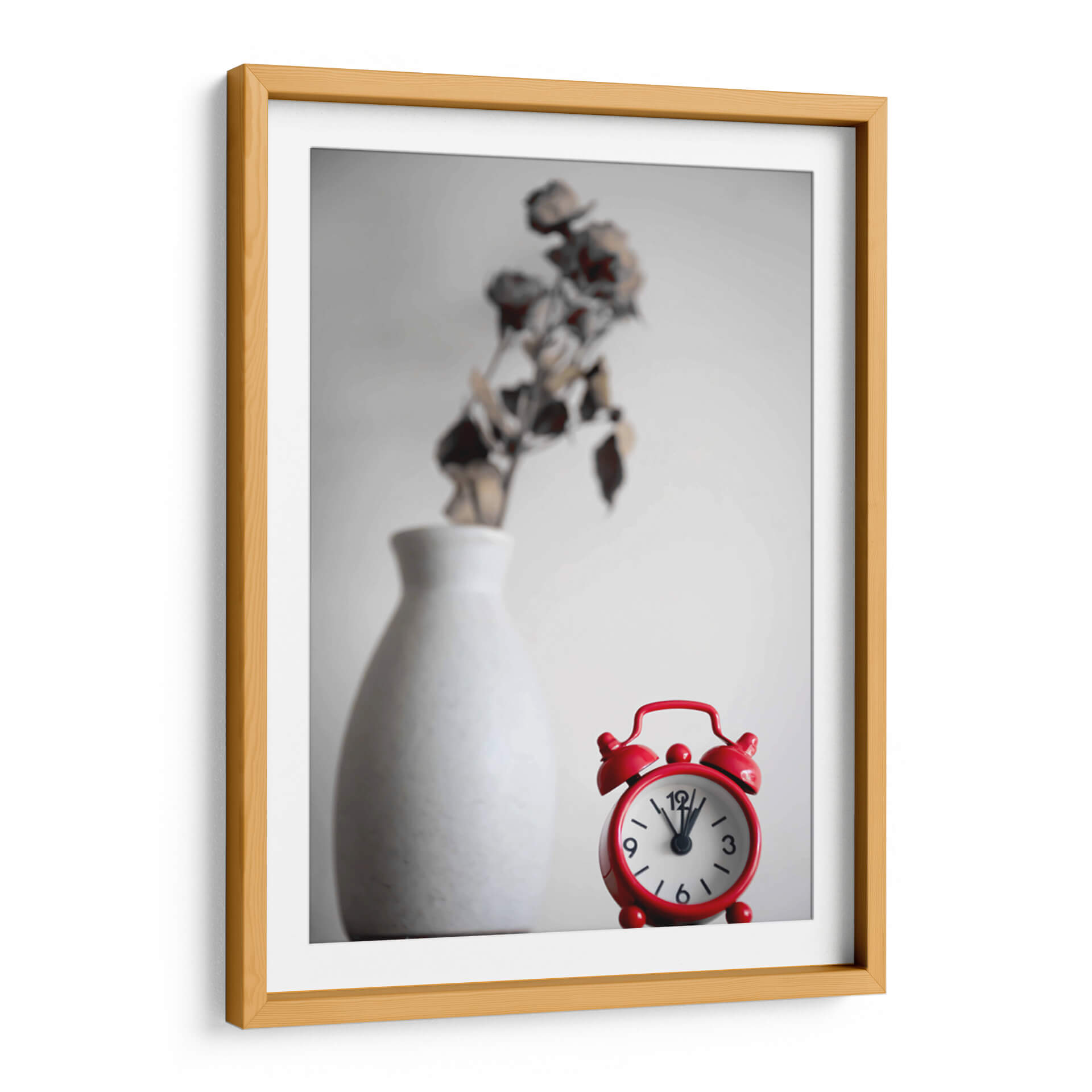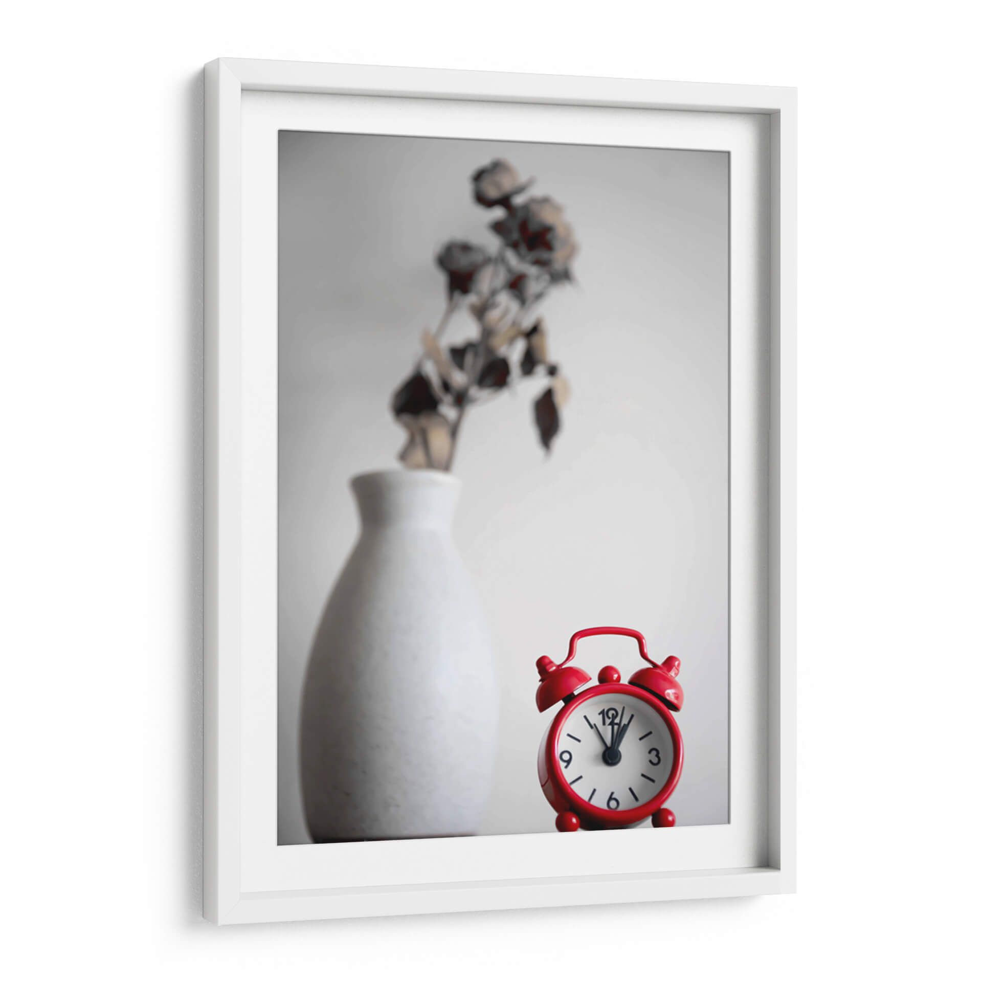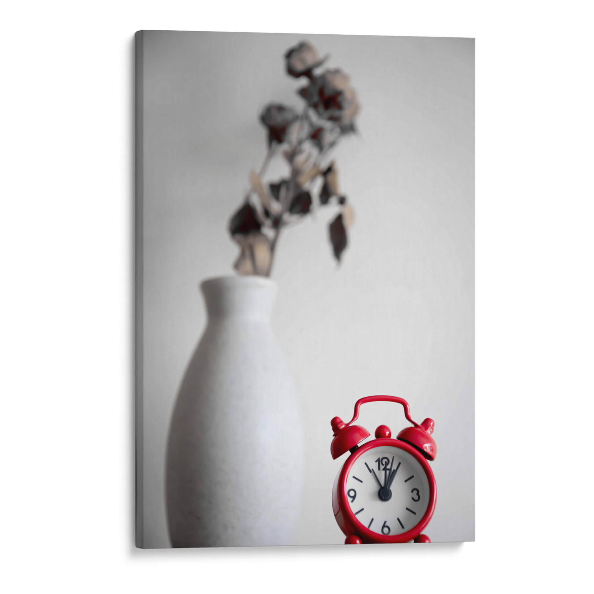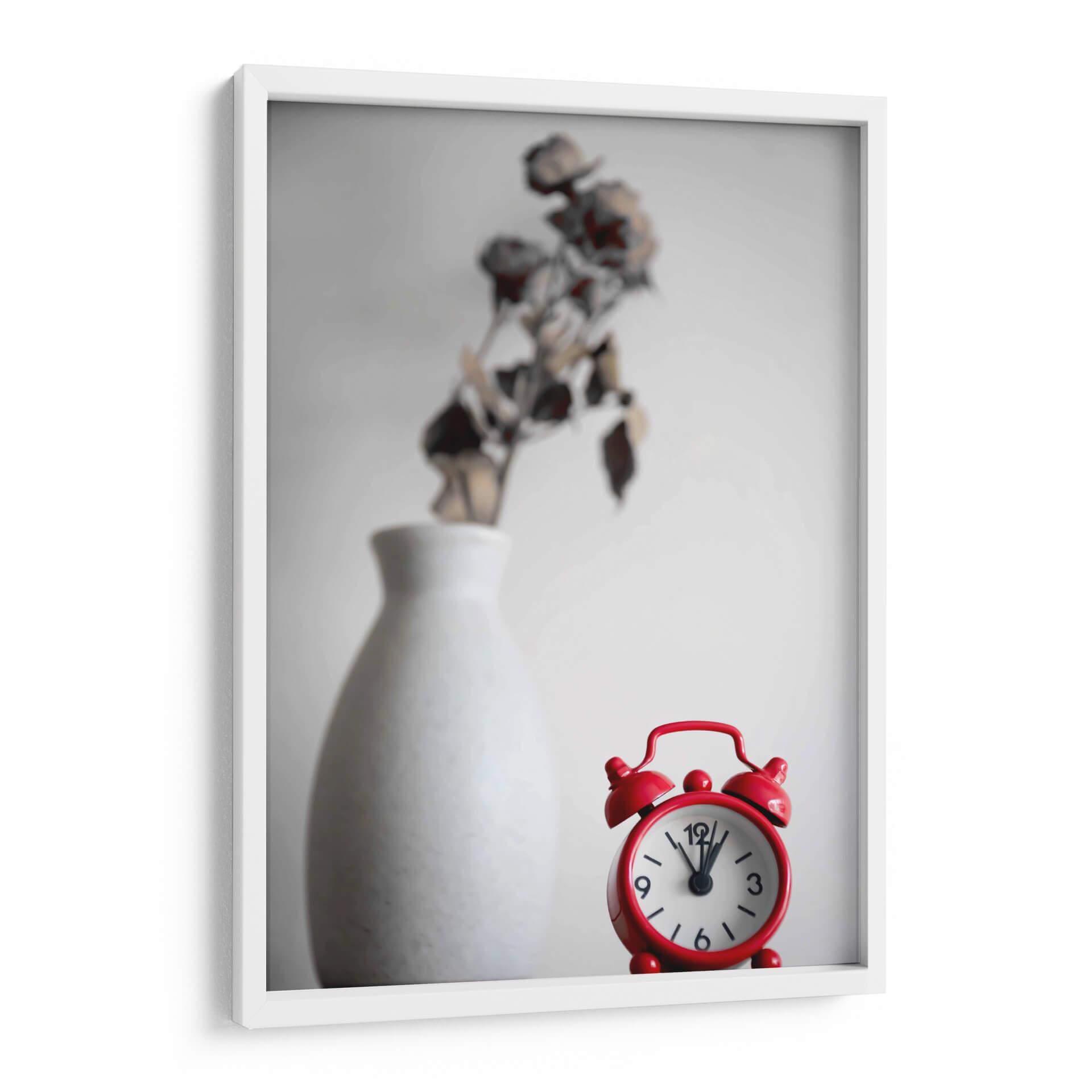 Este cautivador cuadro decorativo, titulado "Naturaleza muerta" por Claudia Luna, invita a la reflexión sobre el paso del tiempo y la belleza efímera. La obra presenta un jarrón blanco de formas suaves y minimalistas que alberga un delicado arreglo de flores secas, cuyas tonalidades ocres y marrones contrastan sutilmente con el fondo neutro. A la derecha, un vibrante despertador rojo añade un toque de color y un elemento simbólico, evocando la fugacidad de los momentos. La composición equilibrada y la paleta de colores predominantemente suave, con el acento rojo del reloj, crean una atmósfera de calma melancólica y serenidad contemplativa. Es una pieza ideal para espacios que buscan un punto de interés sutil pero significativo, como un estudio, una sala de estar acogedora o un dormitorio, aportando un aire de sofisticación artística y una invitación a pausar y apreciar la estética del presente. El estilo de la obra, con su enfoque en la textura y la luz, le otorga una calidad atemporal que complementará diversos estilos decorativos, desde el moderno hasta el más clásico. Permite que esta naturaleza muerta moderna de Claudia Luna inspire contemplación y añada un toque de arte distintivo a tu hogar u oficina, recordándonos la belleza en la transitoriedad.