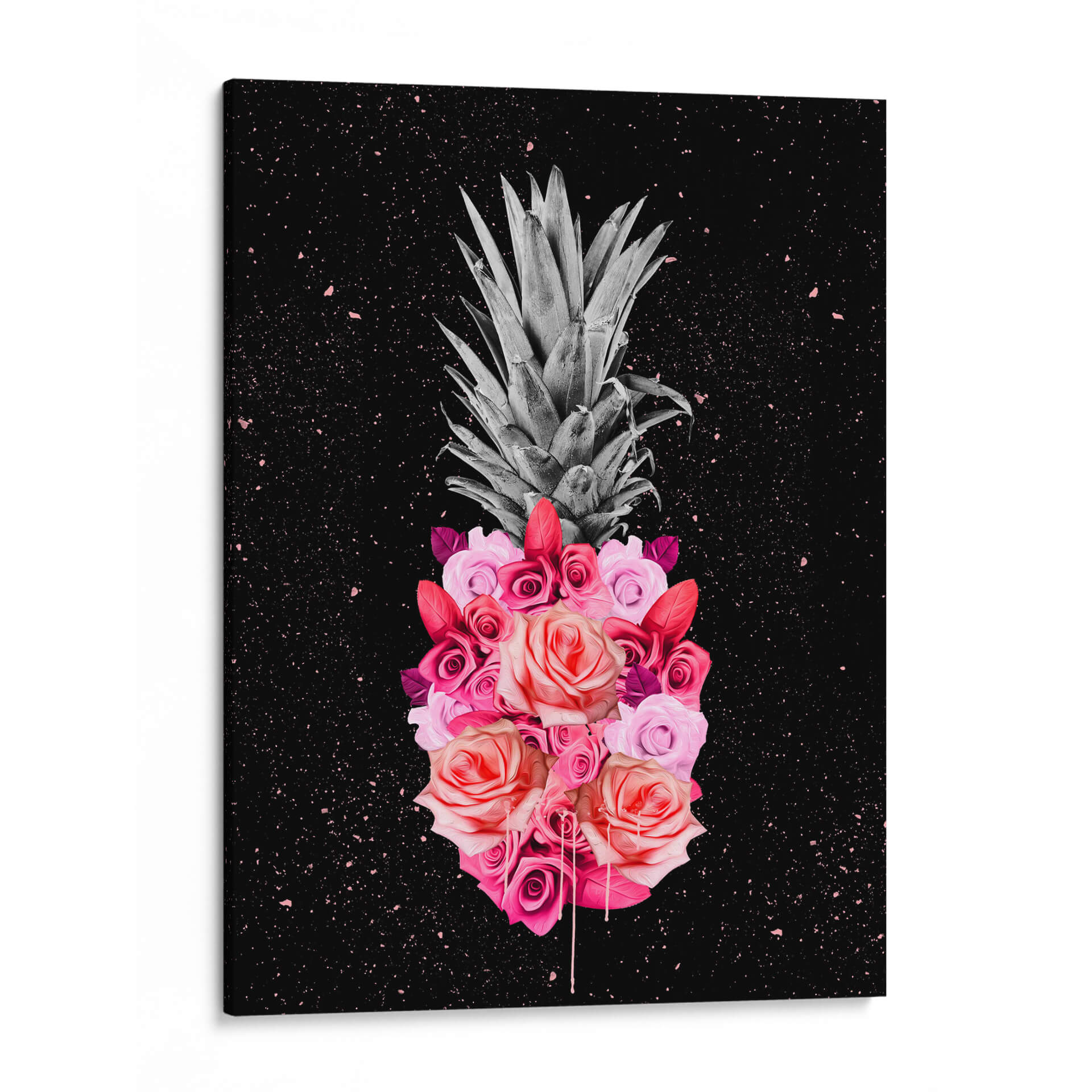 Transforma tu espacio con la cautivadora obra de arte "Piña Rosas en Negro" del artista Lofty&Me. Esta pieza única fusiona la icónica forma de una piña, representada en un sofisticado blanco y negro, con un exuberante arreglo de rosas en vibrantes tonos rosados. El contraste entre la textura detallada de la piña y la suavidad aterciopelada de las flores crea una composición visualmente impactante. El fondo negro profundo, salpicado con delicadas motas rosadas, añade un toque de dramatismo y modernidad, haciendo que los colores de las rosas resalten aún más. Este cuadro decorativo es una declaración de estilo audaz y a la vez elegante, perfecto para añadir un toque de originalidad y color a cualquier habitación. Ideal para salas de estar modernas, comedores con personalidad o incluso para un tocador o dormitorio que busque un acento chic. La técnica mixta empleada, combinando elementos realistas con un toque surrealista y abstracto, confiere a la obra una profundidad intrigante. Es una pieza que invita a la reflexión y añade un aire de sofisticación contemporánea, convirtiéndose en un punto focal que cautivará las miradas de tus invitados y reflejará tu buen gusto. Añade esta obra maestra a tu colección y experimenta la fusión perfecta entre naturaleza, arte pop y elegancia floral, creando un ambiente lleno de vida y distinción.