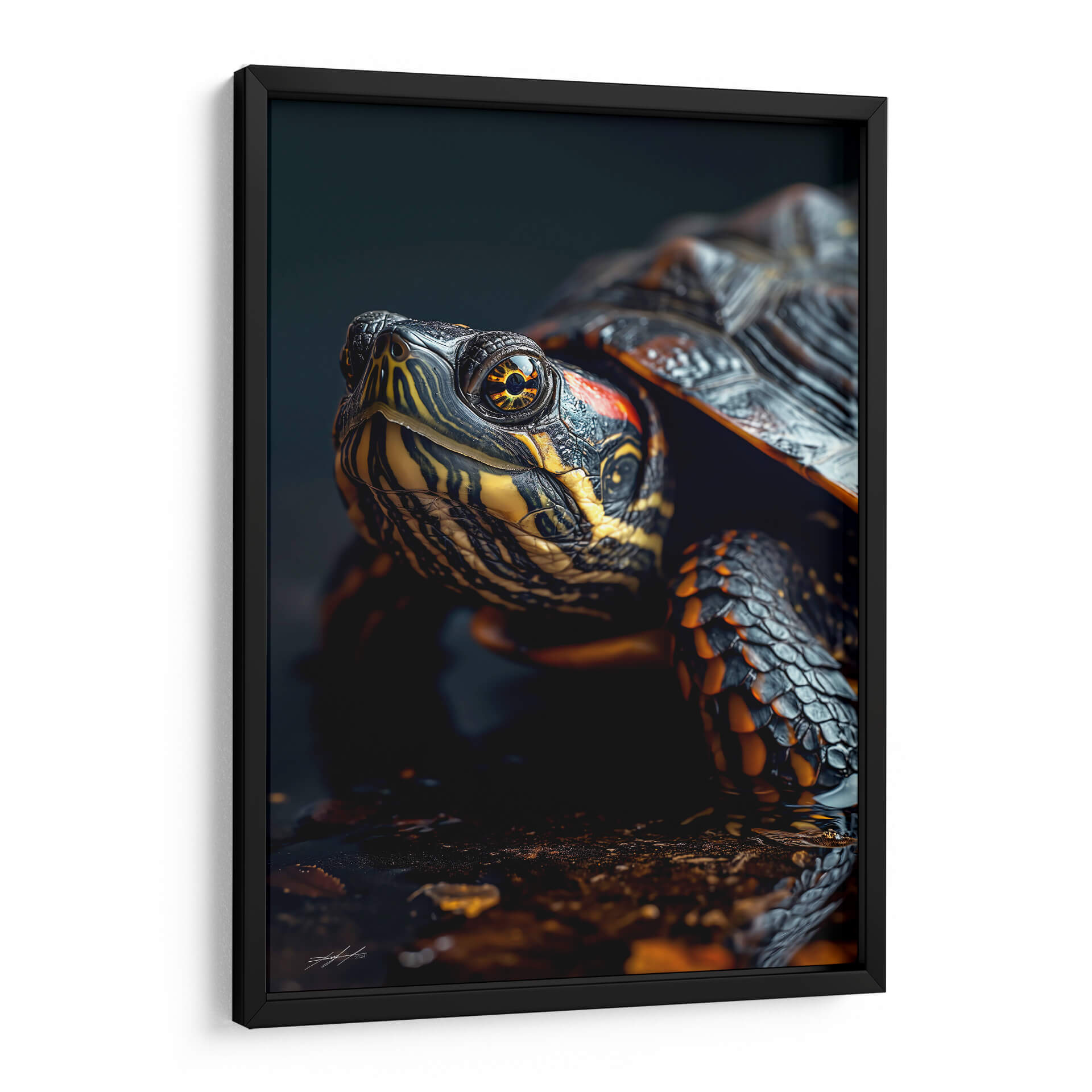 Sumérgete en la fascinante 'Belleza Animal' con esta obra maestra que captura la esencia de una tortuga en un retrato íntimo y detallado. La pieza destaca por su impresionante realismo y la riqueza de su paleta de colores, donde los tonos tierra, negros profundos y vibrantes toques de amarillo y naranja se entrelazan para crear una atmósfera de calma y profundidad. La composición, centrada en el primer plano del rostro de la tortuga, invita a admirar la textura intrincada de su piel y la sabiduría en sus ojos penetrantes. Este cuadro decorativo es perfecto para añadir un toque de naturaleza y serenidad a cualquier espacio, ya sea un hogar acogedor, una oficina inspiradora o un rincón de meditación. Su estilo realista con un toque artístico contemporáneo lo convierte en una pieza versátil que puede complementar una decoración moderna o aportar un elemento orgánico a un entorno más clásico. Ideal para amantes de la vida silvestre y aquellos que buscan una conexión visual con la tranquilidad y la resistencia de la naturaleza. Añade esta obra de arte a tu colección y deja que su belleza atemporal transforme tu ambiente, creando un punto focal que evoca respeto por el mundo natural y la majestuosidad de sus criaturas.