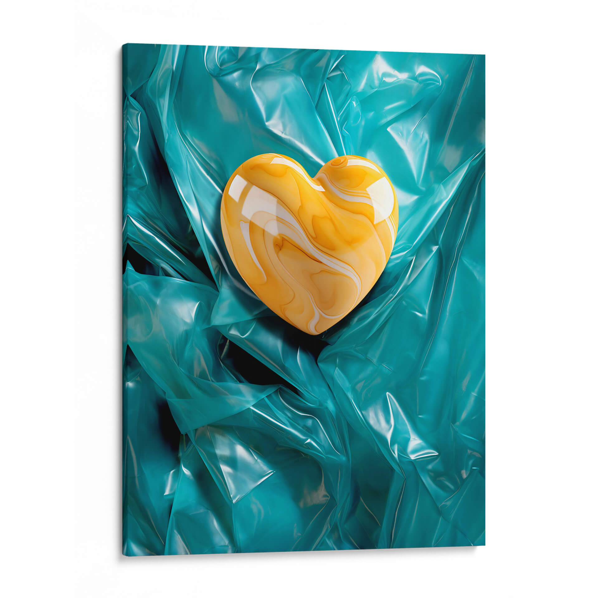 Corazón de Mármol Amarillo Sobre Plástico Verde - DeLaVegaGaming
