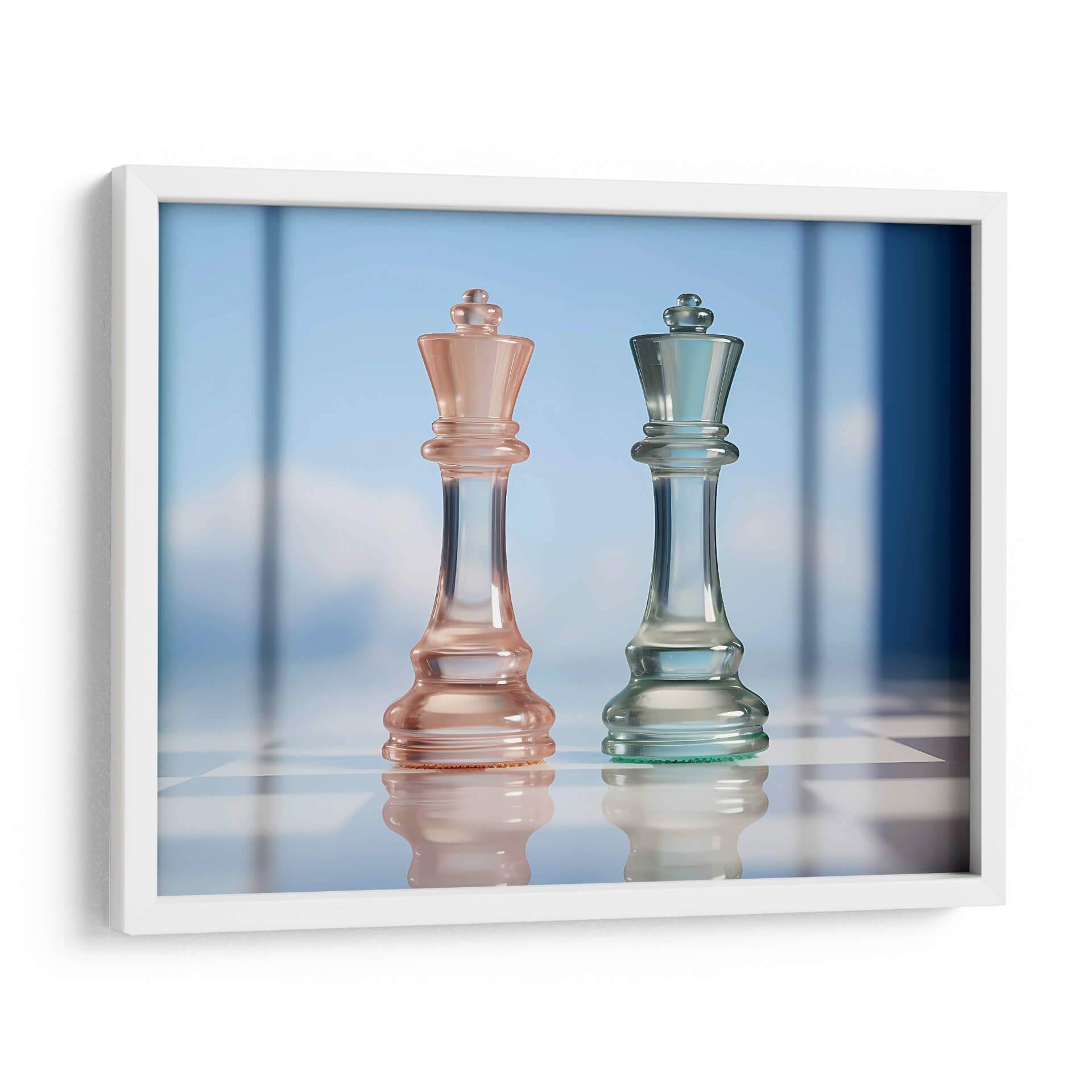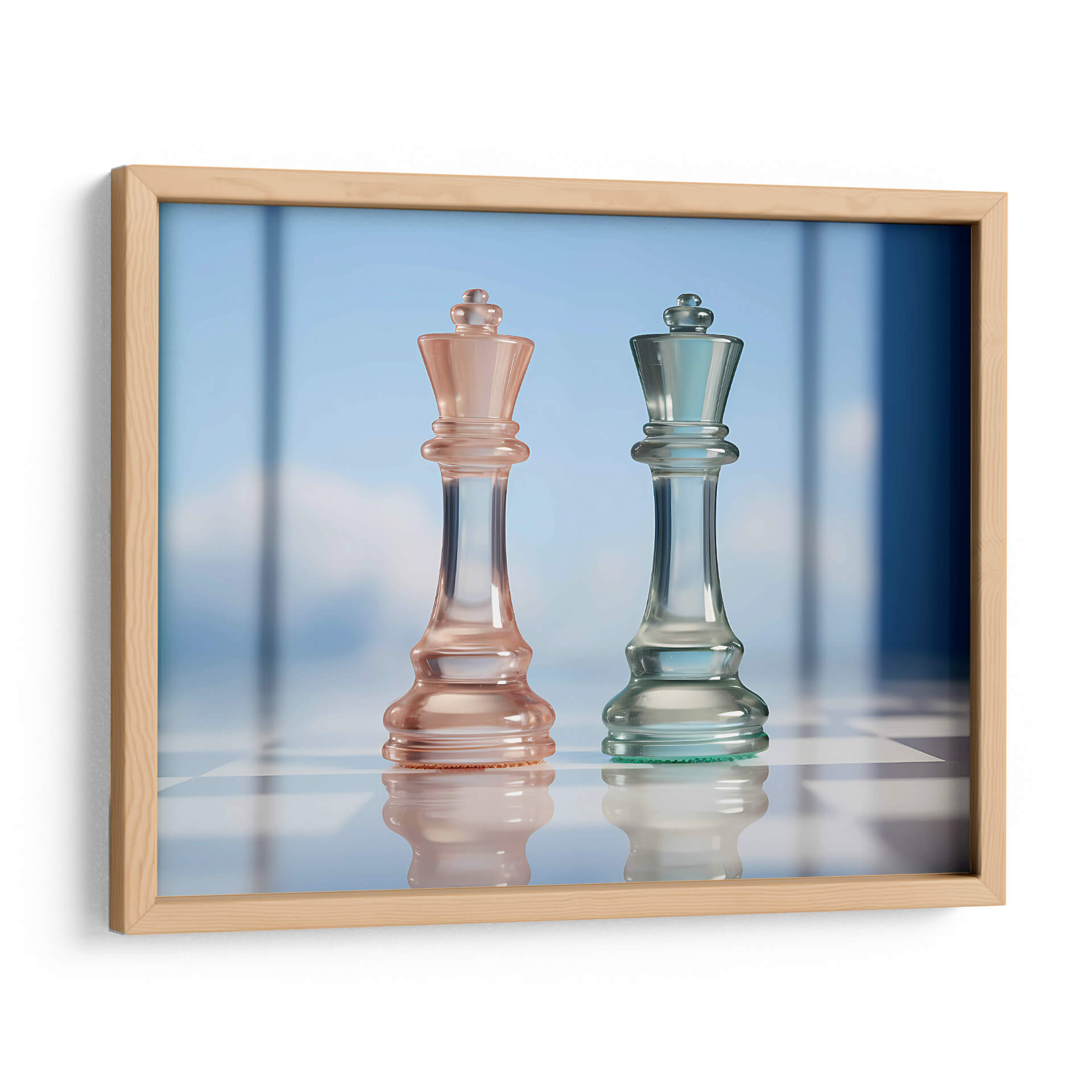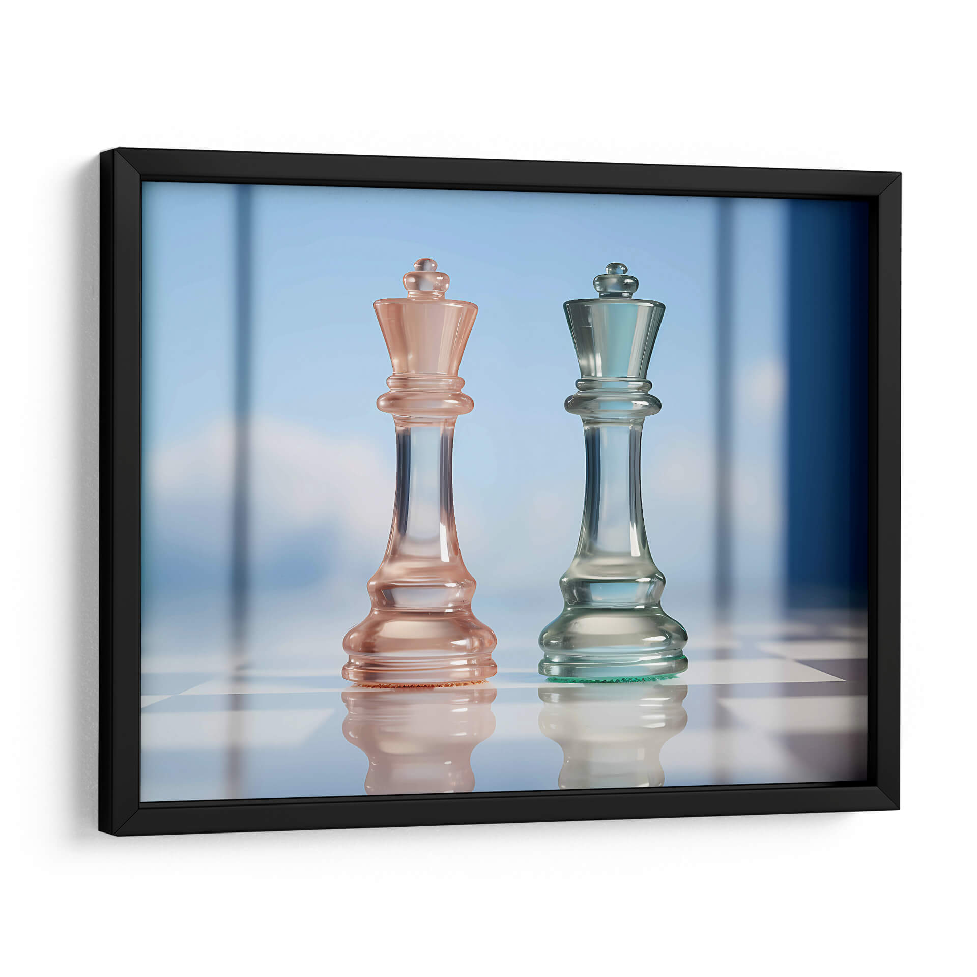 Sumérgete en la estrategia y la elegancia con 'El Juego de la Vida - 2', una obra de arte digital que captura la esencia del ajedrez con un giro contemporáneo. Dos figuras de ajedrez translúcidas, una en tonos rosados suaves y otra en un sereno azul verdoso, se alzan sobre un tablero que se pierde en el horizonte. La composición minimalista, con un fondo de cielo azul etéreo y reflejos perfectos sobre una superficie pulida, crea una atmósfera de calma y contemplación. Esta pieza evoca la dualidad, la estrategia y la belleza abstracta de un juego milenario. "El Juego de la Vida - 2" es ideal para añadir un toque de sofisticación intelectual a tu sala de estar, oficina o cualquier espacio que busque inspiración y un punto focal intrigante. Su paleta de colores sutil y su diseño limpio la convierten en una adición versátil y moderna a cualquier decoración, invitando a la reflexión sobre el poder, las decisiones y el arte del juego.