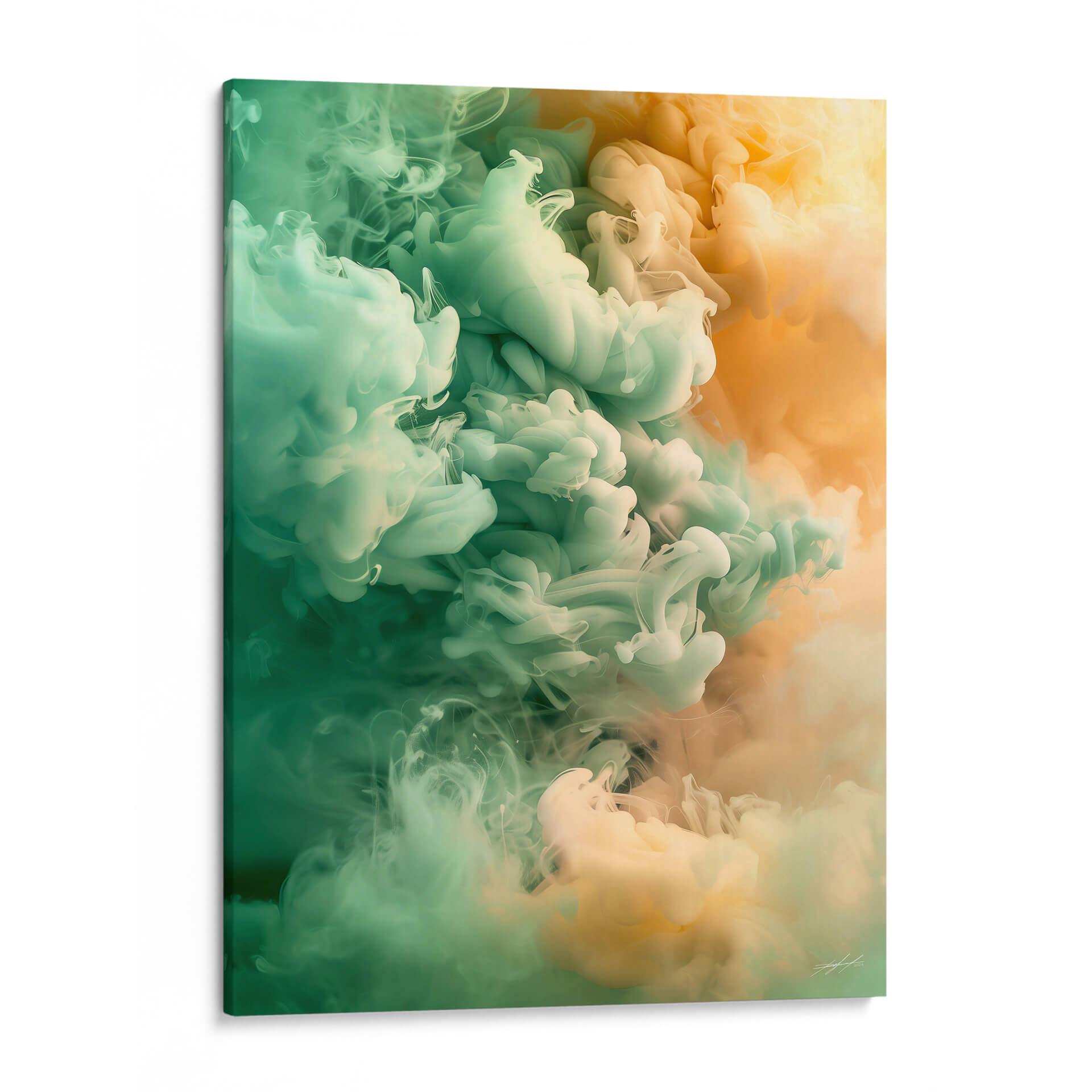 Sumérgete en la cautivadora obra 'Golpe de Humo - 1' de DeLaVegaGaming, una pieza que redefine la abstracción contemporánea y captura la efímera belleza de las formas fluidas. Este cuadro decorativo es una explosión controlada de energía visual, donde densas volutas de humo en tonos verde menta y turquesa se entrelazan y chocan con remolinos de un cálido color ocre y melocotón. La composición dinámico-abstracta, reminiscentes de una pintura de tinta en agua, crea una sensación de movimiento y profundidad, invitando al espectador a perderse en sus detalles y texturas etéreas. La paleta de colores, que transita de frescos tonos verdosos a cálidos y vibrantes naranjas, genera un contraste fascinante que aporta equilibrio y vitalidad a cualquier espacio. Ideal para salas de estar modernas, oficinas o estudios, este cuadro decorativo insuflará vida y un toque de intriga a tu decoración. Su estilo abstracto y su atmósfera envolvente lo convierten en una pieza versátil que complementa desde ambientes minimalistas hasta decoraciones más audaces, añadiendo un punto focal de gran impacto estético y emocional. 'Golpe de Humo - 1' es más que una obra de arte; es una invitación a sentir y a soñar, una ventana a la expresión artística contemporánea que transformará tu pared en una galería personal.