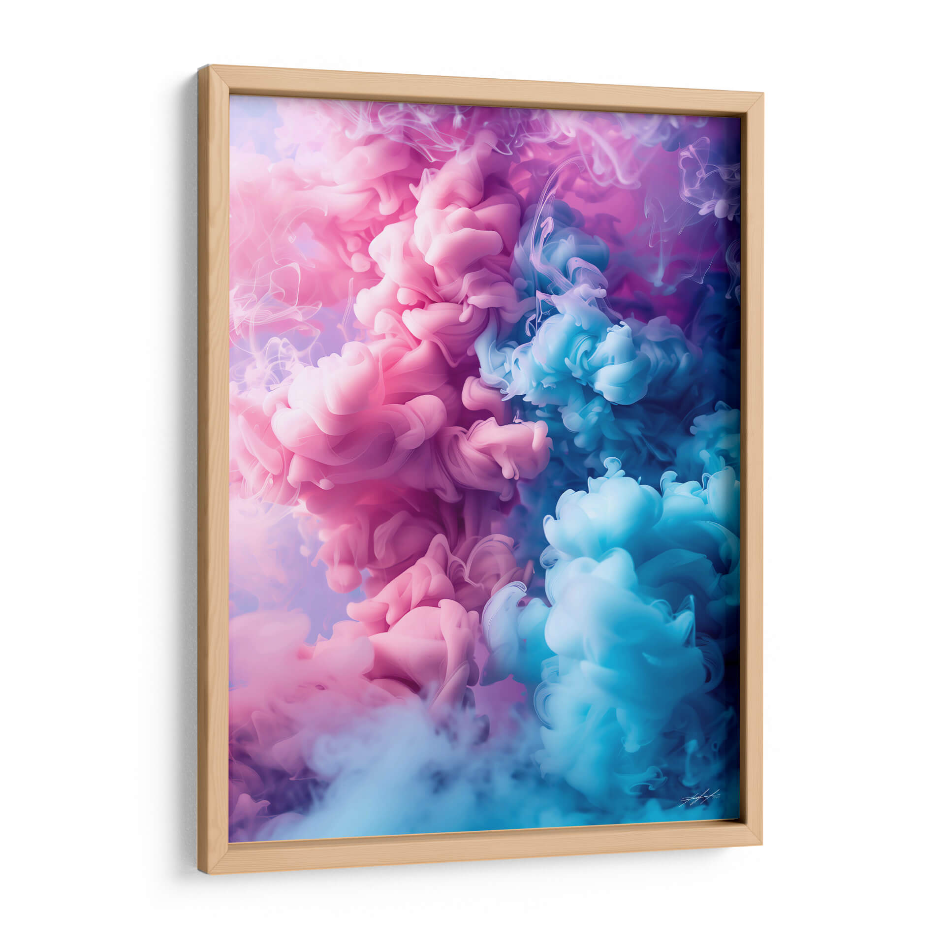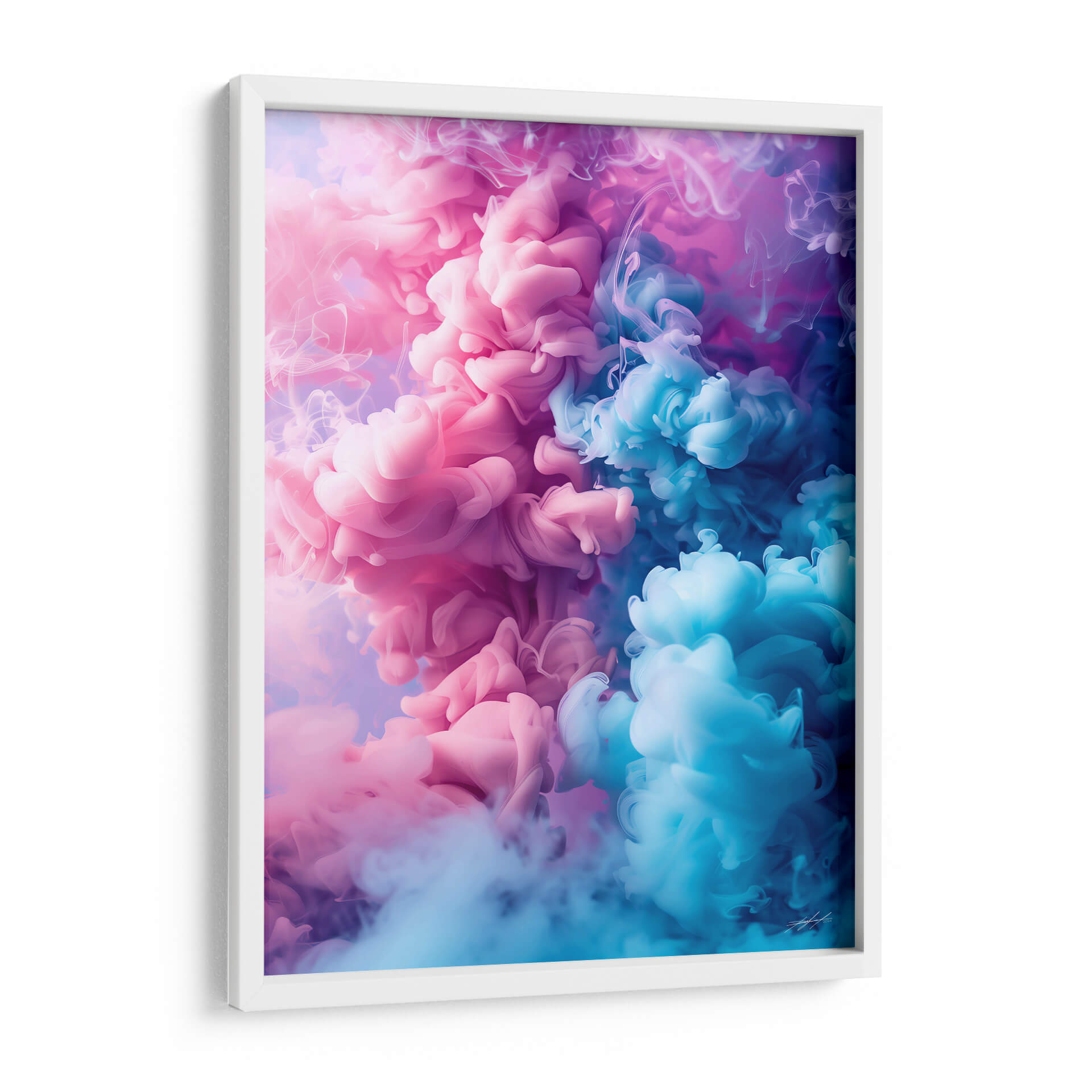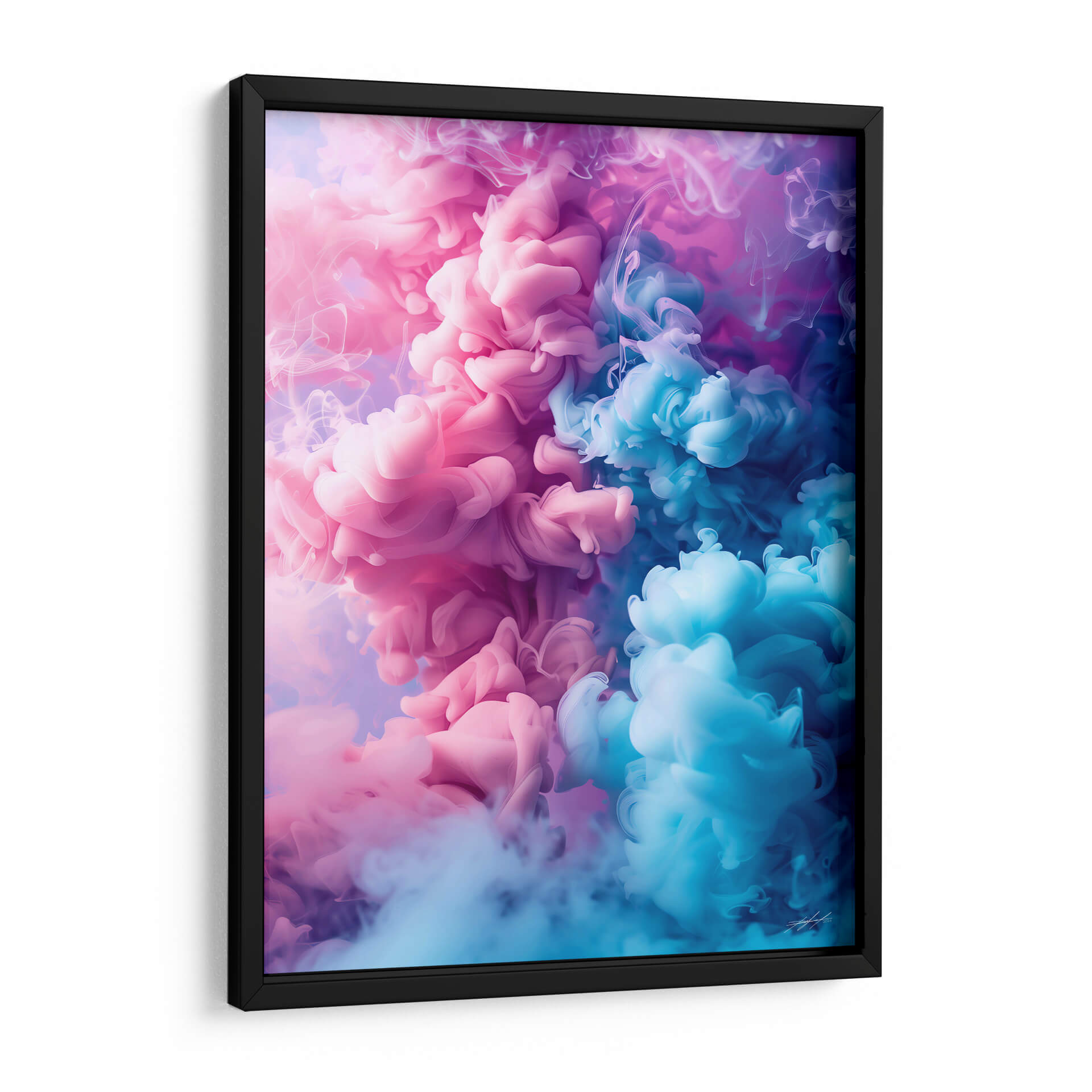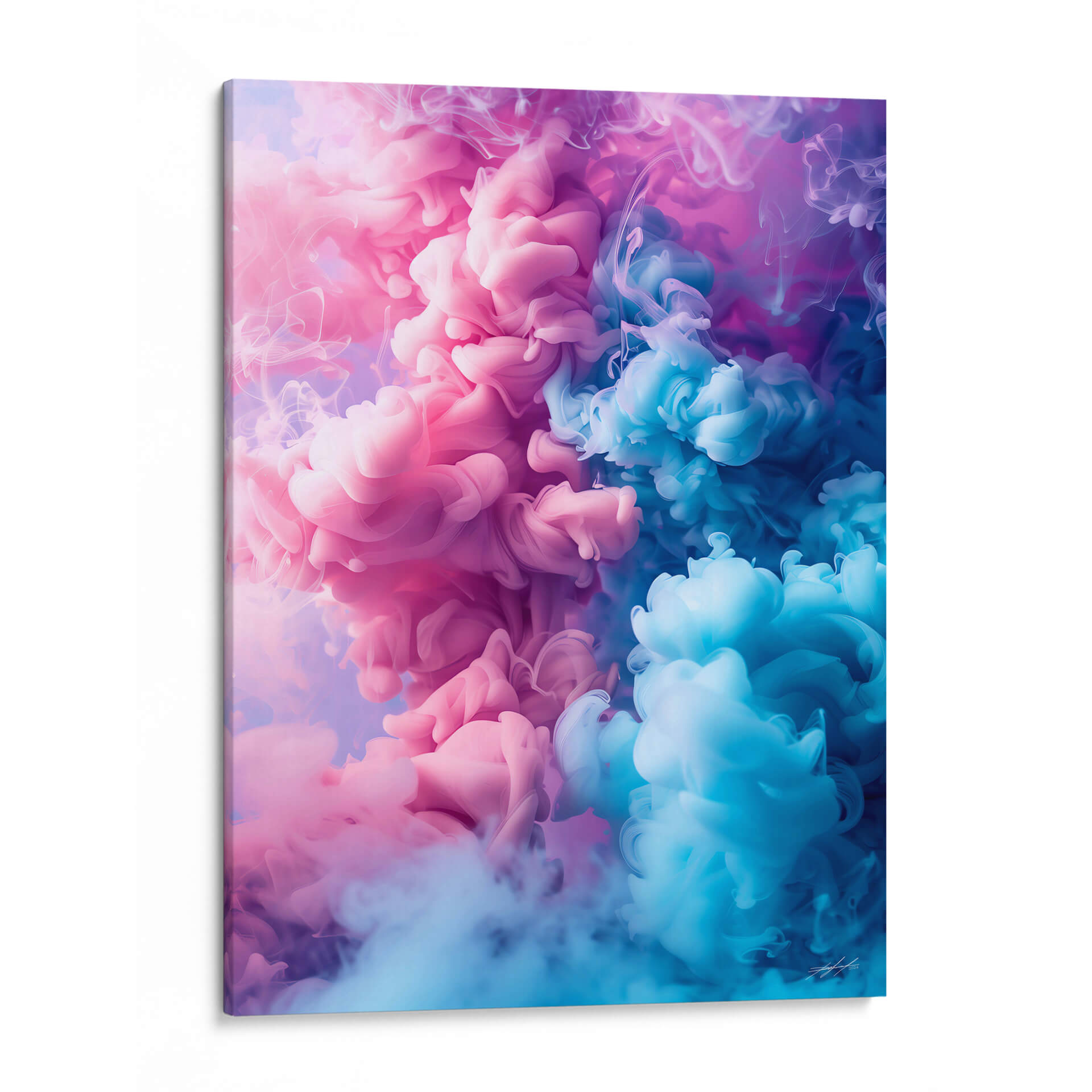 Sumérgete en la hipnótica danza de colores y formas con "Golpe de Humo - 3", una obra de arte contemporáneo que captura la esencia efímera y vibrante de las nubes de tinta suspendidas en el agua. Este cuadro decorativo abstracto presenta una explosión de tonos rosados y azules intensos que se entrelazan y disuelven en un remolino dinámico, evocando una sensación de movimiento y energía. La composición, dominada por el contraste entre las masas densas y las delicadas volutas de humo, crea una profundidad visual cautivadora. Los suaves degradados y las texturas fluidas invitan a la contemplación, convirtiendo a "Golpe de Humo - 3" en un punto focal ideal para cualquier espacio moderno, desde salas de estar y oficinas hasta dormitorios que buscan un toque de sofisticación y misterio. Su estilo abstracto y contemporáneo se adapta perfectamente a decoraciones minimalistas o maximalistas, aportando un toque de color y carácter único. Transforma tu pared en una ventana a la imaginación con este espectacular cuadro decorativo, una pieza que inspira y fascina por igual, añadiendo un elemento artístico de gran impacto visual y emocional a tu hogar u oficina.