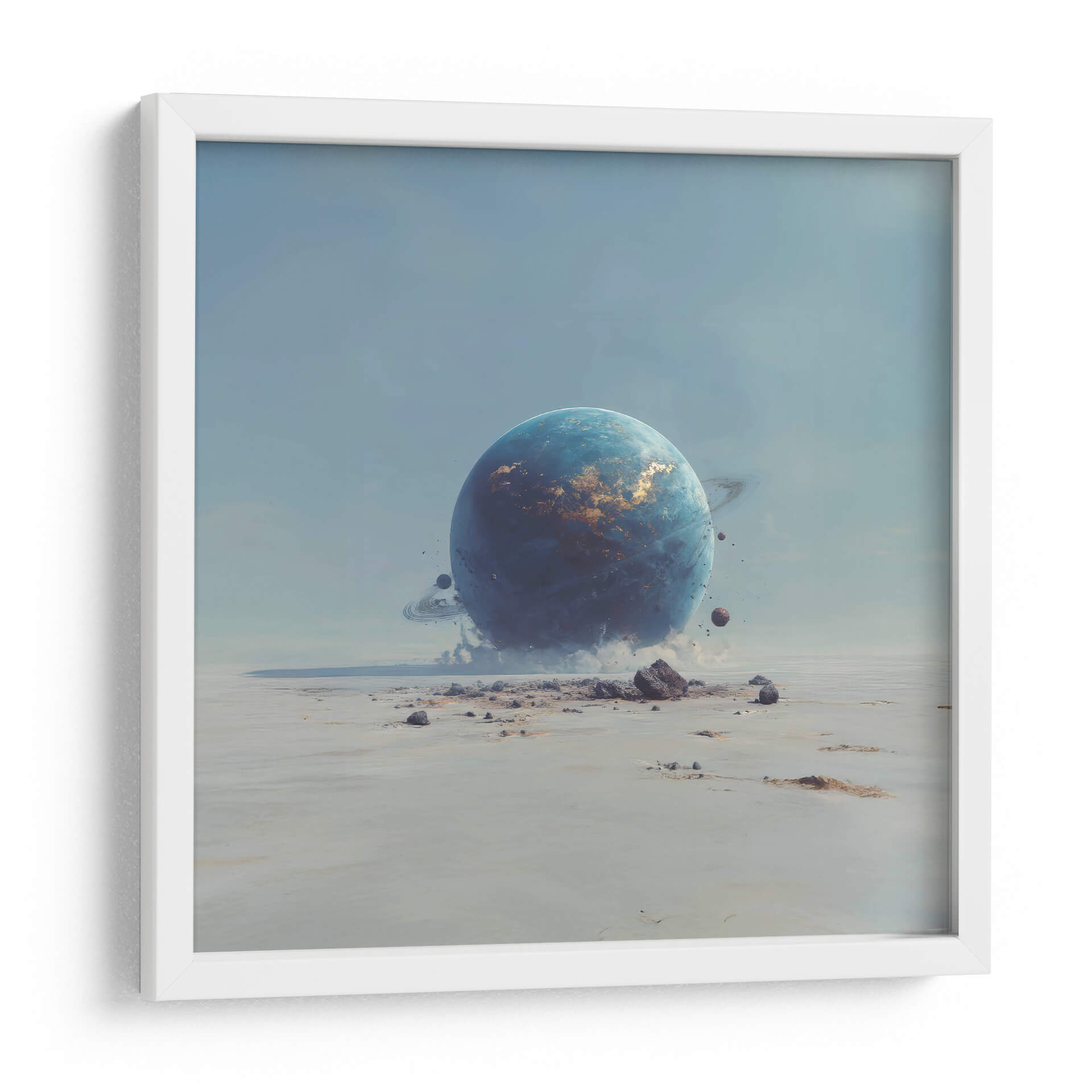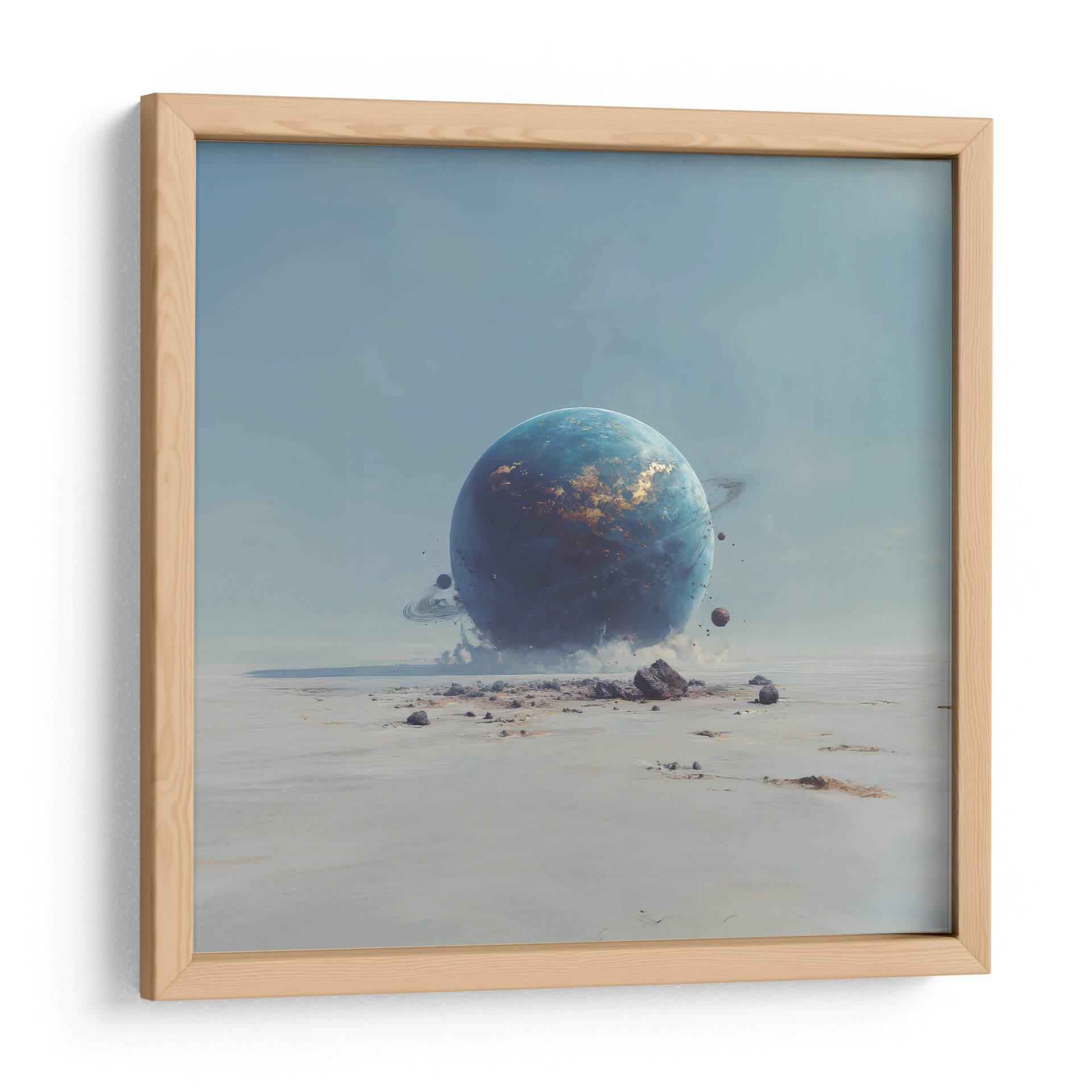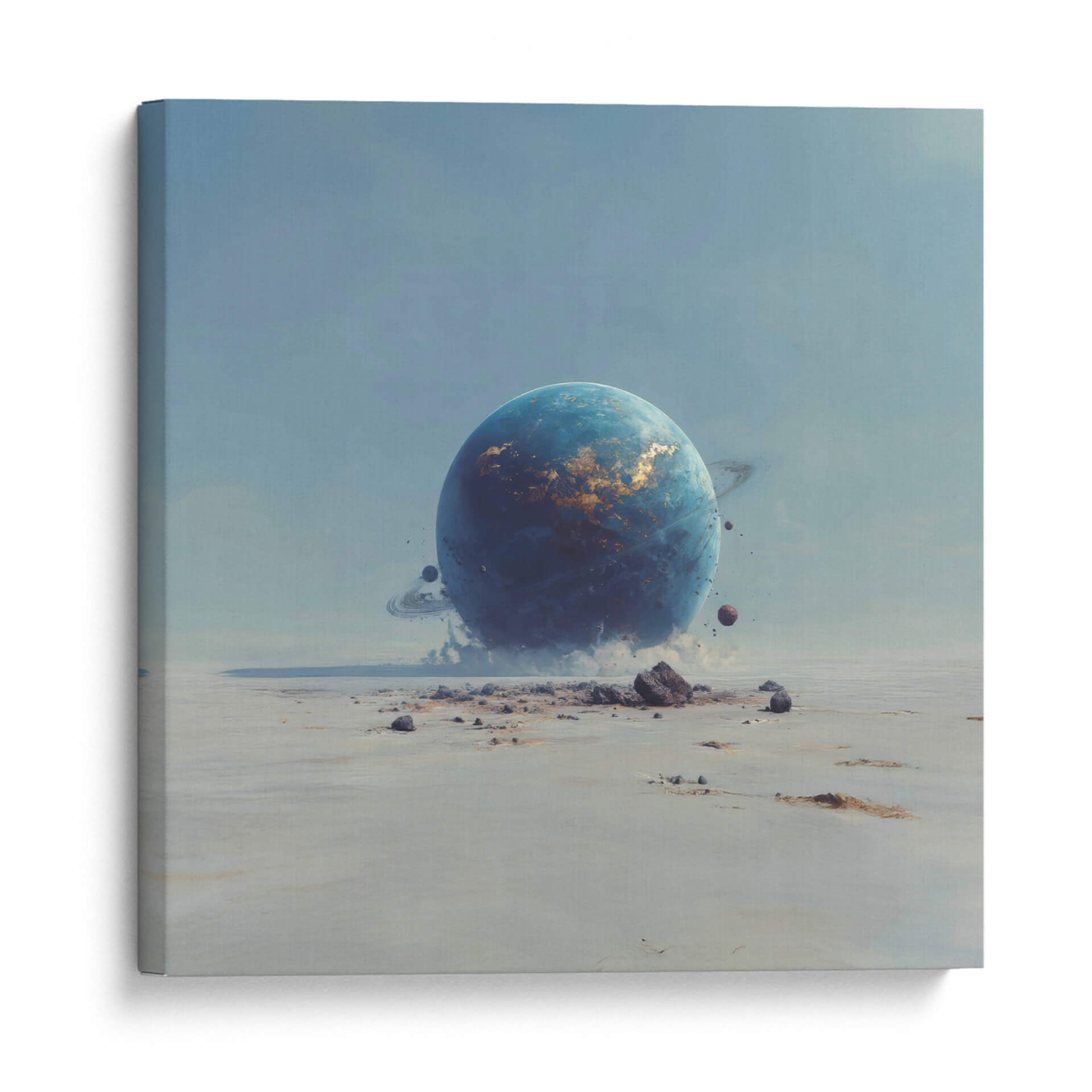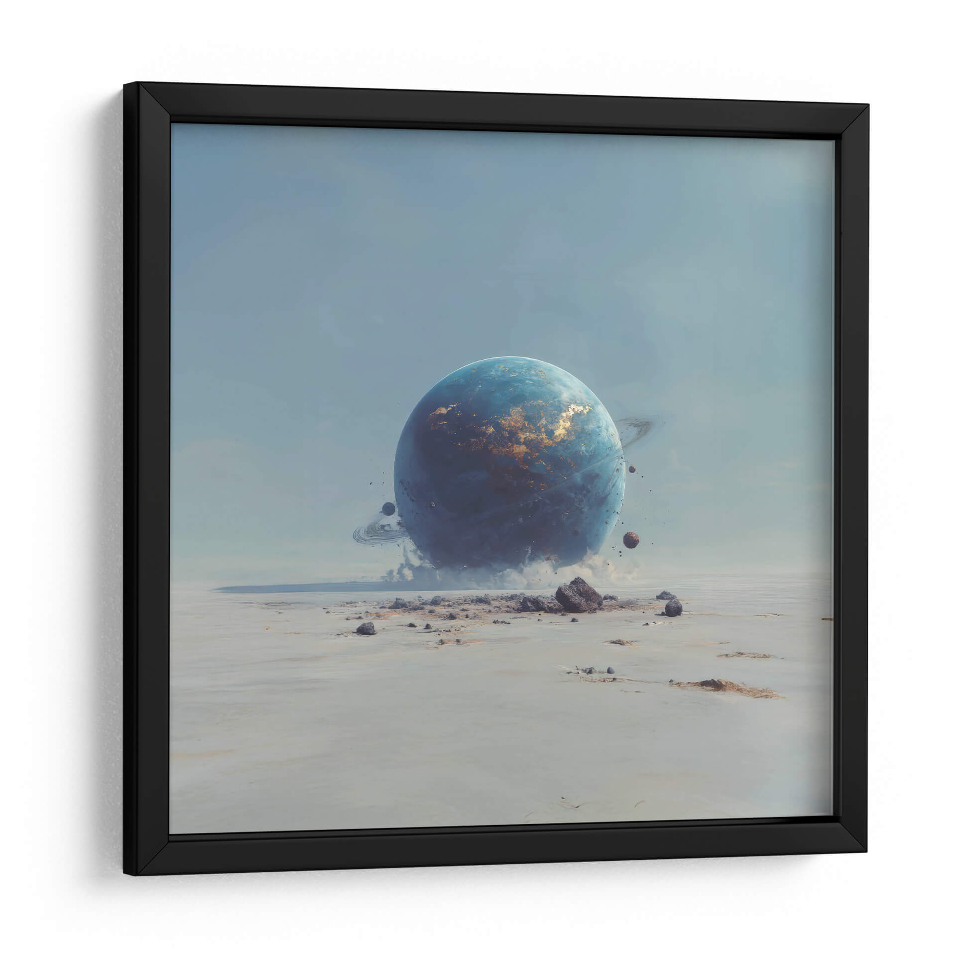 Sumérgete en la vastedad del cosmos con "Lejos de Casa - 011", una obra de arte digital que evoca una profunda sensación de exploración y misterio. Este cuadro decorativo presenta un planeta azul intenso, adornado con texturas doradas que sugieren riqueza y descubrimiento, flotando en un cielo etéreo de tonos celestes y grises suaves. La composición, con un paisaje árido y rocoso en primer plano y el planeta como protagonista central, invita a la contemplación y la introspección. El estilo artístico, reminiscente de la ciencia ficción y el arte conceptual, crea una atmósfera de ensueño y aventura. Las sutiles nubes y las formaciones rocosas dispersas añaden profundidad y realismo a esta escena celestial. "Lejos de Casa - 011" es ideal para aquellos que buscan añadir un toque de sofisticación y un aire de intriga a sus espacios, ya sea en una sala de estar moderna, un estudio o una oficina, inspirando conversaciones y despertando la imaginación sobre lo desconocido. Este cuadro decorativo contemporáneo es perfecto para amantes del espacio, la astronomía y el arte que desafía los límites de la realidad.