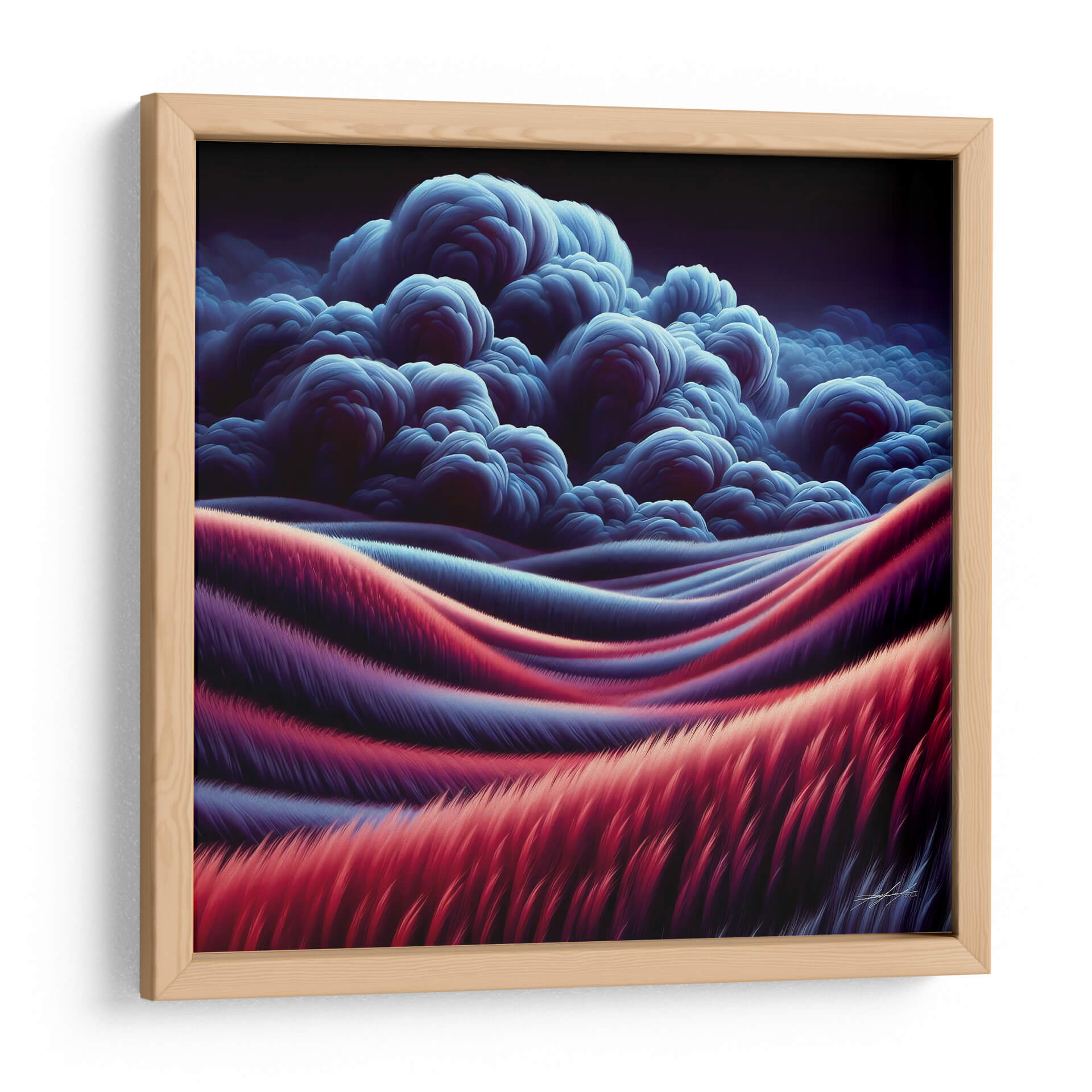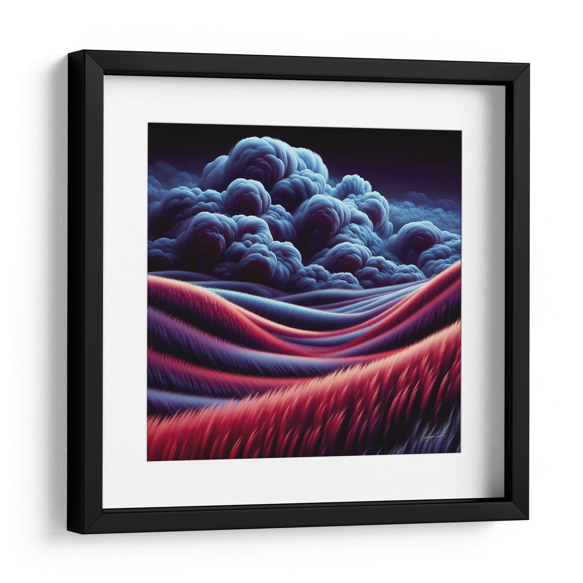 Sumérgete en la enigmática belleza de "Los Campos Surreales - 21", una obra maestra que desafía la percepción y transporta al espectador a un paisaje onírico. Este cuadro decorativo se caracteriza por su audaz paleta de colores, donde vibrantes tonos rojizos y púrpuras se entrelazan con profundos azules y negros, creando un contraste hipnótico. La composición evoca un sentido de movimiento dinámico a través de ondulantes formas que recuerdan a campos de hierba o dunas bajo un cielo cargado de nubes surrealistas y voluminosas. La atmósfera que emana es de misterio y asombro, invitando a la contemplación y al ensueño. Es una pieza de arte contemporáneo ideal para añadir un toque de originalidad y profundidad a cualquier sala de estar moderna, un estudio o incluso un dormitorio que busque un punto focal distintivo y lleno de carácter. "Los Campos Surreales - 21" no es solo decoración, es una invitación a explorar los límites de la imaginación y a infundir tu espacio con energía creativa y una estética vanguardista.