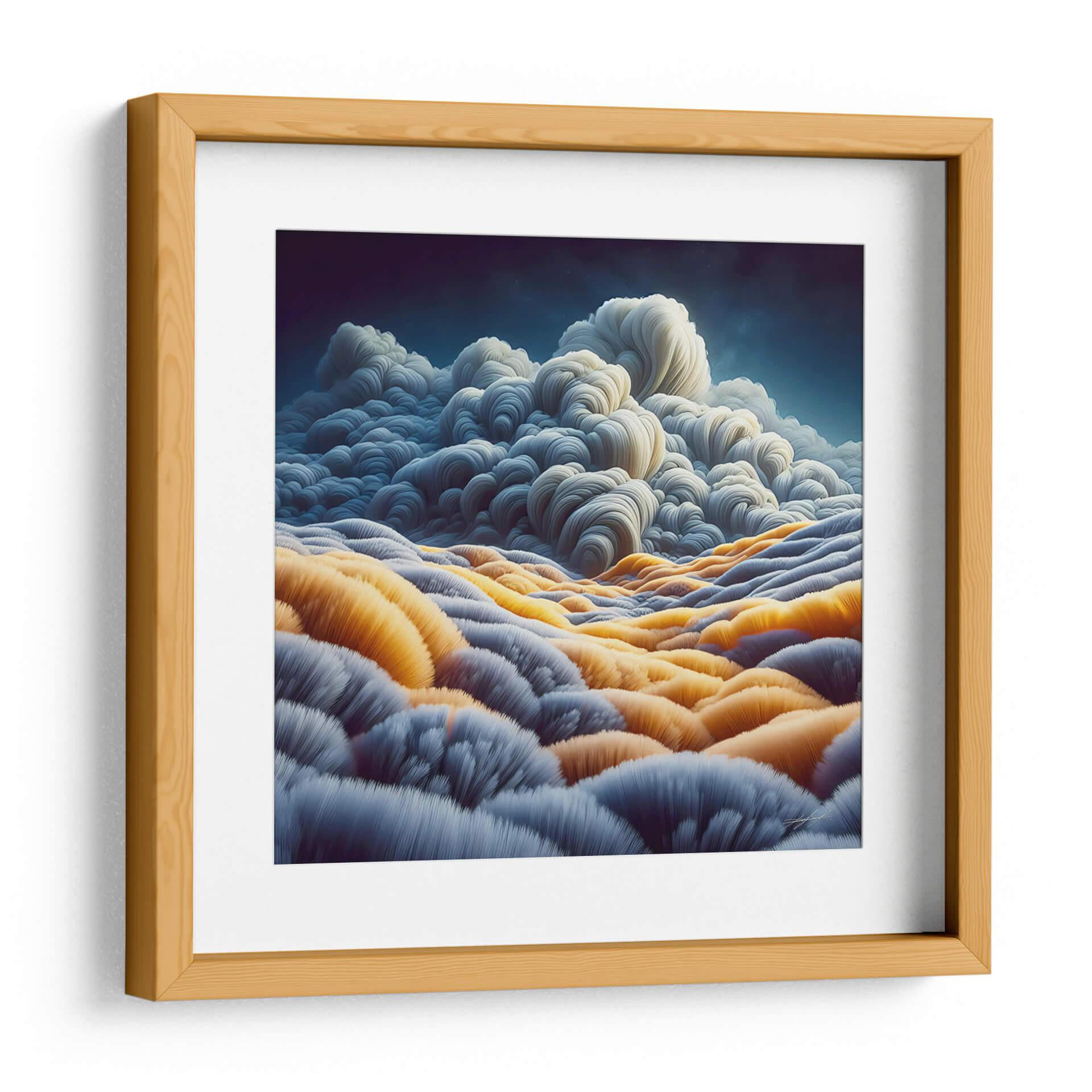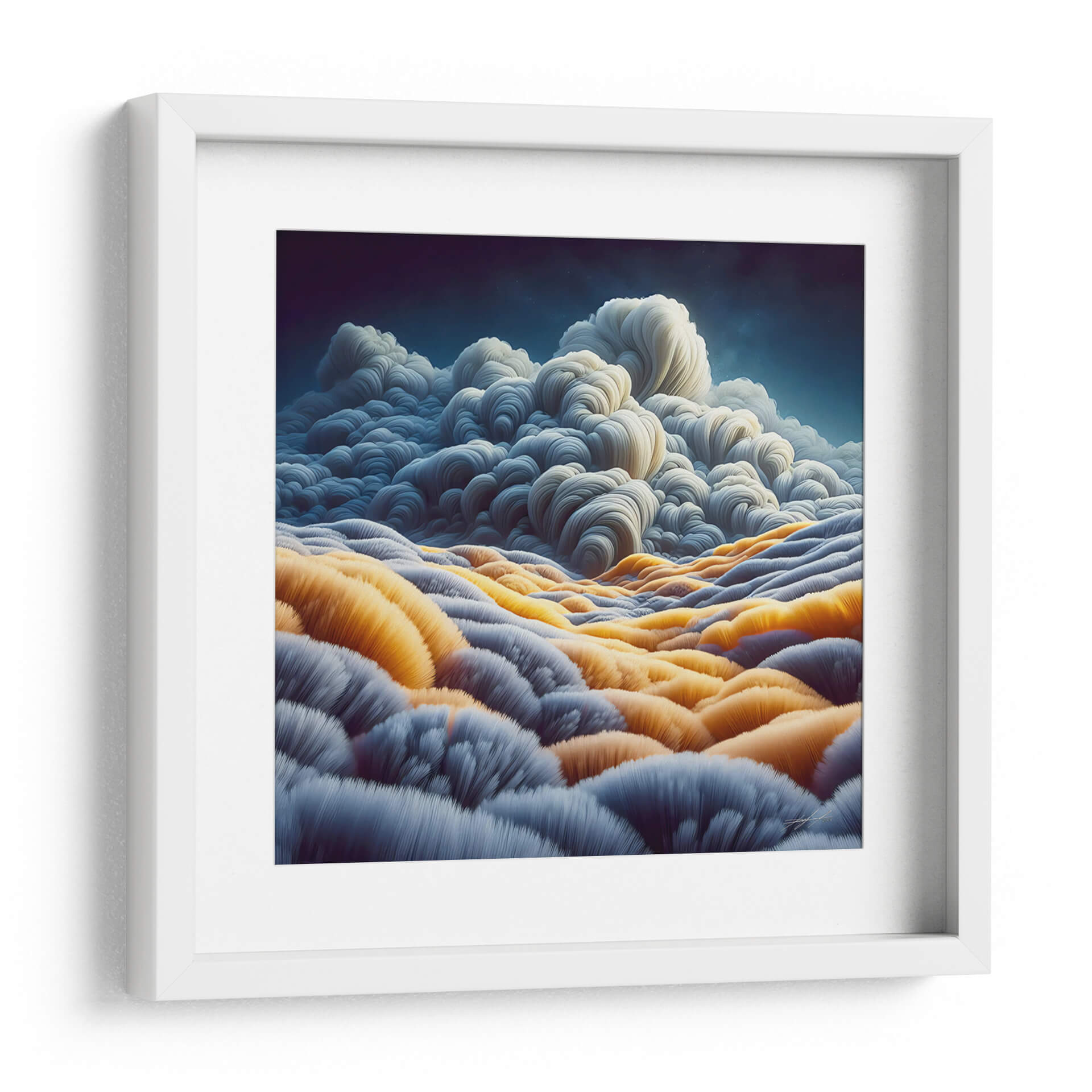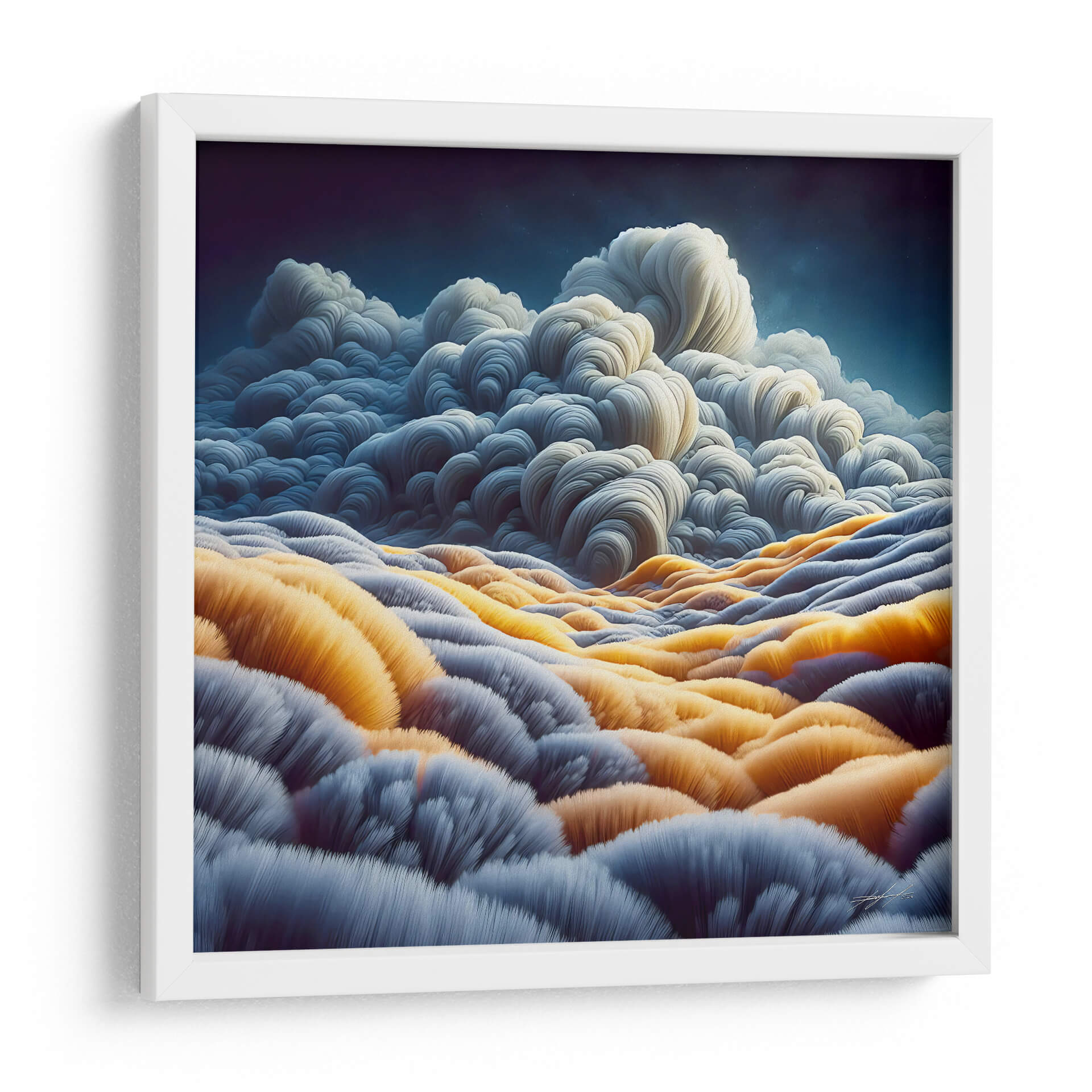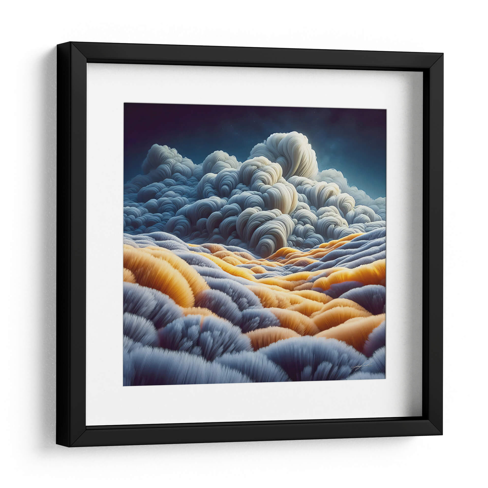 Sumérgete en la hipnótica belleza de "Los Campos Surreales - 3", una obra de arte digital que redefine los paisajes. Esta pieza evoca una sensación de otro mundo con sus formaciones orgánicas y texturizadas que se asemejan a nubes etéreas o a ondulantes dunas de arena. La paleta de colores, una cautivadora mezcla de tonos azul profundos y fríos contrastados con vibrantes amarillos y naranjas cálidos, crea una tensión visual fascinante y una atmósfera envolvente. Las texturas intrincadas y los remolinos detallados invitan a la contemplación, mientras que la composición general genera una sensación de profundidad y misterio. "Los Campos Surreales - 3" es ideal para transformar cualquier espacio en un santuario de imaginación y asombro. Este cuadro decorativo es perfecto para añadir un toque contemporáneo y onírico a salones modernos, estudios creativos o dormitorios que buscan inspiración. Permite que las formas esculturales y la armonía cromática de esta pieza transporten tu mente a un reino de ensueño, convirtiendo tu pared en una ventana a lo extraordinario. Descubre el poder del arte surrealista para despertar emociones y transformar tu entorno.