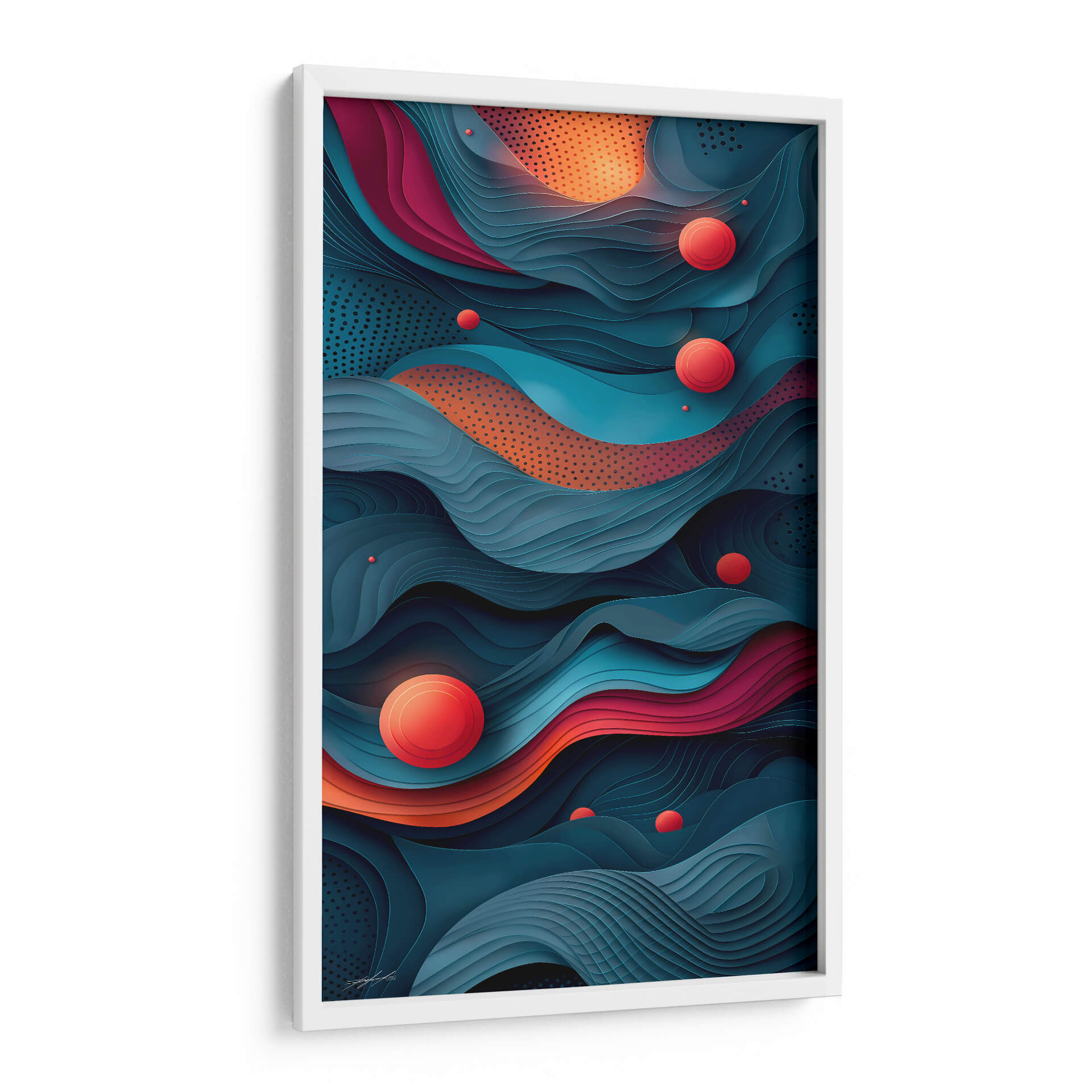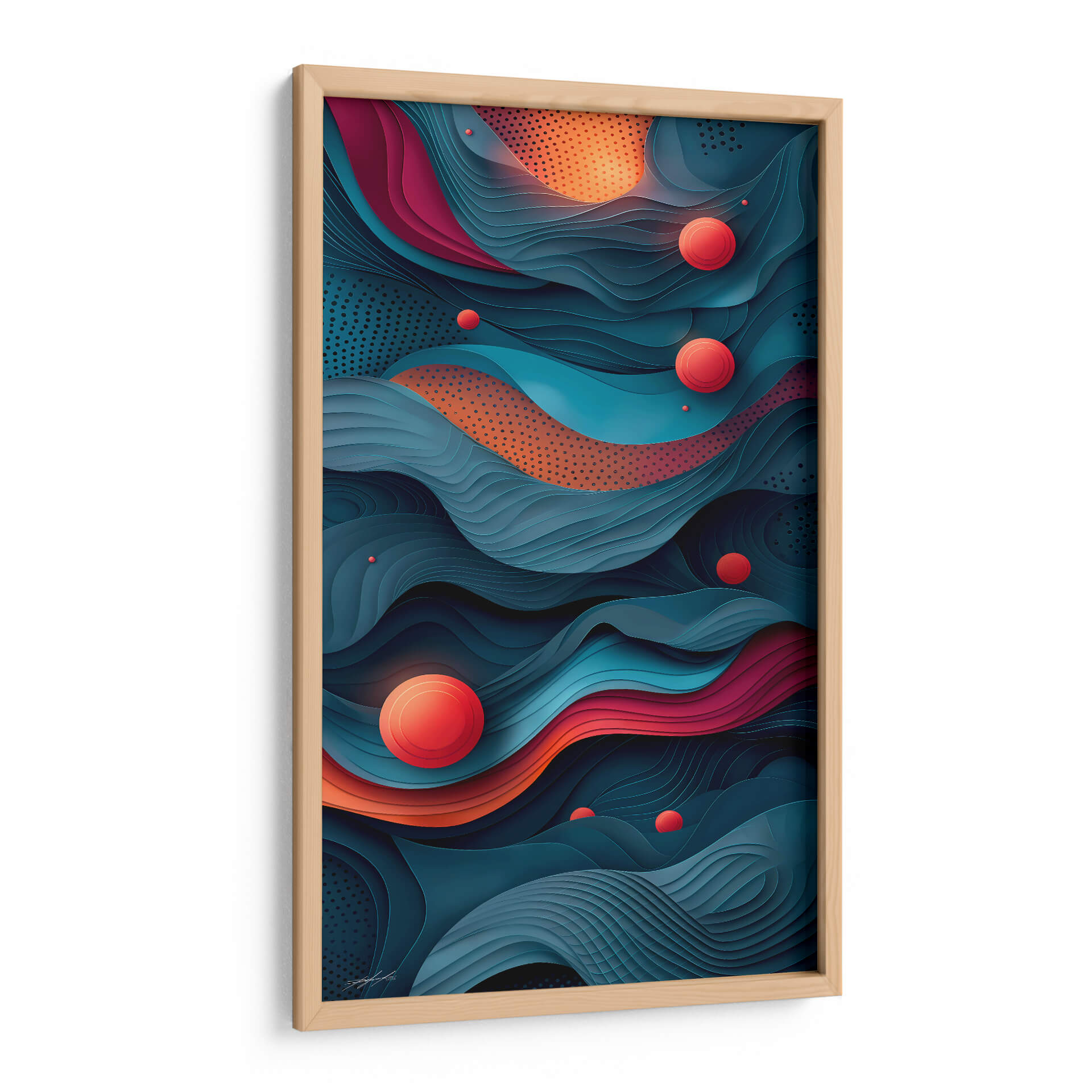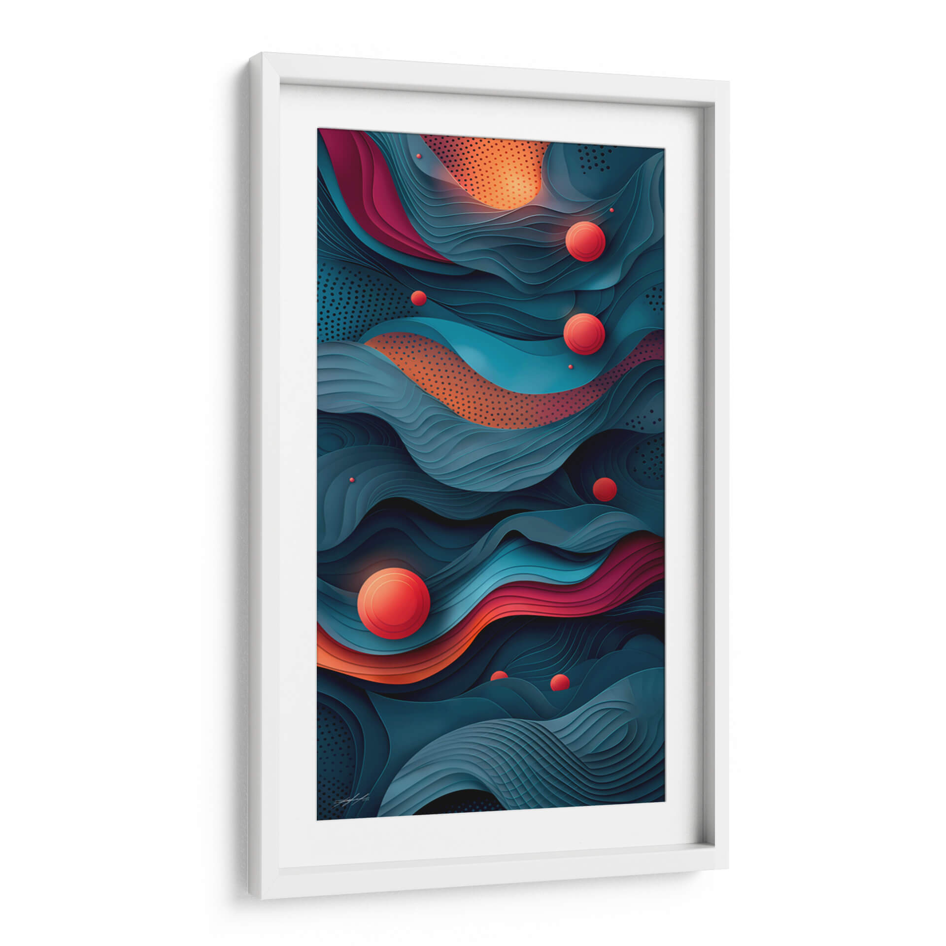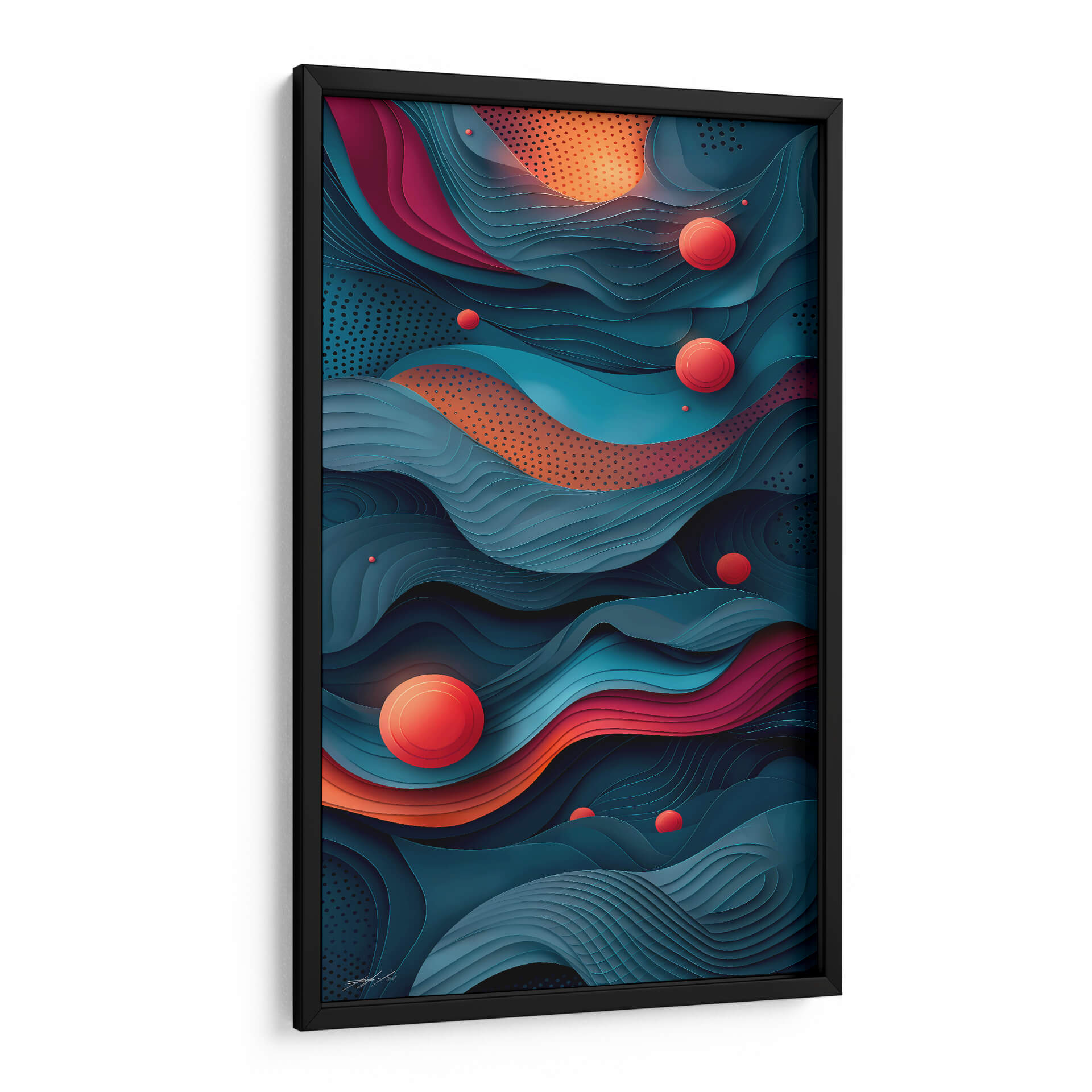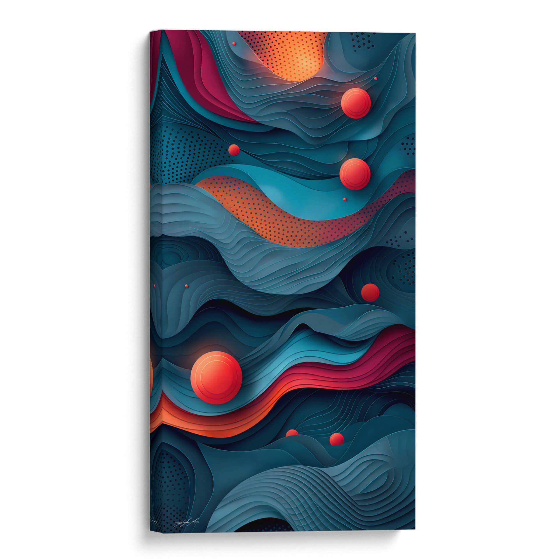 Sumérgete en la profundidad y el misterio de "Mi Universo Abstracto - 8", una obra de arte digital que redefine los límites de la percepción visual. Este cuadro decorativo se caracteriza por su intrincada composición de capas y texturas, creando una sensación de movimiento y fluidez que cautiva la mirada. Predominan los tonos fríos de azul y verde azulado, que se entrelazan con vibrantes acentos de rojo y naranja, evocando un cosmos personal lleno de energía y descubrimiento. Las esferas rojas suspendidas añaden un toque lúdico y enigmático, como planetas o estrellas en un universo en expansión. El estilo abstracto, con sus formas orgánicas y patrones de puntos sutiles, invita a la contemplación y a la interpretación personal, convirtiéndolo en un punto focal excepcional para cualquier espacio moderno. Ideal para quienes buscan una pieza de arte contemporáneo que inspire creatividad y diálogo, este cuadro decorativo es perfecto para salones, oficinas o cualquier lugar donde se desee añadir un toque de sofisticación y carácter único. Su diseño vertical lo hace especialmente adecuado para paredes que requieren un elemento visual impactante y alargado.
