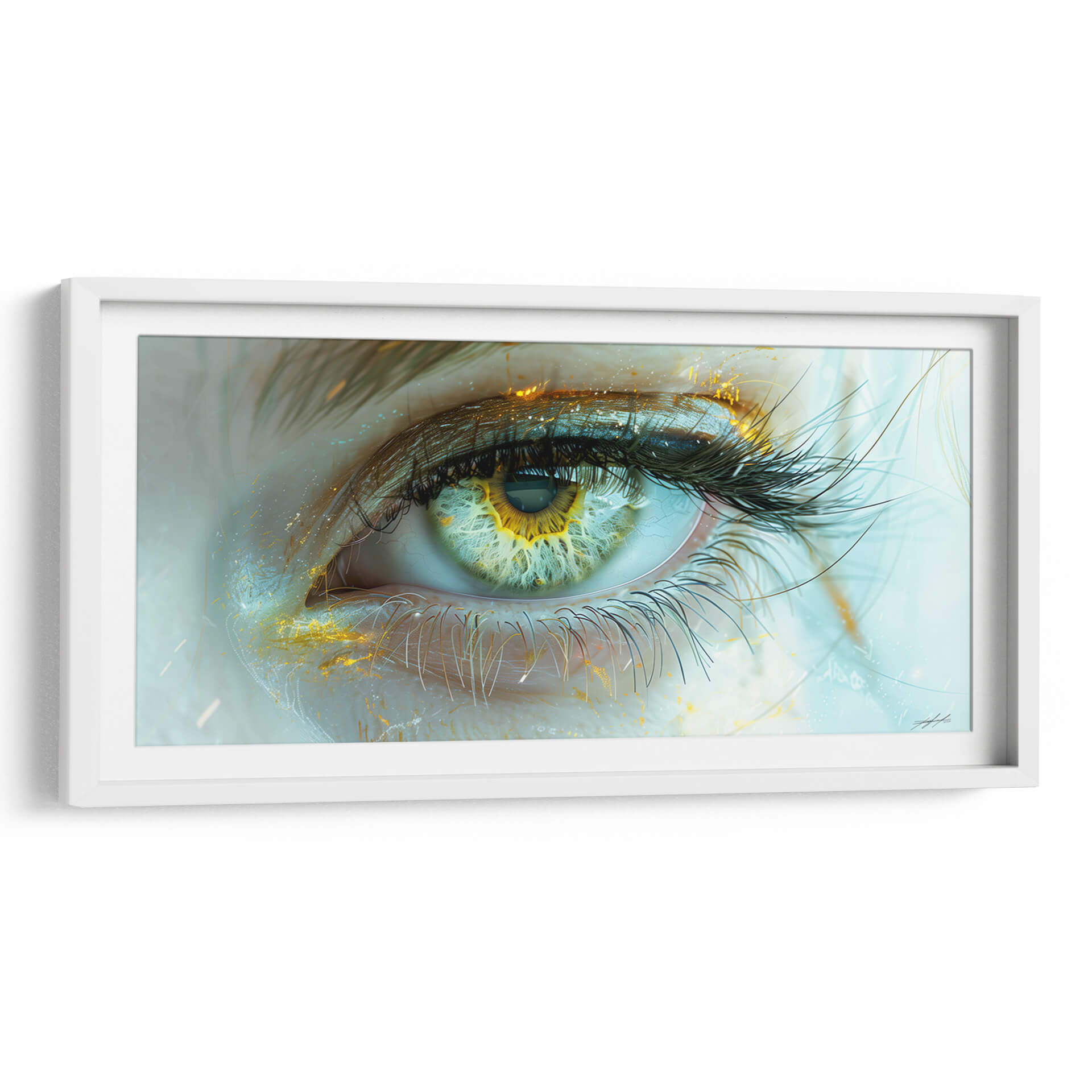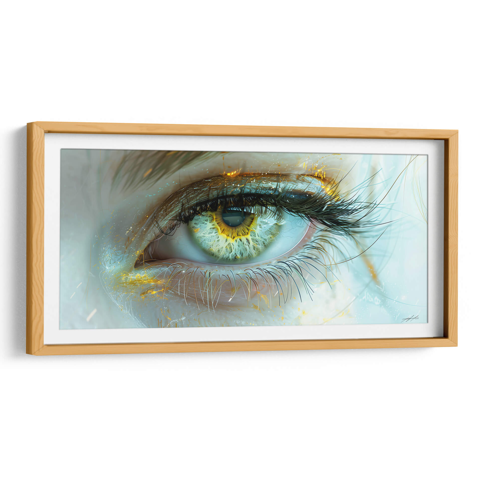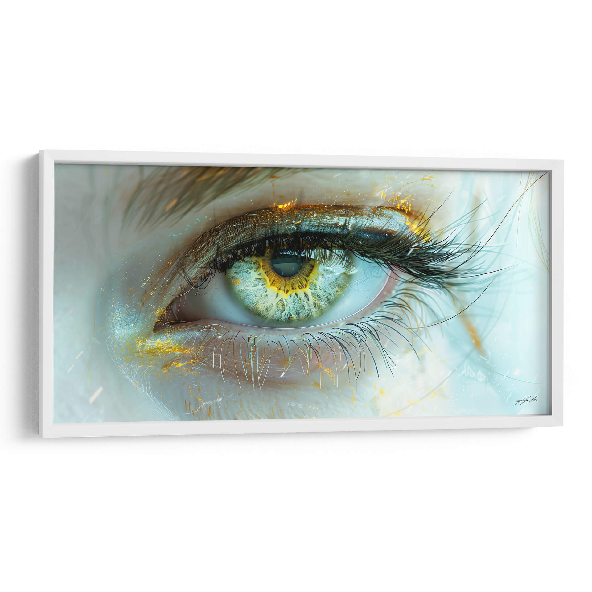 Sumérgete en la intensidad de "MÍRAME - 5", una obra de arte contemporáneo que captura la esencia de la mirada humana con un detalle hipnótico. Este cuadro decorativo presenta un primer plano extremo de un ojo, donde el iris se despliega en un caleidoscopio de tonos verdes y amarillos, salpicado de destellos dorados que evocan polvo de estrellas o destellos de magia. Las pestañas, largas y definidas, enmarcan la profundidad de la pupila, creando una conexión directa y poderosa con el espectador. La paleta de colores se centra en contrastes vibrantes, con azules pálidos y blancos etéreos que aportan un toque de serenidad y misterio, equilibrando la energía del iris. La composición es audaz y minimalista, enfocándose en un solo elemento para maximizar su impacto visual. "MÍRAME - 5" es perfecto para añadir un toque de intriga y sofisticación a cualquier espacio, ya sea una sala de estar moderna, un estudio personal o una oficina. Esta pieza invita a la reflexión y a la introspección, convirtiéndose en un punto focal que inspira conversaciones y admiración. Su estilo digital y detallado lo hace ideal para quienes buscan arte moderno y cautivador que destaque en cualquier decoración.