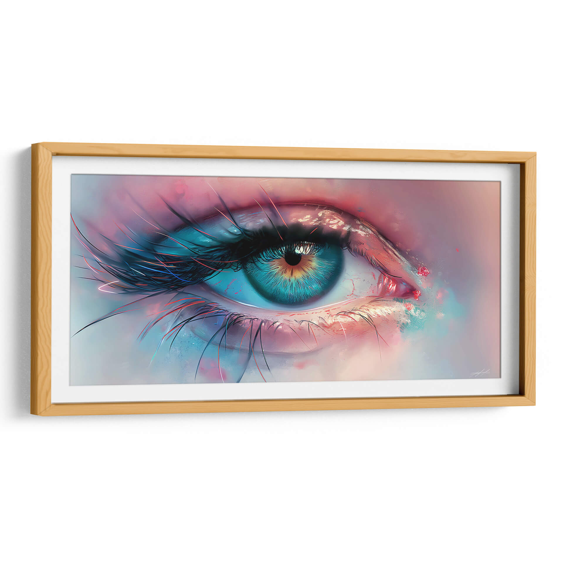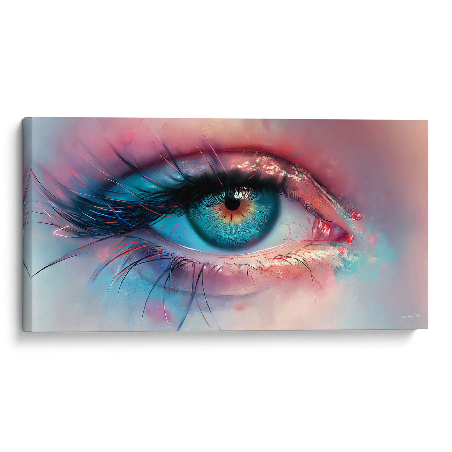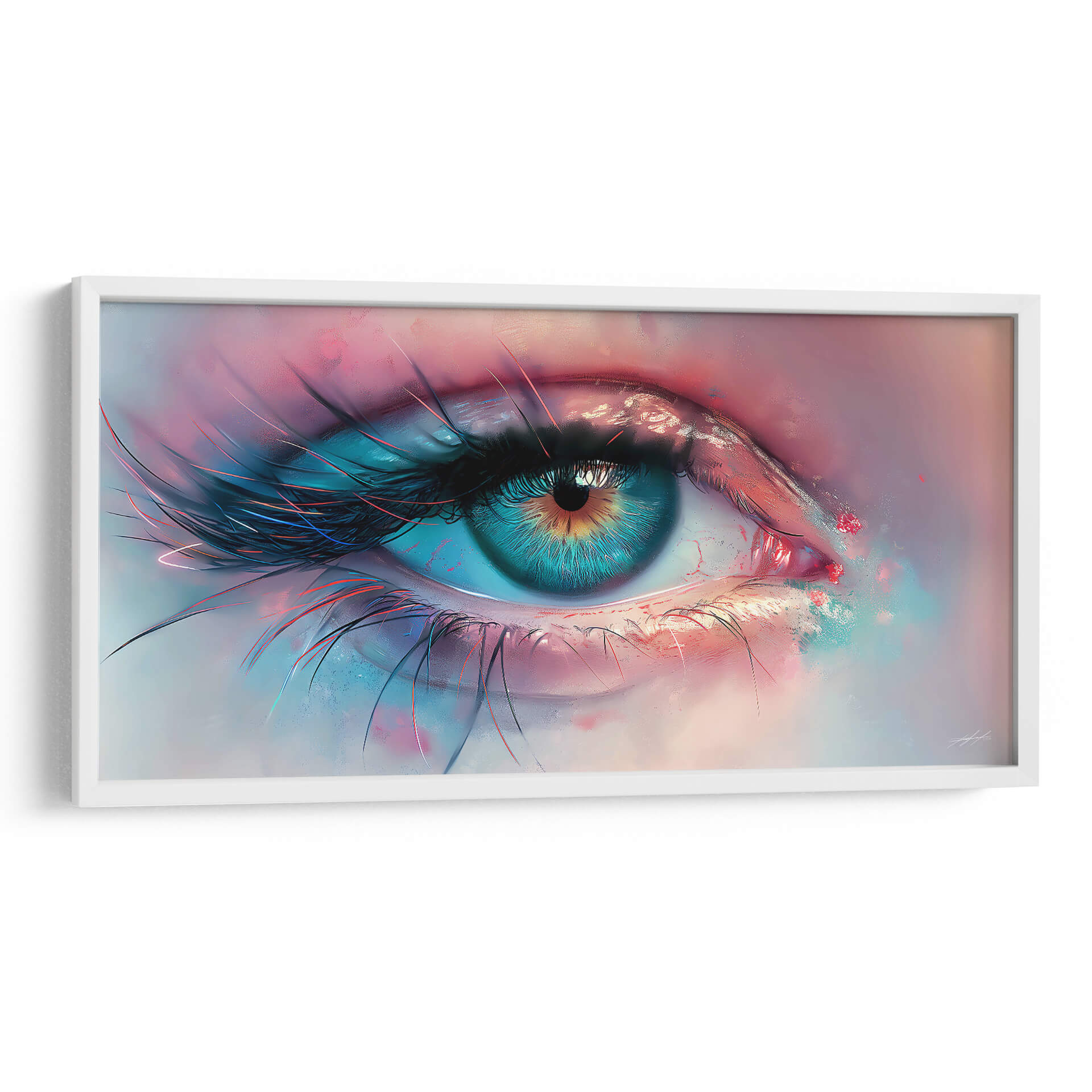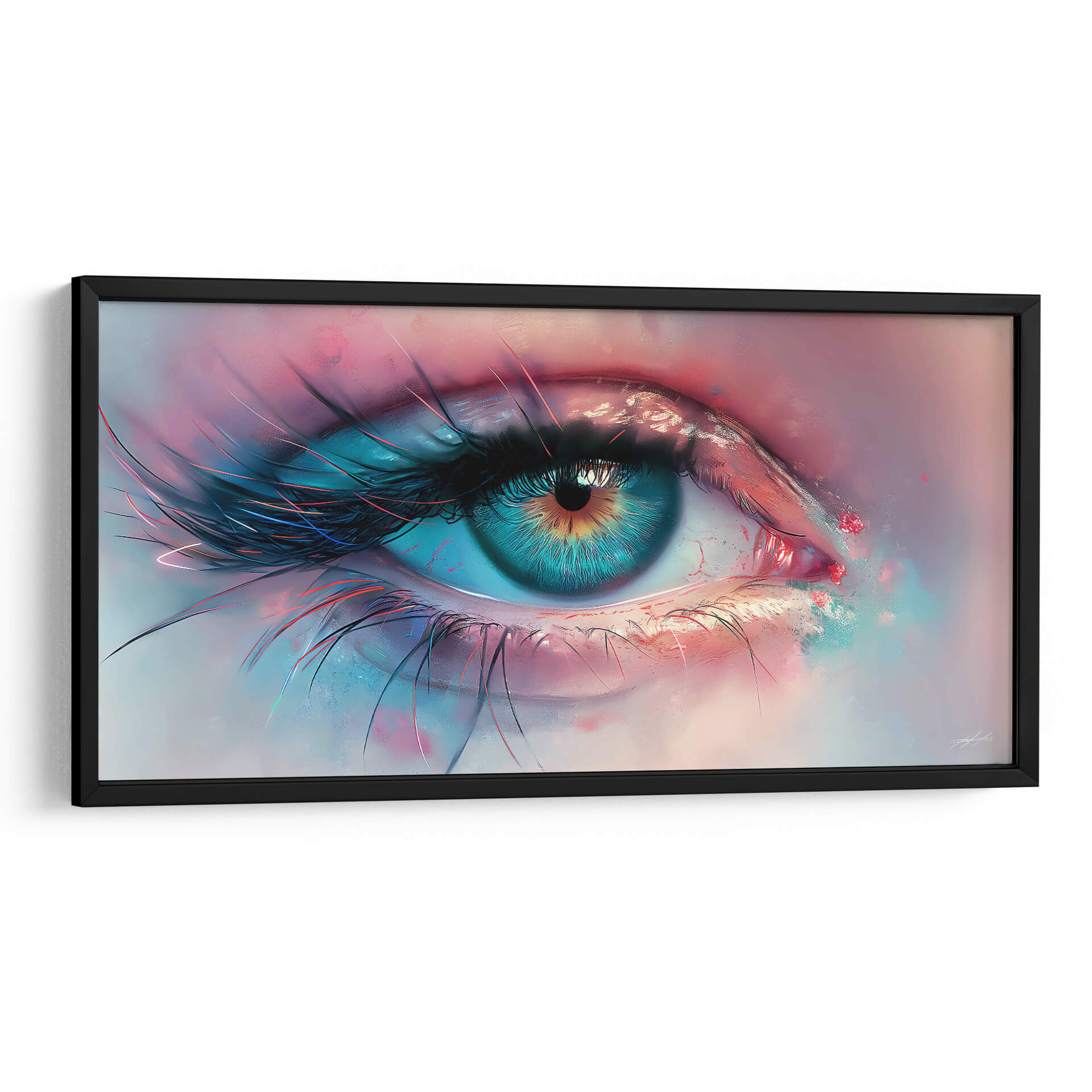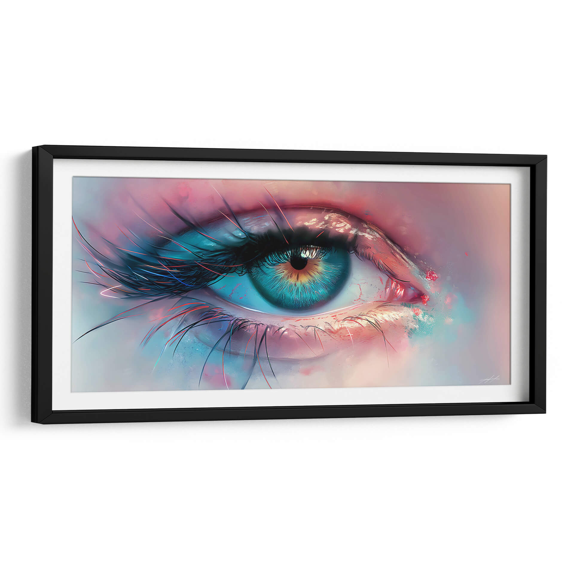 Sumérgete en la hipnótica mirada de "MÍRAME - 6" de DeLaVegaGaming, una obra de arte digital que captura la esencia de la conexión y la introspección. Este cuadro decorativo presenta un primer plano detallado de un ojo vibrante, con una pupila de tonos turquesa y dorados que parece observar directamente al espectador. Las pestañas, estilizadas y dramáticas, se curvan con gracia, enmarcadas por una explosión etérea de colores pastel que van desde el rosa suave hasta el azul cielo, salpicados con toques de carmesí que añaden una chispa de energía. La técnica digital empleada por el artista crea una textura que se siente a la vez suave y dinámica, invitando a la reflexión sobre la percepción y la belleza en los detalles. "MÍRAME - 6" es una pieza que infunde misterio y profundidad, perfecta para añadir un toque contemporáneo y cautivador a cualquier sala de estar, dormitorio o espacio de trabajo moderno. Su composición audaz y su paleta de colores surrealista la convierten en un punto focal ideal, capaz de dialogar con la decoración existente y despertar conversaciones. Descubre la intensidad y la emotividad que este cuadro decorativo puede aportar a tu hogar, transformando tu pared en una ventana a un mundo de arte contemporáneo. Ideal para quienes buscan arte abstracto con un toque de realismo y una fuerte carga emocional.