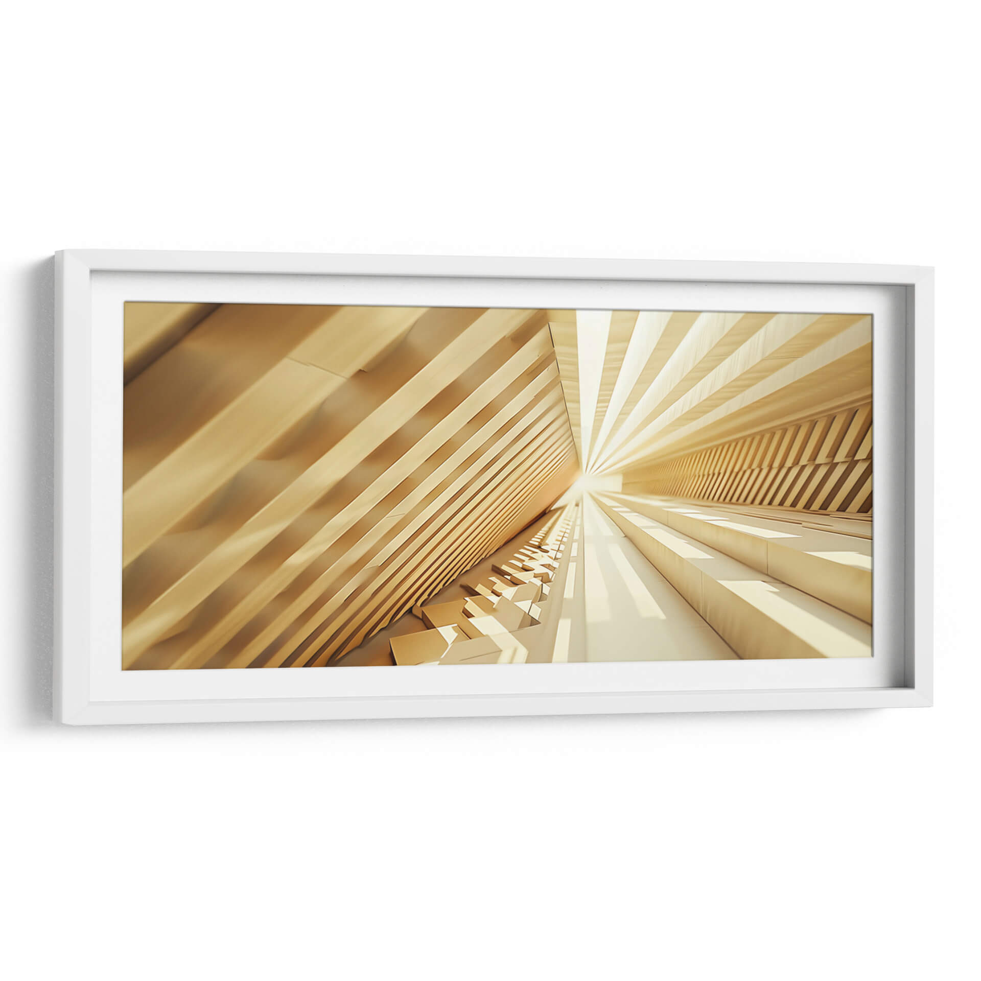 Sumérgete en la perspectiva hipnótica de "Movimiento - Beige - 1", una obra de arte abstracto que te transporta a través de un túnel de luz y sombra. Las líneas paralelas y los ángulos pronunciados crean una sensación de profundidad y dinamismo, invitando al espectador a explorar un espacio arquitectónico que evoca tanto la modernidad como la serenidad. La paleta de colores cálidos, dominada por tonos beige y dorados suaves, infunde una atmósfera de calma y sofisticación, haciendo de este cuadro decorativo una pieza ideal para cualquier ambiente que busque un toque de elegancia atemporal. Su diseño abstracto y geométrico lo convierte en un punto focal intrigante para salones contemporáneos, oficinas o cualquier espacio que aprecie el arte minimalista con un toque de movimiento. "Movimiento - Beige - 1" no es solo una decoración de pared, es una invitación a la reflexión, un portal visual que transforma la percepción del espacio y añade profundidad emocional a tu hogar u oficina, fusionando la arquitectura con el arte abstracto de una manera cautivadora. Su composición lineal y el juego de luces y sombras proyectan una sensación de orden y fluidez, ideal para crear un ambiente de concentración o relajación.