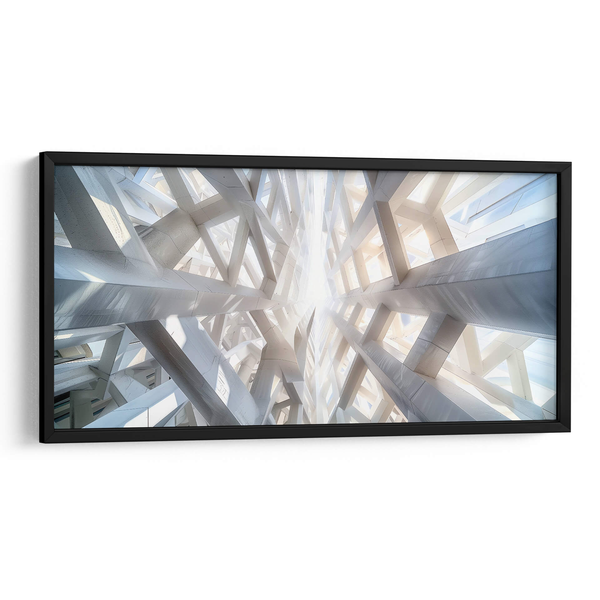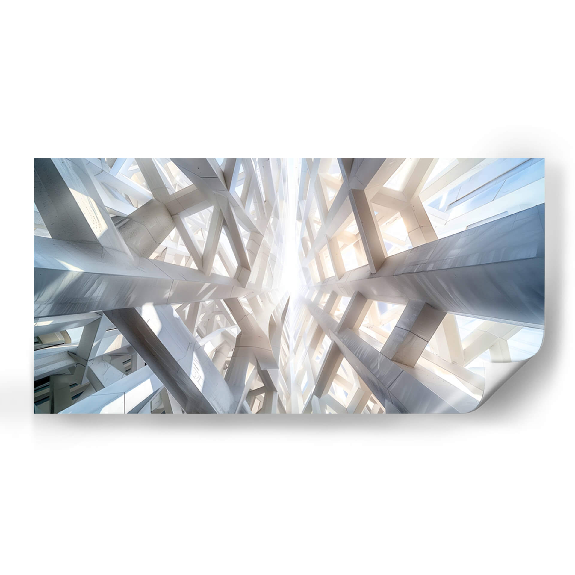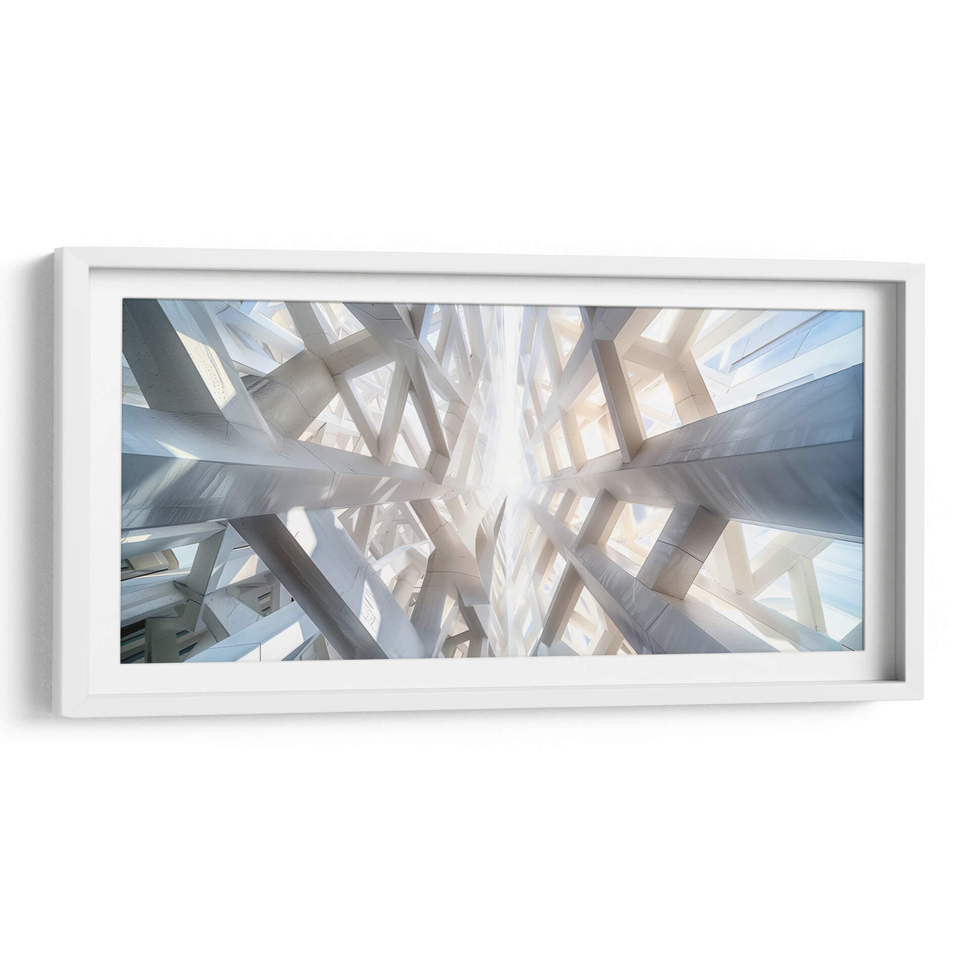 Sumérgete en la fascinante arquitectura abstracta de "Movimiento - Blanco - 3", una obra de arte que redefine la percepción del espacio y la luz. Esta pieza captura una intrincada red de líneas y formas geométricas en tonos predominantemente blancos y grises, creando un juego de luces y sombras que evoca profundidad y dinamismo. La composición compleja, que se asemeja a una estructura arquitectónica moderna o a un intrincado diseño fractal, invita a la contemplación y estimula la imaginación. Los sutiles matices de azul cielo que se asoman entre los elementos estructurales añaden una sensación de amplitud y frescura, contrastando delicadamente con la solidez de las formas principales. "Movimiento - Blanco - 3" es ideal para espacios que buscan un toque de sofisticación contemporánea y un aire de misterio arquitectónico. Su estética minimalista pero detallada la convierte en el punto focal perfecto para salas de estar, oficinas o estudios, aportando una atmósfera de orden, avance y modernidad. Transforma tu pared en una ventana hacia un universo de diseño innovador y conceptual con este impresionante cuadro decorativo.