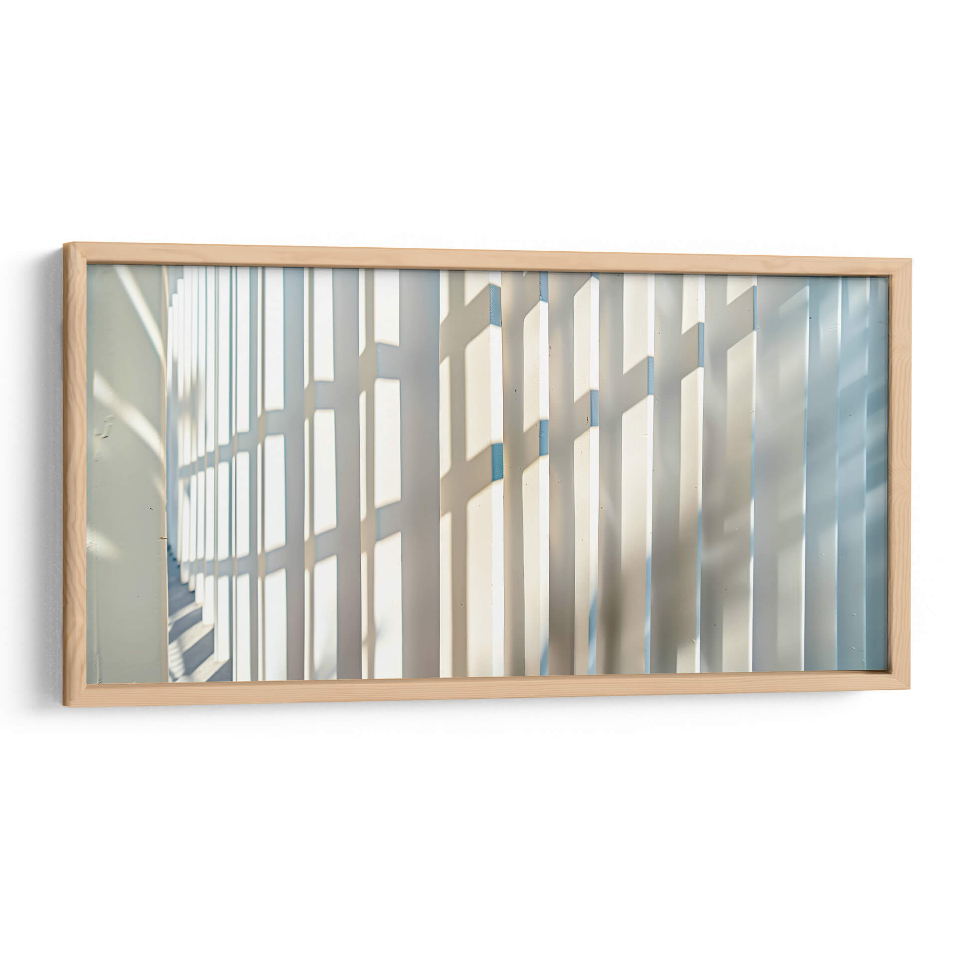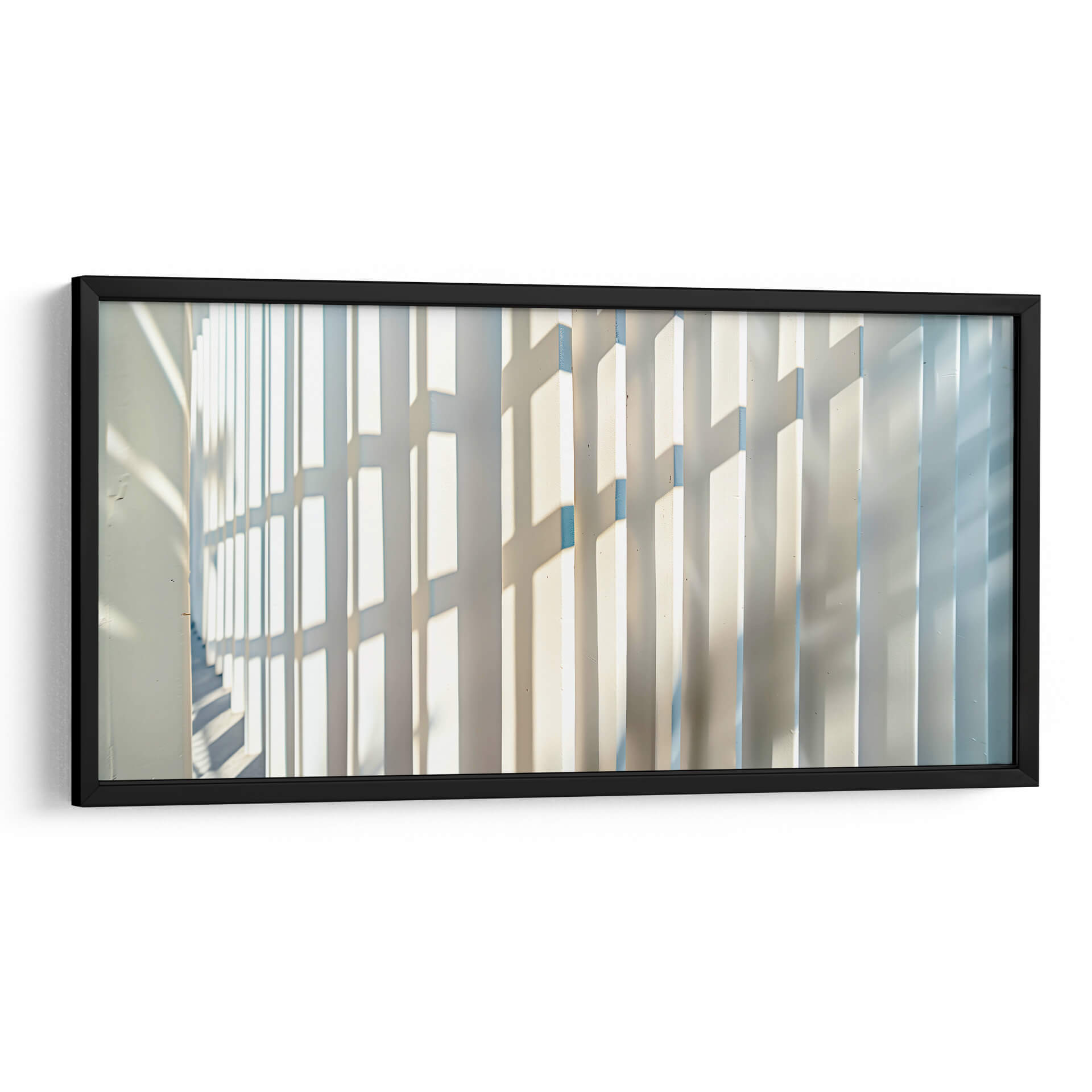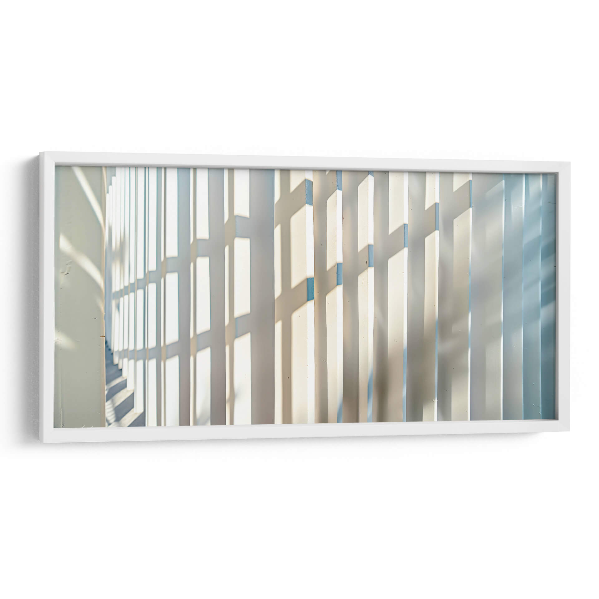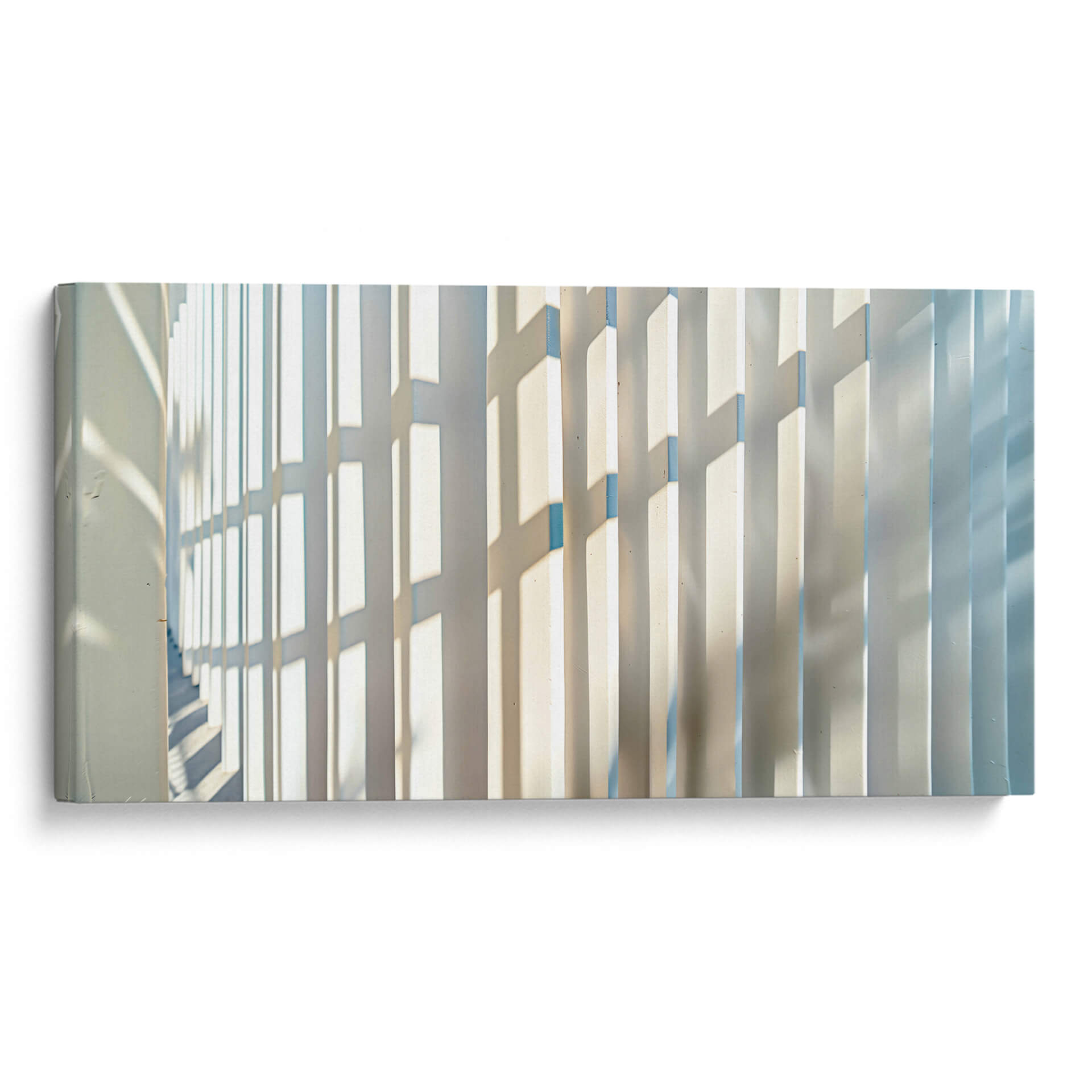 Sumérgete en la serenidad y el dinamismo de "Movimiento - Blanco - 4", una obra de arte contemporáneo que captura la interacción de la luz y la sombra con una elegancia minimalista. Este cuadro decorativo presenta una composición abstracta de líneas verticales y formas geométricas, donde los tonos blancos y grises suaves se entrelazan con sutiles toques de azul pálido, creando una atmósfera de calma y orden. La luz juega un papel protagonista, proyectando sombras nítidas y suaves que añaden profundidad y dimensión a la pieza, evocando la sensación de un espacio arquitectónico bañado por el sol. Ideal para aquellos que buscan infundir tranquilidad y sofisticación en su hogar u oficina, esta obra invita a la contemplación y al disfrute visual. Su estilo abstracto y su paleta de colores neutros la convierten en una adición versátil para cualquier decoración moderna o contemporánea, aportando un toque de refinamiento y luminosidad. "Movimiento - Blanco - 4" es más que un simple cuadro; es una invitación a experimentar la belleza sutil del espacio y la luz, transformando cualquier pared en un lienzo de serenidad y estilo. Perfecta para salas de estar, dormitorios o espacios de trabajo que buscan un equilibrio visual y una sensación de amplitud.