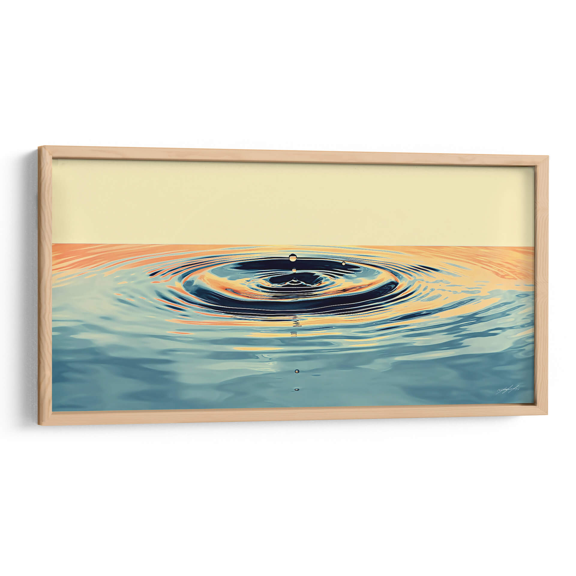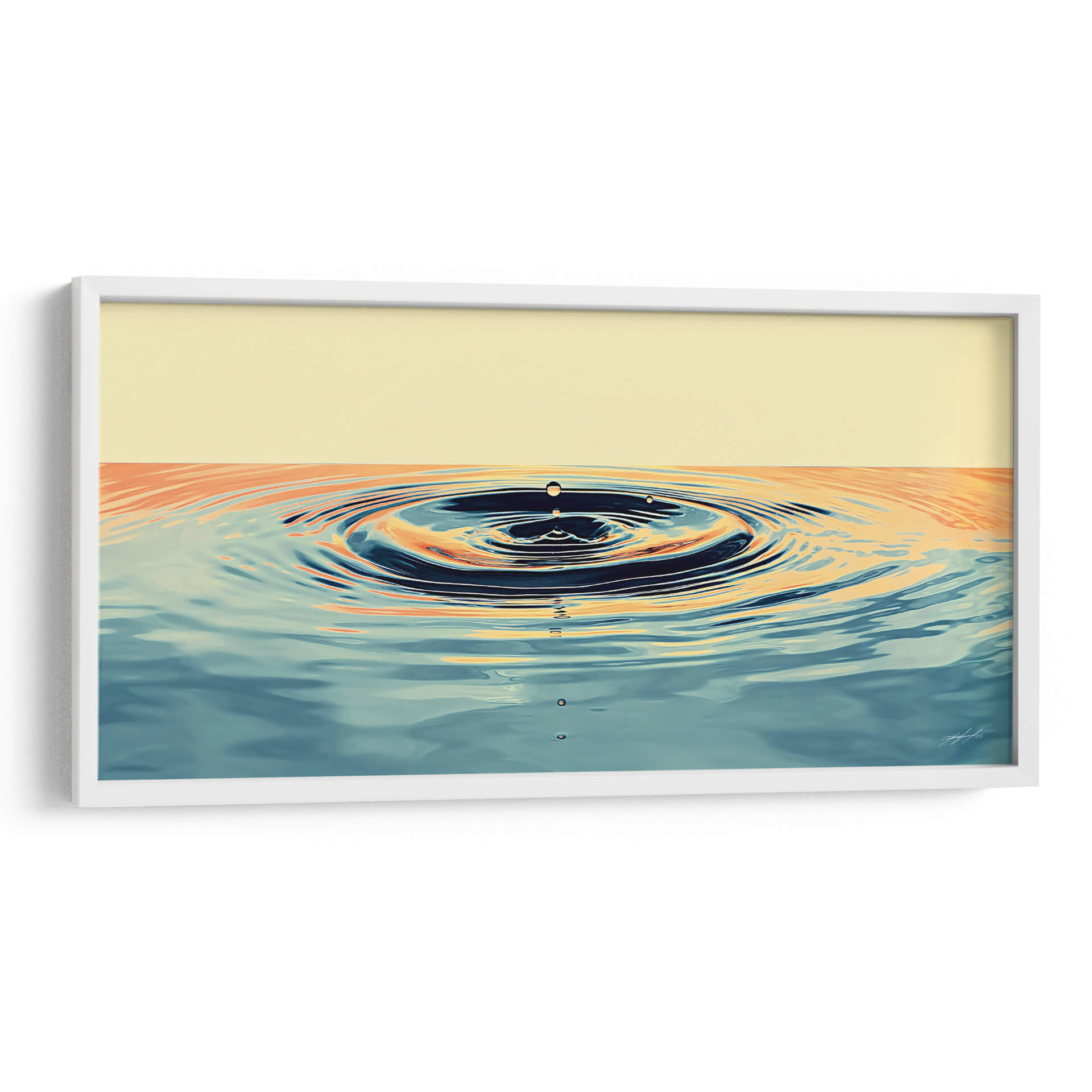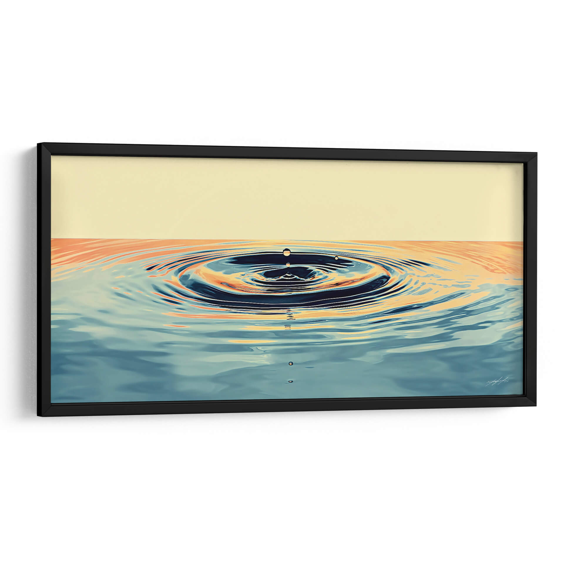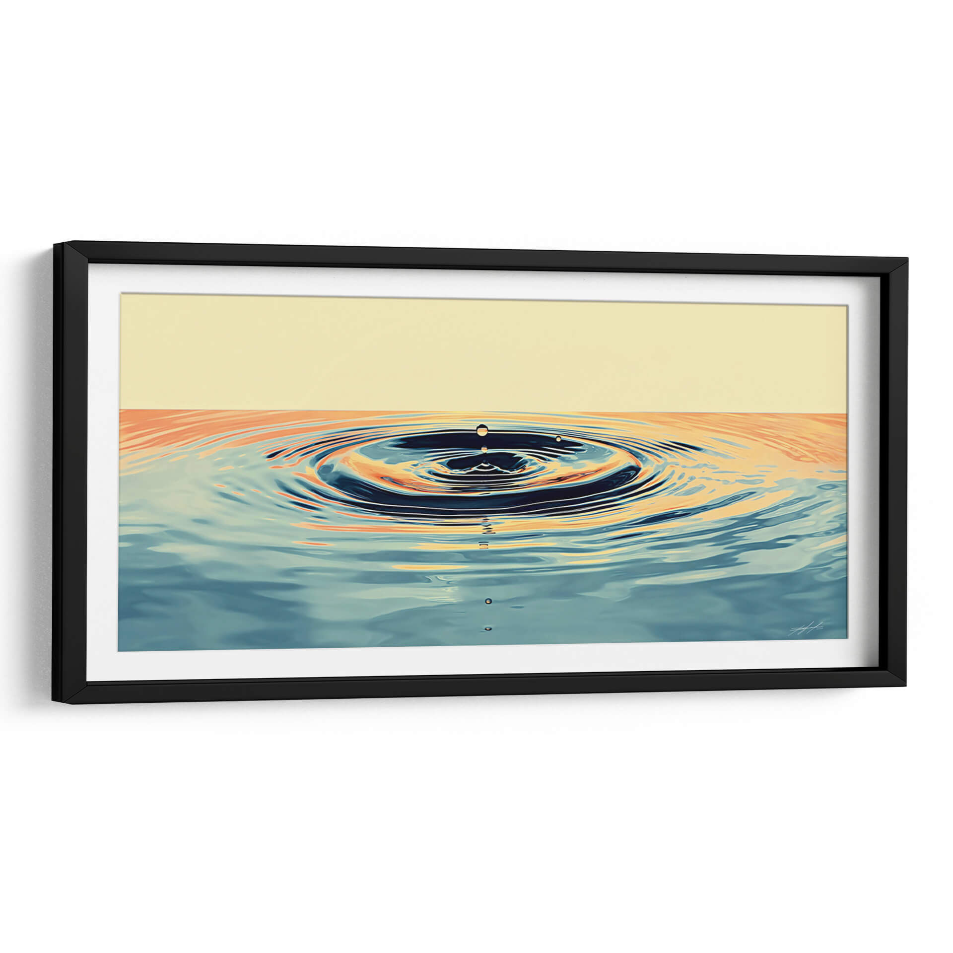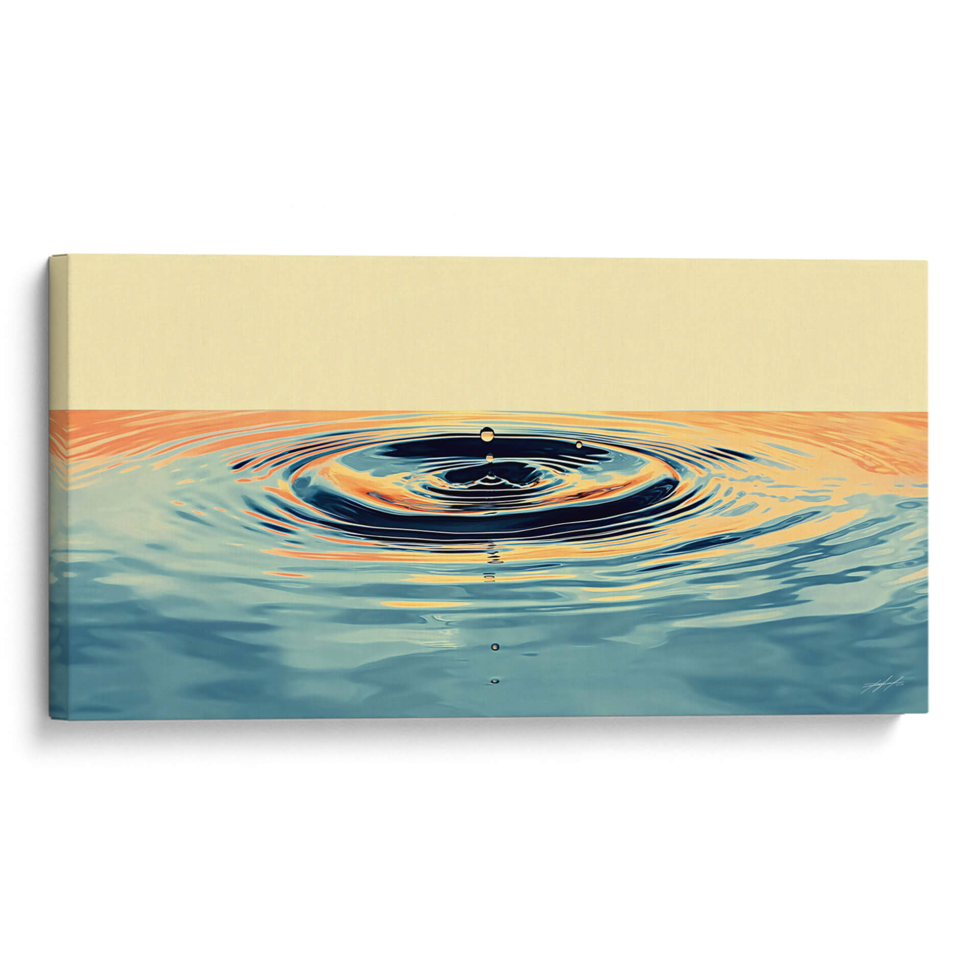 Sumérgete en la serenidad de "SERENO - 2", una obra de arte contemporáneo que captura la belleza efímera de una gota de agua impactando la superficie. Los tonos azules y turquesas del agua se fusionan con reflejos cálidos de naranja y ocre, creando un contraste visual cautivador. La composición minimalista, dividida entre un cielo sereno y un cuerpo de agua en movimiento, evoca una sensación de calma y reflexión. Las ondas concéntricas que emanan del punto de impacto central invitan a la meditación, transformando esta pieza en un oasis de paz para tu hogar u oficina. "SERENO - 2" es ideal para espacios que buscan un toque de tranquilidad y sofisticación, como dormitorios, salas de estar o estudios. Su estilo abstracto y su paleta de colores equilibrada permiten que se integre armónicamente en diversas decoraciones, desde las más modernas hasta las más clásicas. Este cuadro decorativo no solo embellece tus paredes, sino que también te transporta a un estado de contemplación, recordándote la belleza de los momentos simples y profundos. Añade una atmósfera de serenidad y elegancia a tu entorno con esta pieza única.