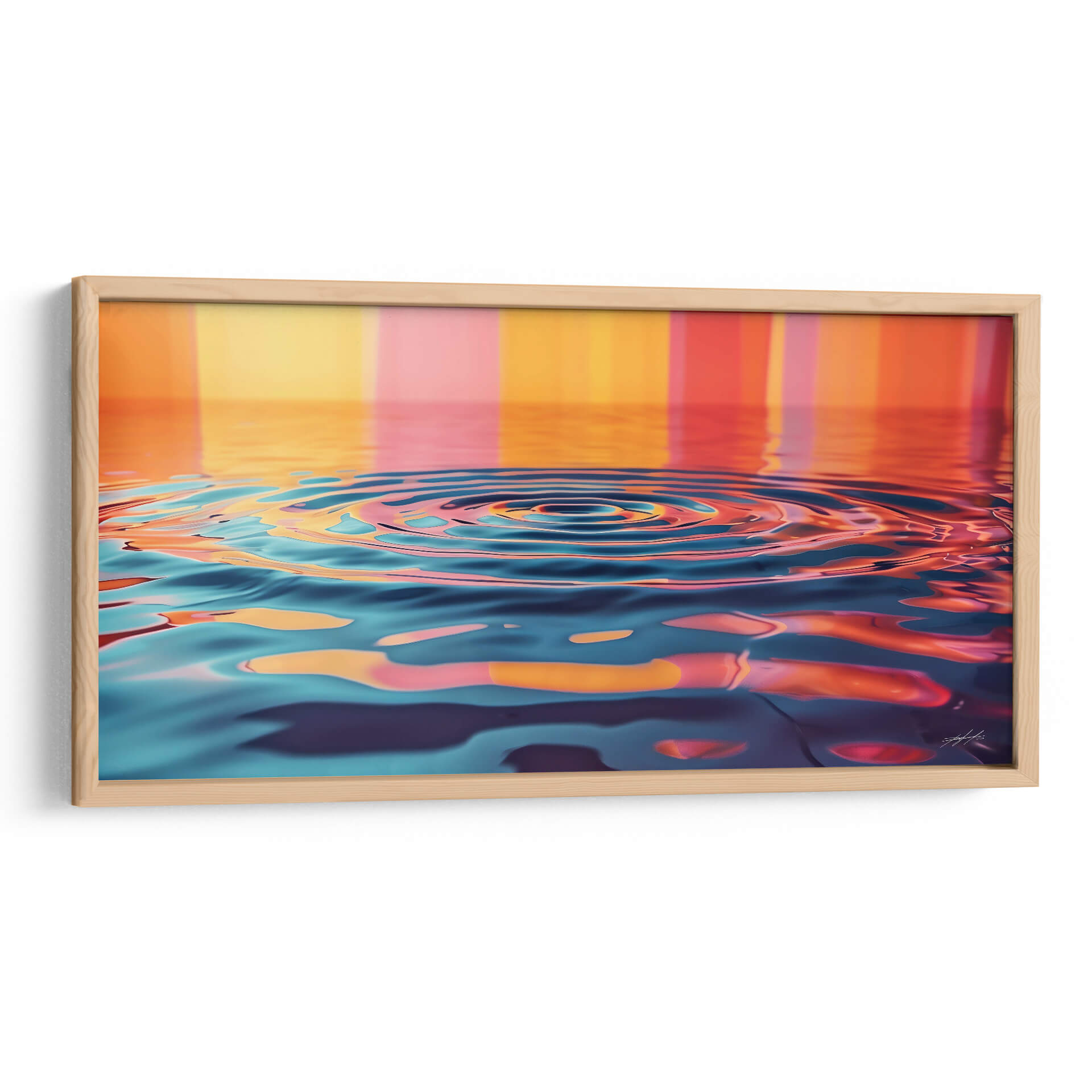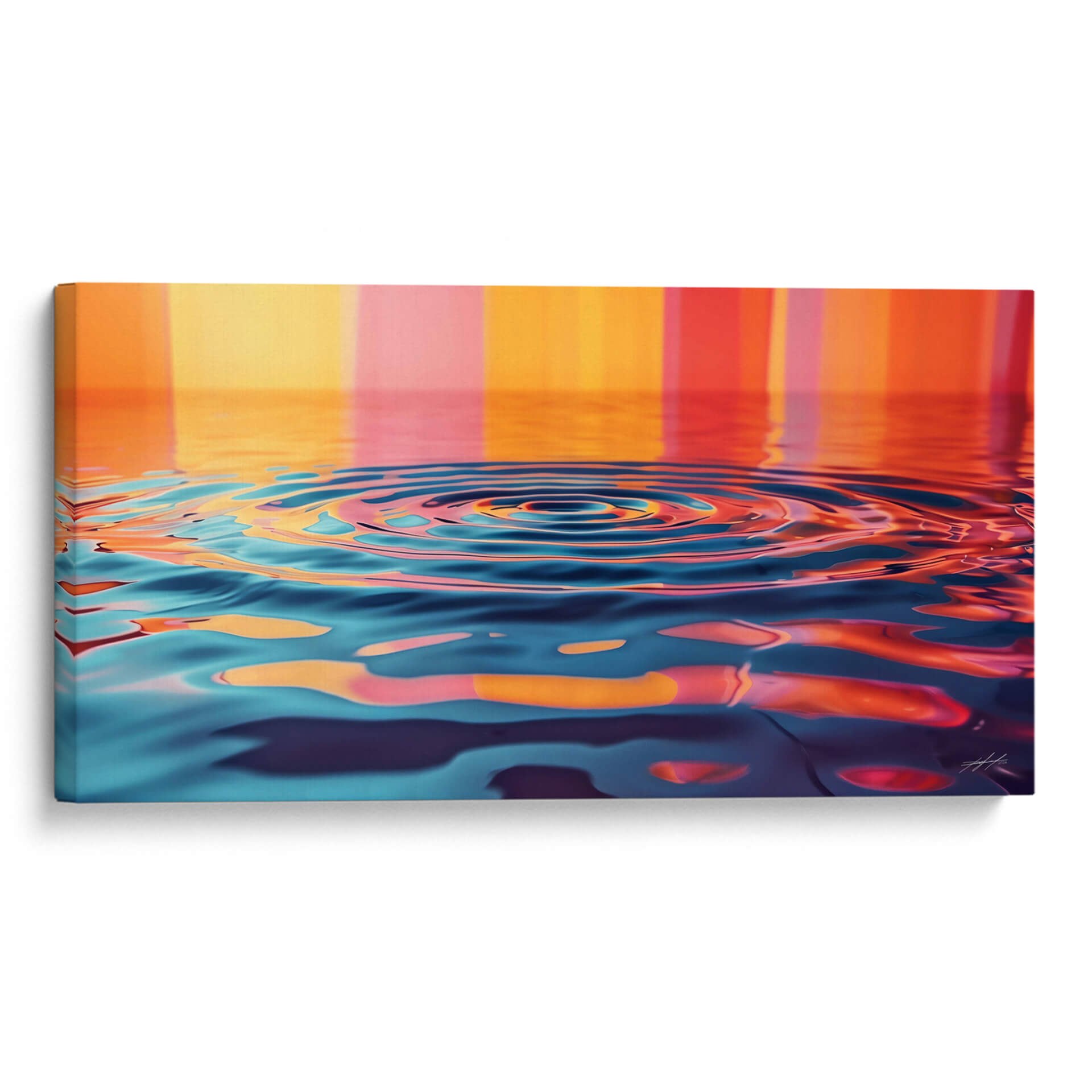Sumérgete en la serena belleza de "SERENO - 7", una obra de arte contemporáneo que captura la etérea danza de las ondas en el agua. Los vibrantes tonos anaranjados y rosados del fondo se reflejan en la superficie acuática, creando un juego de luces y sombras fascinante. Las profundas tonalidades azules y púrpuras del agua contrastan armónicamente con los cálidos reflejos, generando una atmósfera de profunda calma y contemplación. Este cuadro decorativo, con su estilo abstracto y composición dinámica, es perfecto para añadir un toque de sofisticación y tranquilidad a cualquier espacio. Imagina este lienzo en tu sala de estar, aportando una sensación de paz y serenidad, o como un punto focal inspirador en tu oficina. "SERENO - 7" no es solo una pieza decorativa, sino una invitación a la reflexión y al disfrute de la belleza efímera del mundo natural, re imaginada a través de la visión artística de DeLaVegaGaming. Su capacidad para evocar sensaciones de calma y bienestar lo convierte en una elección ideal para crear un ambiente acogedor y estilizado en tu hogar o lugar de trabajo.