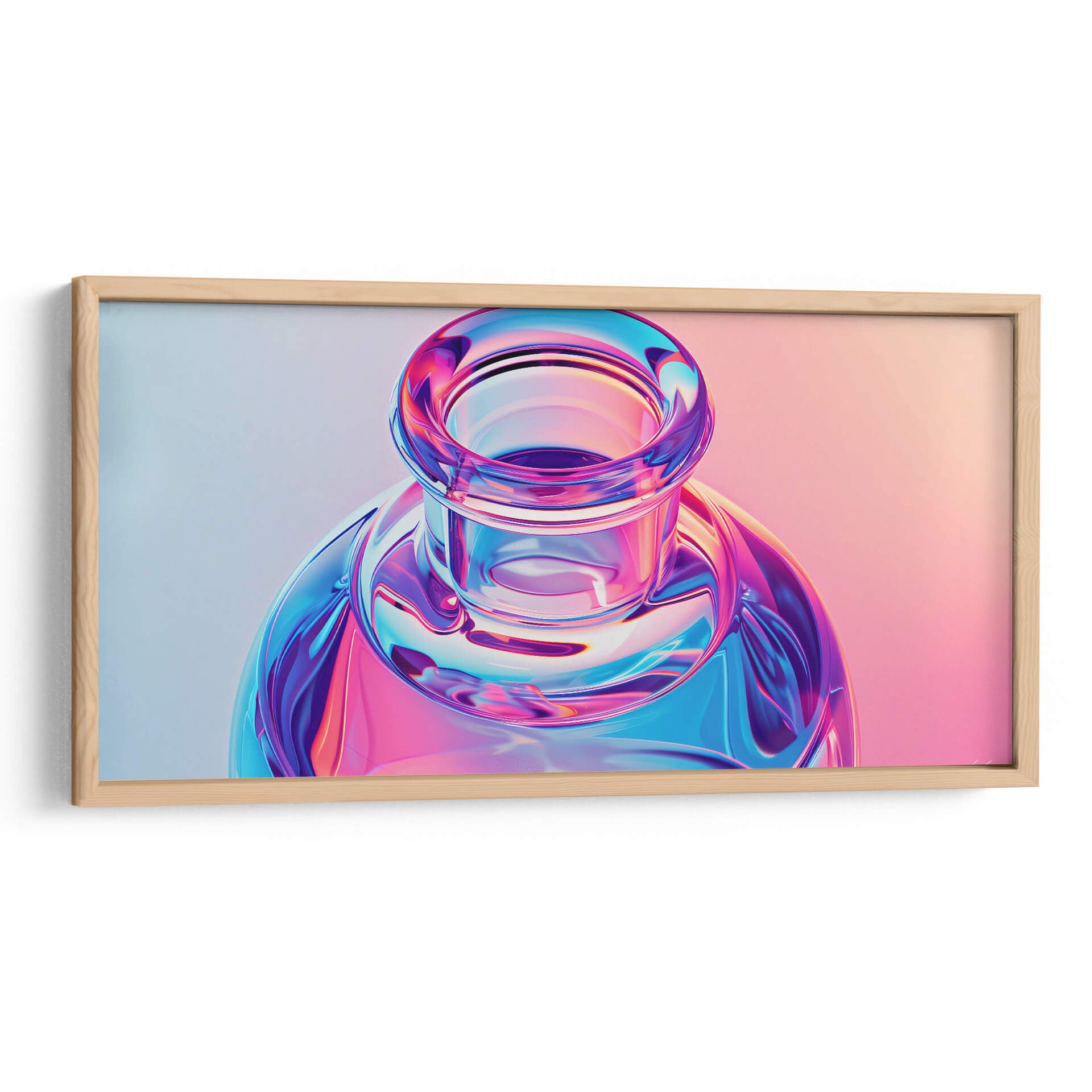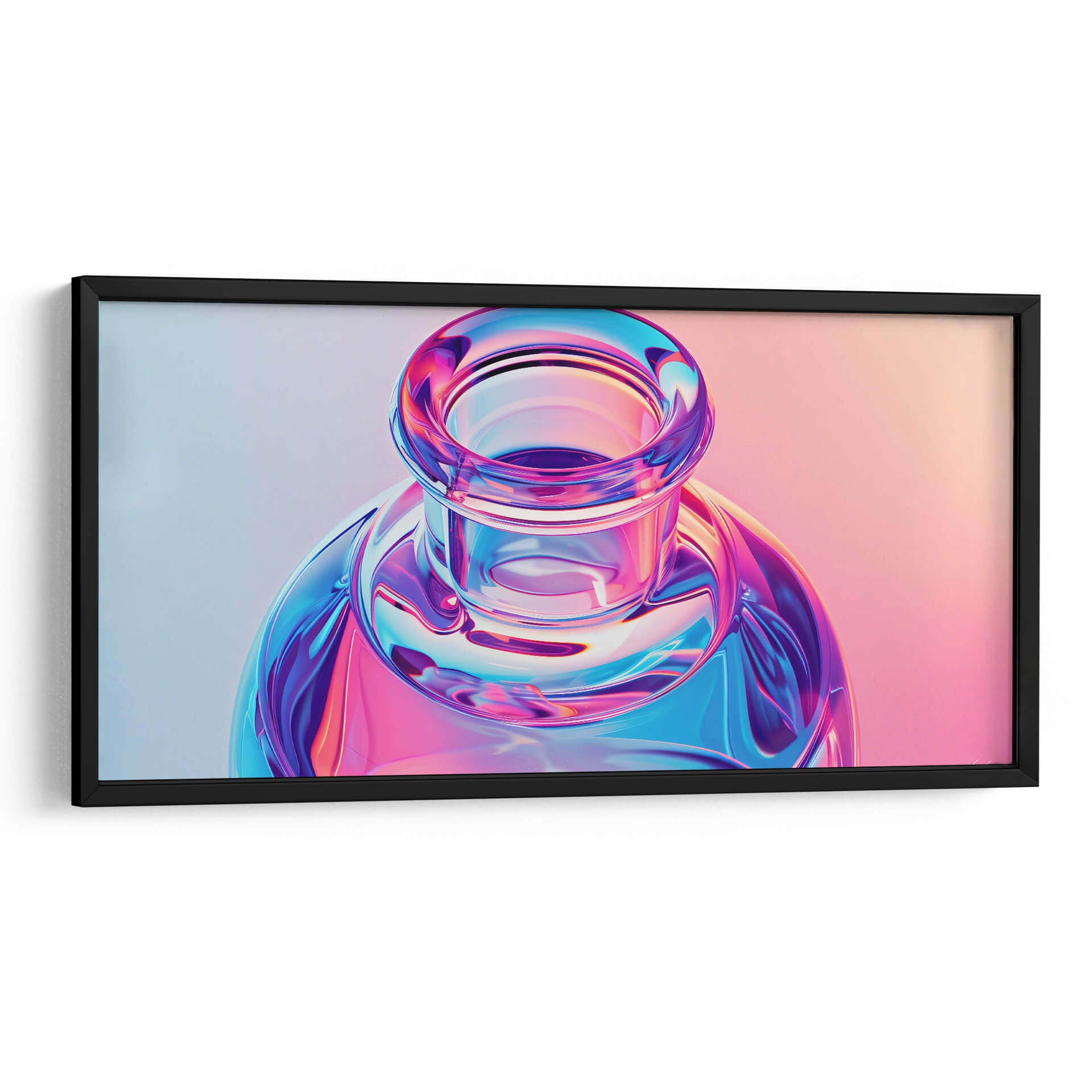 Sumérgete en la cautivadora estética de "Sueño de un Bar - 5", una obra de arte digital que desafía la percepción con su vibrante juego de luces y colores. Este cuadro decorativo presenta una botella de vidrio de diseño abstracto, capturada en un momento de fluidez y reflexión. Los tonos iridiscentes de azul eléctrico, magenta profundo y toques de rosa pálido dan vida a la pieza, creando un efecto hipnótico que atrae la mirada. La textura del cristal se moldea y distorsiona, generando un baile de reflejos y sombras que aportan profundidad y dinamismo. La composición, centrada en el cuello y la boca de la botella, invita a la contemplación, sugiriendo una narrativa de transparencia, transformación y quizás, la esencia etérea de un momento capturado. Ideal para espacios modernos y contemporáneos, este cuadro aportará un toque de sofisticación abstracta y un estallido de color a cualquier habitación, ya sea una sala de estar, un estudio o una oficina. Transforma tu pared en una ventana a un mundo de formas fluidas y colores deslumbrantes con esta pieza única.