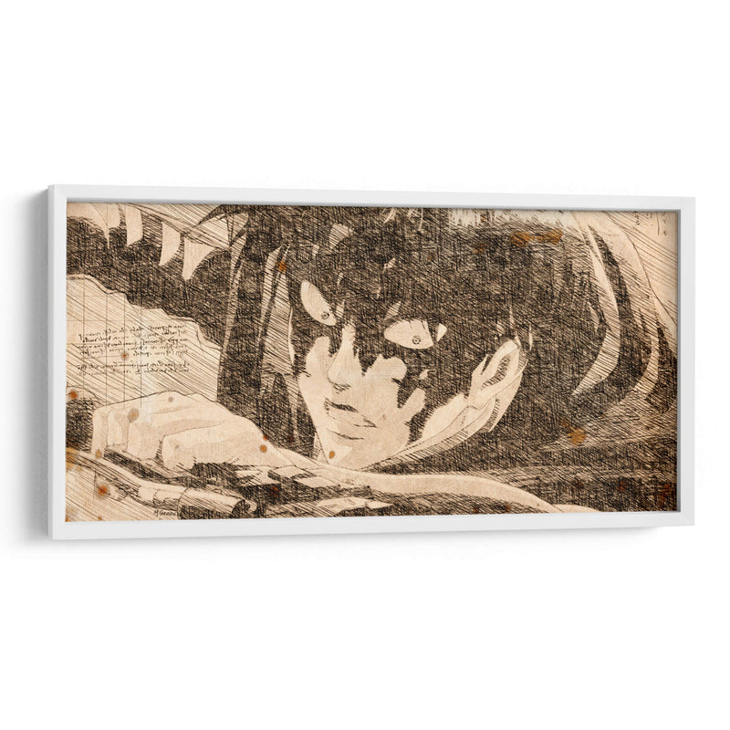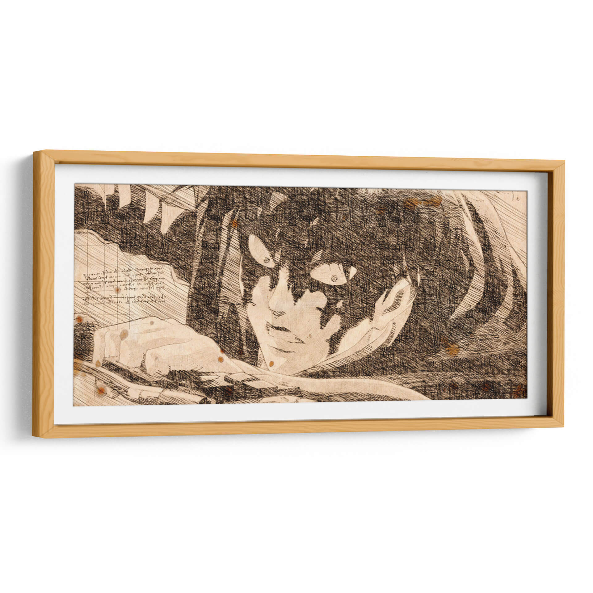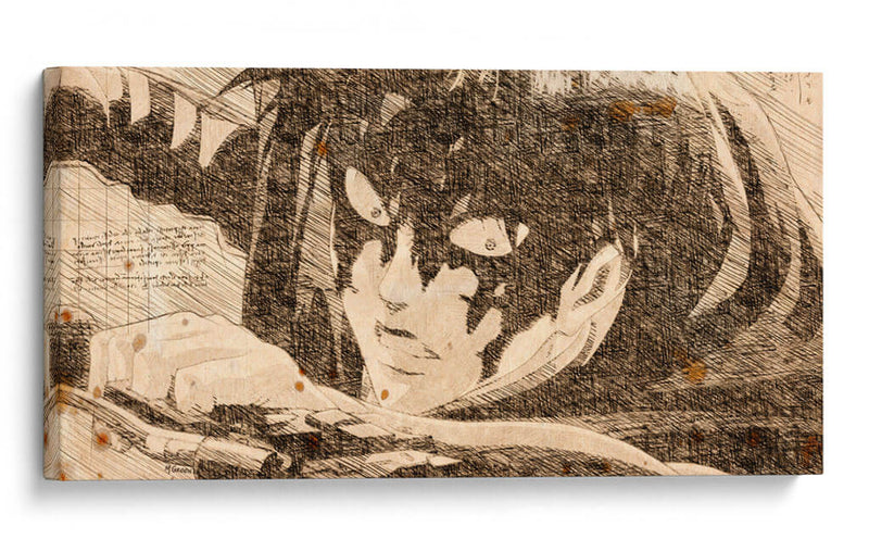 Sumérgete en la intensidad y el drama con este cautivador cuadro decorativo que evoca el espíritu de "Tatakae". La obra, inspirada en el estilo del Renacimiento y con un toque de manga, presenta un primer plano de un personaje con una mirada penetrante y determinada. La técnica de boceto a trazos, reminiscentes de los estudios de Leonardo da Vinci, aporta una profundidad y textura únicas, mientras que la paleta de colores sepia y tierra crea una atmósfera atemporal y enigmática. Los detalles en la composición, como los sutiles toques de color ocre y las anotaciones que parecen escrituras antiguas, añaden capas de interés visual y conceptual. Este lienzo es ideal para espacios que buscan un punto focal audaz y lleno de carácter, como una sala de estar moderna, un estudio o una oficina. La energía contenida y la fuerza expresiva de la figura central lo convierten en una pieza de arte de pared que inspira determinación y pasión, perfecta para aquellos que aprecian el arte con narrativa y un trasfondo histórico o literario. Añade un toque de arte contemporáneo con un guiño a los maestros clásicos y la cultura pop a tu decoración.