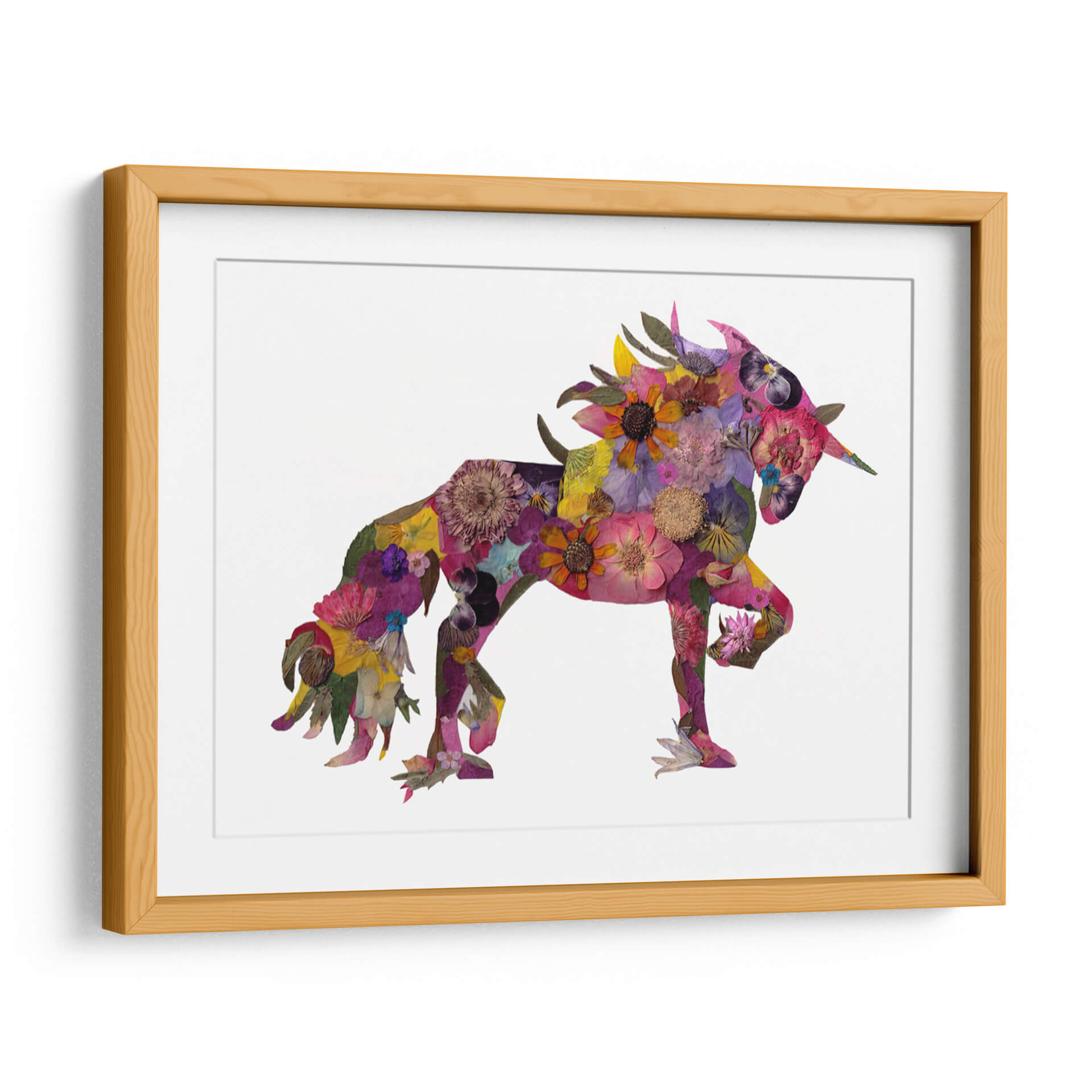 Déjate cautivar por la mágica silueta de un unicornio, creada enteramente a partir de una vibrante colección de flores secas y prensadas. Esta obra de arte, titulada "Unicorn Silhouette" por Designs by Andrea, es un testimonio de la belleza efímera de la naturaleza transformada en una pieza decorativa atemporal. Cada pétalo y hoja ha sido cuidadosamente seleccionado y dispuesto para dar vida a esta criatura mítica, creando un tapiz de colores que va desde profundos púrpuras y rosas intensos hasta toques de amarillo brillante y naranja cálido. La composición destaca la elegancia y la fuerza del unicornio, con la textura detallada de las flores que añaden profundidad y un encanto orgánico. Ideal para infundir un aire de fantasía y alegría en cualquier espacio, este lienzo es perfecto para habitaciones infantiles, estudios creativos o cualquier rincón que necesite un toque de color y ensueño. Su diseño único lo convierte en un punto focal que inspira imaginación y admiración, fusionando el mundo natural con el reino de la fantasía. Añade esta pieza excepcional a tu colección y transporta tu hogar a un lugar de maravilla y serenidad.
