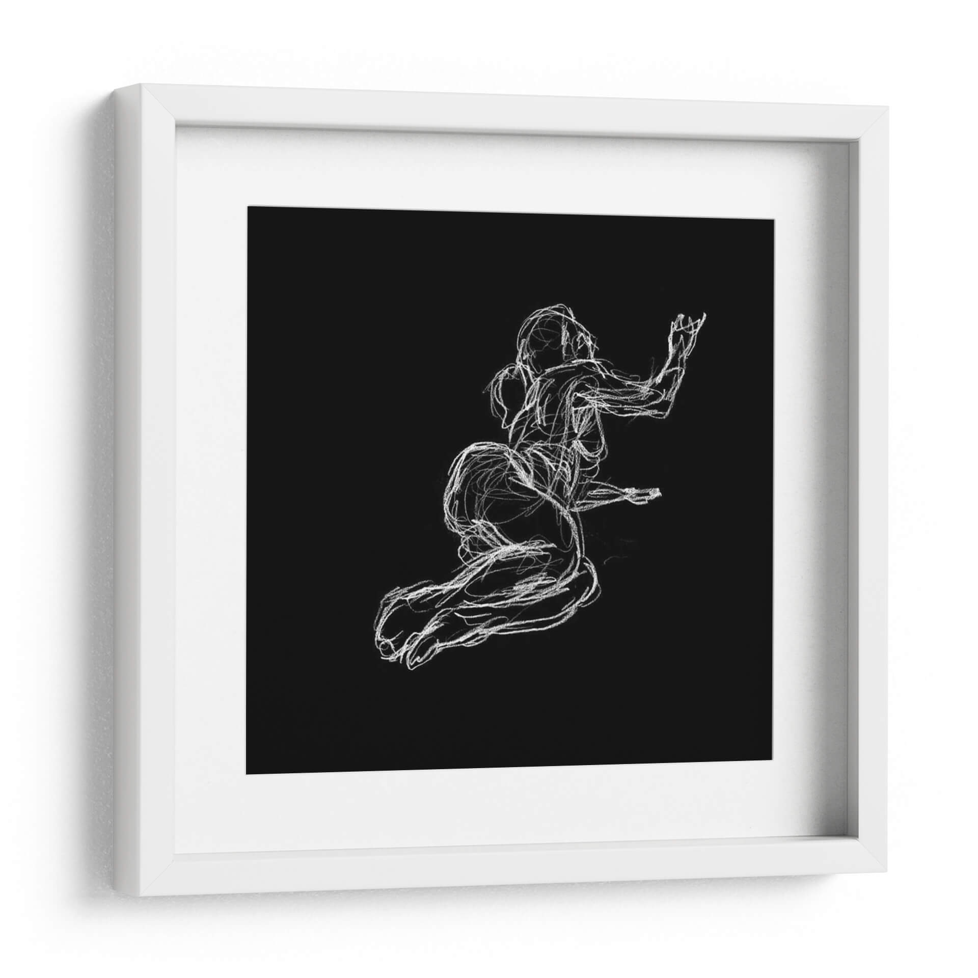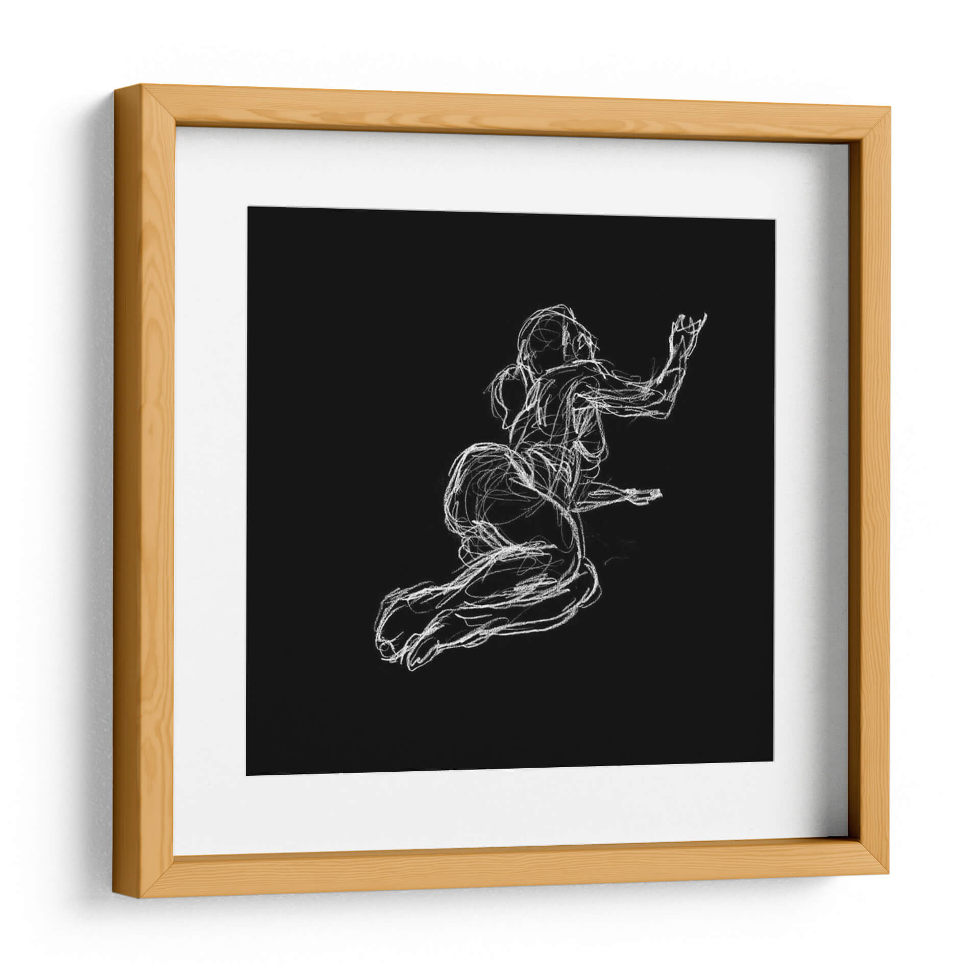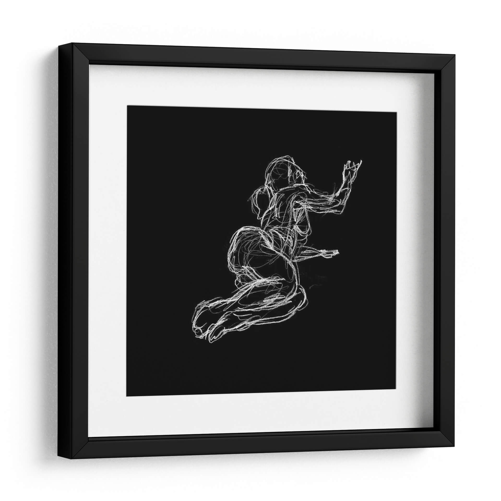 Captura la esencia del movimiento y la forma humana con este cautivador cuadro decorativo de Charles Swinford. La obra, titulada 'Estudio De Figura Sobre Negro Iv', presenta un boceto a trazos audaces y enérgicos de una figura en una pose dinámica, contrastando el blanco vibrante sobre un profundo fondo negro. Este diseño minimalista y expresionista evoca una sensación de fluidez y espontaneidad, ideal para añadir un toque de sofisticación artística a cualquier espacio. La figura, representada con líneas sueltas y gestuales, parece flotar o danzar, transmitiendo una energía sutil pero poderosa. Los trazos blancos crean un efecto de claroscuro, resaltando la musculatura y la contorsión del cuerpo de una manera casi etérea. Perfecto para salones modernos, estudios de arte, oficinas o incluso dormitorios que buscan un punto focal elegante y contemporáneo. Este cuadro decorativo es una excelente opción para quienes aprecian el arte figurativo con un enfoque contemporáneo y abstracto, añadiendo profundidad y carácter a la decoración de interiores.