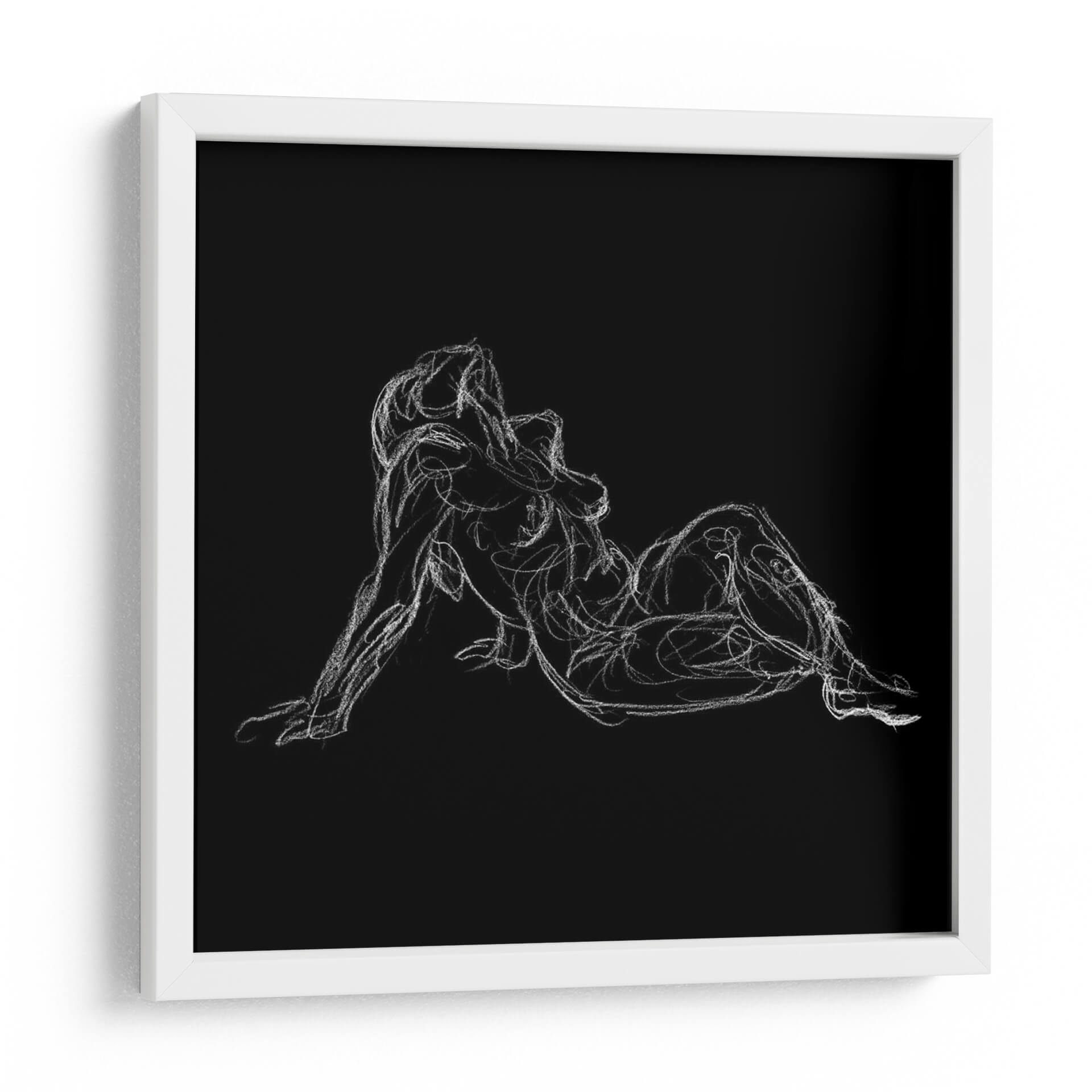 Sumérgete en la expresión artística de "Estudio De La Figura Sobre Negro Iii" de Charles Swinford, una obra que redefine la elegancia a través de trazos audaces y contrastes dramáticos. Esta pieza evoca una sensación de intimidad y movimiento, capturando la esencia de la forma humana con una simplicidad cautivadora. El fondo negro profundo actúa como un lienzo para la figura delineada en trazos blancos, creando un efecto visual impactante que atrae la mirada y fomenta la contemplación. La técnica sugiere una rápida captura de la pose, llena de energía y fluidez, propia del estudio del desnudo artístico. Es una obra ideal para quienes buscan añadir un toque de sofisticación contemporánea y profundidad a sus espacios. Perfecta para un estudio, una sala de estar moderna o un dormitorio con un diseño vanguardista, este cuadro decorativo se convierte en un punto focal que invita a la reflexión y añade carácter a cualquier ambiente. La calidad de la línea y la composición minimalista la hacen versátil, complementando estilos decorativos diversos sin dominar el espacio. Su fuerza reside en la delicadeza y la audacia del trazo, convirtiendo una figura clásica en una declaración de arte moderno.