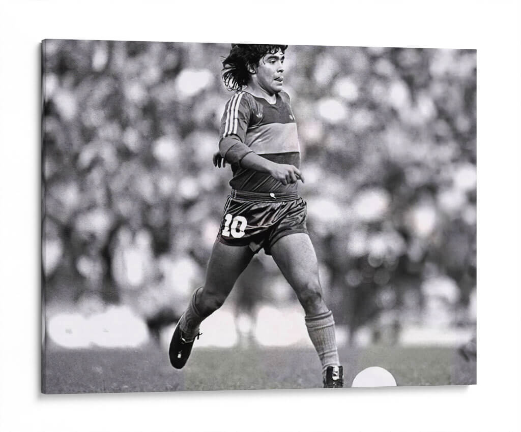 Captura la esencia del fútbol y la leyenda con este evocador cuadro decorativo, "El diez del Boca". Esta obra, inmortaliza un momento icónico de pasión deportiva, presentando a un jugador en pleno movimiento, con la mirada fija en el balón. La composición dinámica y la iluminación dramática, aunque en blanco y negro, resaltan la energía y la concentración del deportista. Los tonos grises y el contraste acentuado crean una atmósfera intensa y nostálgica, perfecta para evocar la emoción de un partido inolvidable. Este cuadro decorativo es ideal para los amantes del fútbol, coleccionistas y para aquellos que buscan añadir un toque de espíritu competitivo y admiración por los ídolos a sus espacios. Su estilo, que bebe del realismo fotográfico, lo convierte en una pieza versátil que puede complementar desde una sala de estar moderna hasta un estudio o una oficina con temática deportiva. "El diez del Boca" no es solo una imagen, es un tributo a la habilidad, la determinación y la gloria del deporte rey, invitando a la contemplación de la grandeza y la pasión que define a los verdaderos campeones. Añade esta pieza única a tu colección y revive la magia del fútbol en tu hogar u oficina, inspirando cada día la fuerza de voluntad y el espíritu de superación.