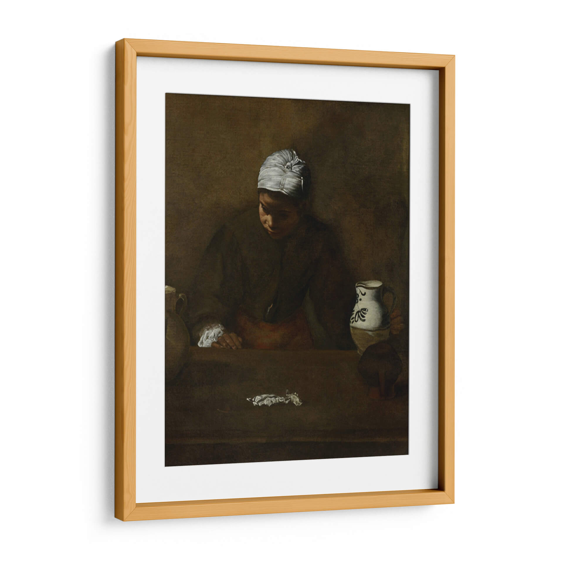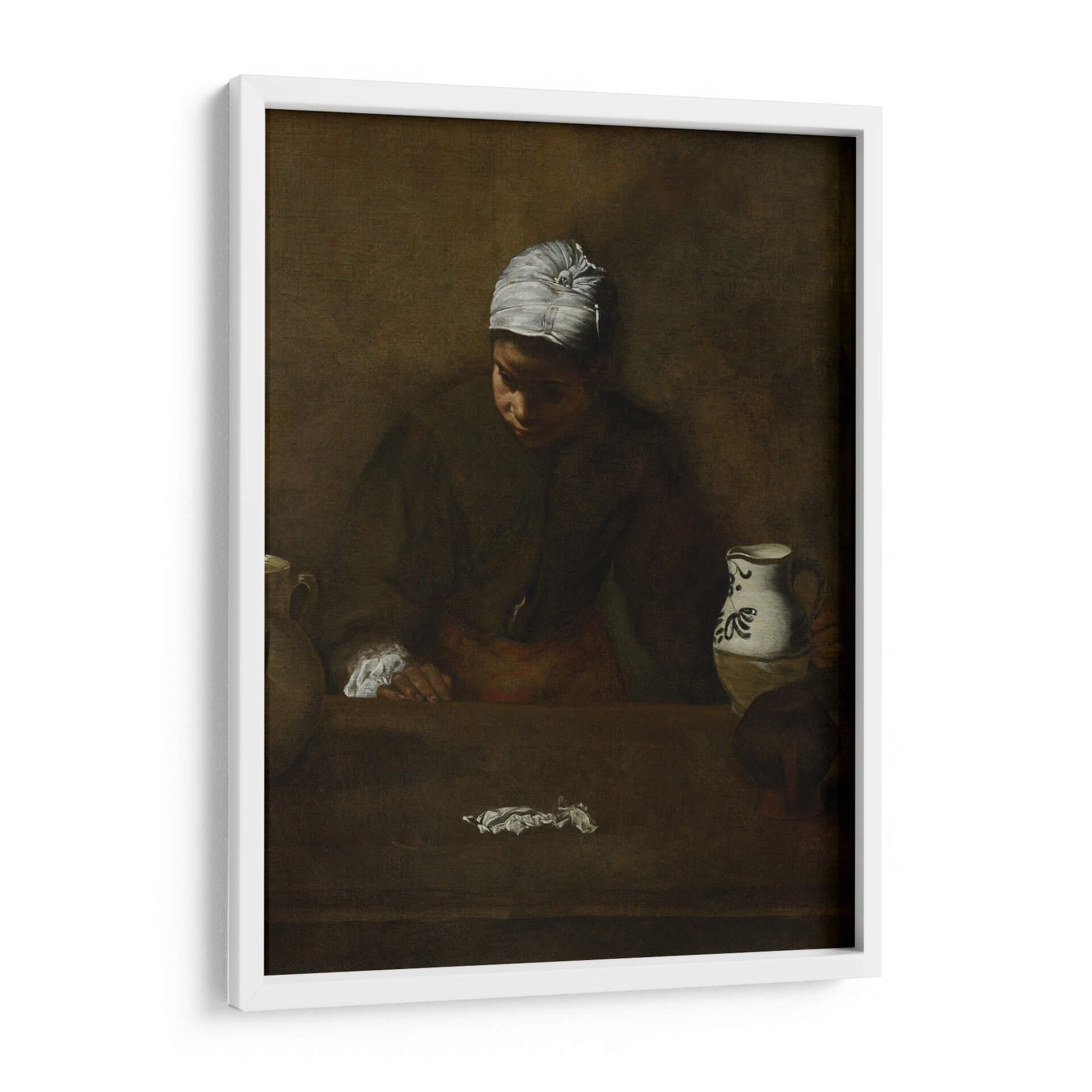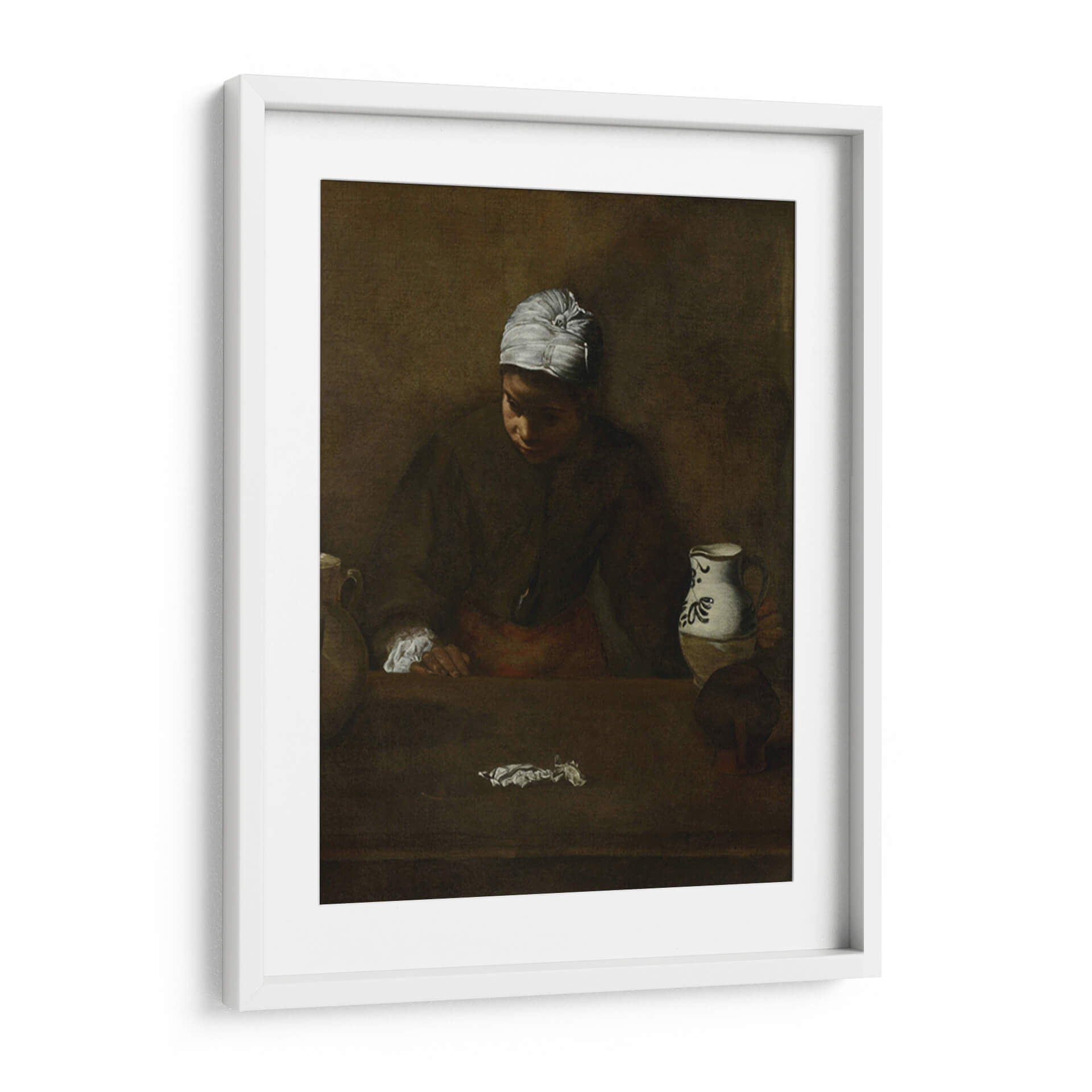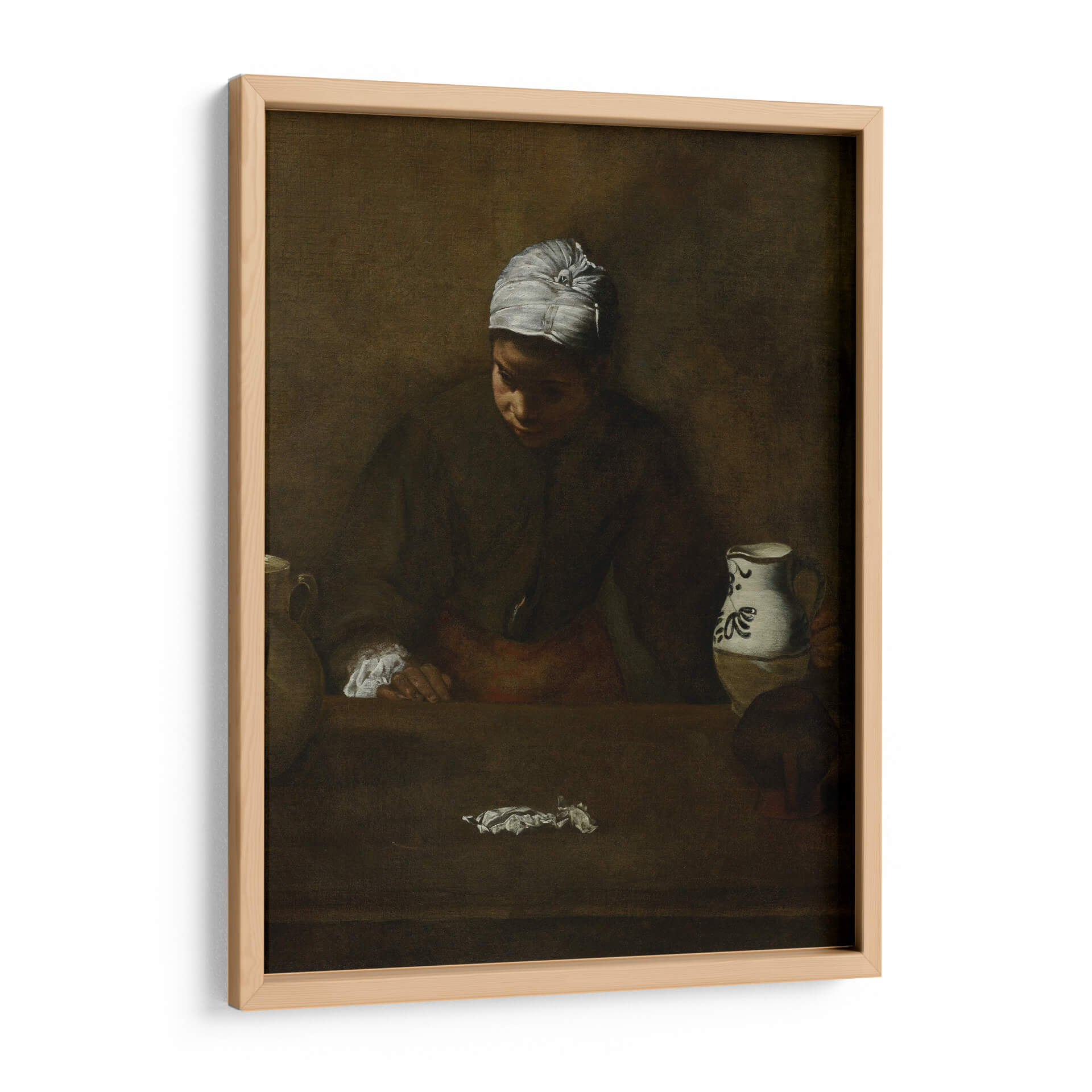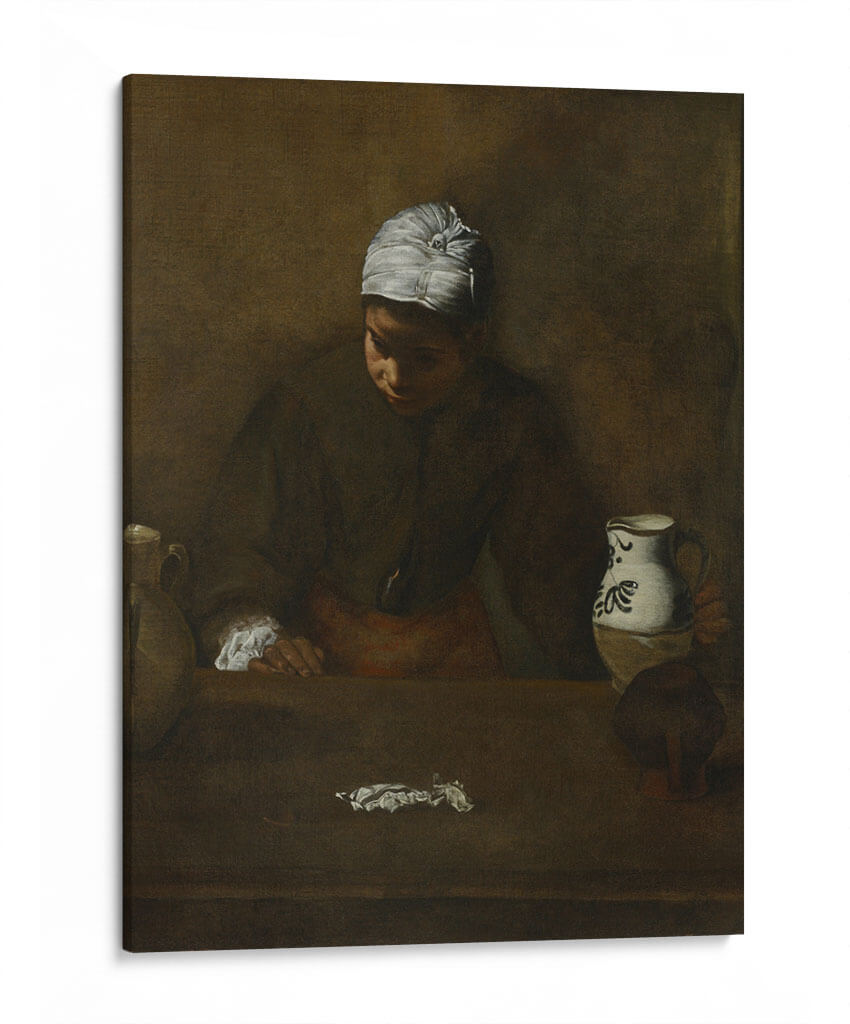 Transforma tu espacio con la obra maestra 'Ayudante de cocina' de Diego Velázquez, una pieza que evoca la intimidad y la serenidad de la vida cotidiana. Este cuadro decorativo captura un momento de quietud, centrándose en la figura de una joven con un tocado blanco, inmersa en sus labores. La paleta de colores terrosos y oscuros crea una atmósfera de profundidad y calidez, realzada por sutiles contrastes de luz que modelan las formas y otorgan un realismo palpable a la escena. La composición, con los elementos dispuestos de manera equilibrada, invita a la contemplación, mientras que los detalles como las jarras y el paño sobre la mesa añaden texturas y narrativas visuales. Es una adición perfecta para quienes buscan infundir a sus hogares u oficinas un toque de clasicismo y elegancia atemporal. Ideal para salones, comedores o estudios que deseen una pieza de conversación rica en historia y sentimiento. Este lienzo clásico es más que una simple decoración; es una ventana a un momento congelado en el tiempo, cargado de significado y belleza silenciosa, listo para inspirar y embellecer tu entorno.