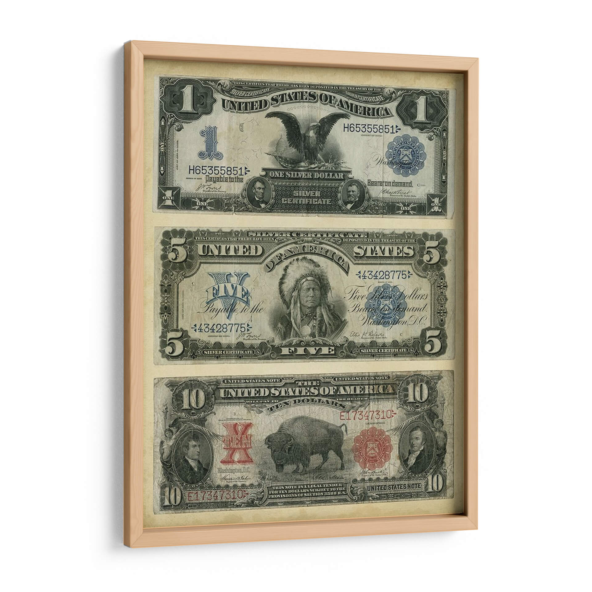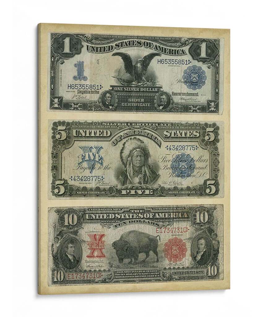Adéntrate en la historia financiera con este cautivador cuadro decorativo 'Moneda Antigua Vi'. Esta obra de arte captura la esencia de los billetes históricos de Estados Unidos, presentando un collage de diseños emblemáticos que evocan nostalgia y un profundo sentido de herencia. La pieza destaca por su rica paleta de colores sepia y detalles intrincados, que transportan al espectador a una época de transacciones significativas y símbolos patrios. El diseño, que combina la majestuosidad de un águila, la dignidad de un líder nativo americano y la robustez de un bisonte, se entrelaza con las cifras distintivas de los billetes de 1, 5 y 10 dólares. Este cuadro es ideal para espacios que buscan un toque de carácter histórico y sofisticación, como estudios, oficinas o salas de estar con un estilo clásico o ecléctico. Transforma tu pared en una ventana al pasado con esta pieza única que combina arte, historia y diseño de manera magistral. Es una adición perfecta para coleccionistas o para aquellos que aprecian la estética de la moneda antigua y su valor cultural.
