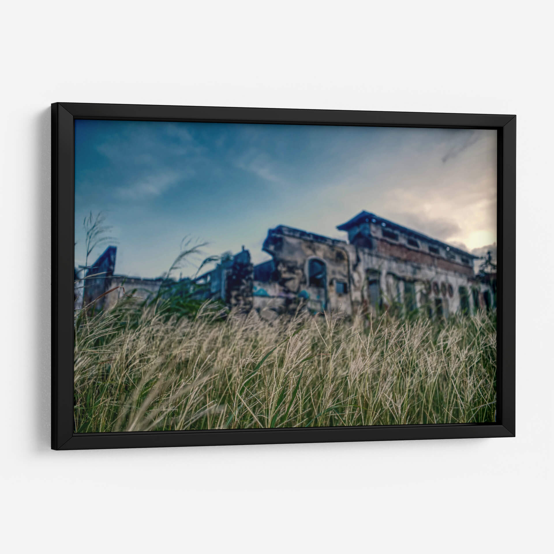 Sumérgete en la melancólica belleza de "Pasto en el Parque de San Andres", una obra de arte que captura la esencia de la naturaleza reclamando estructuras olvidadas. La composición presenta una pradera de pastos altos y esbeltos en primer plano, sus plumas meciéndose suavemente con la brisa, creando una textura etérea y dinámica. Detrás, las ruinas de un edificio se alzan contra un cielo azul plomizo, con nubes tenues que sugieren un atardecer o un día nublado. La paleta de colores se centra en tonos tierra, verdes apagados y azules celestes, evocando una sensación de paz serena, nostalgia y la fuerza del tiempo. Las texturas rugosas de la arquitectura en ruinas contrastan con la suavidad de los pastos, creando un diálogo visual entre lo construido y lo natural. Este cuadro decorativo es ideal para espacios que buscan un toque de reflexión, historia o un recordatorio de la belleza efímera. Su atmósfera contemplativa lo convierte en una pieza perfecta para estudios, salones o cualquier lugar donde se desee inspirar calma y profundidad. Transforma tu hogar con esta evocadora pieza que invita a la meditación y a la apreciación de la naturaleza y el paso del tiempo.