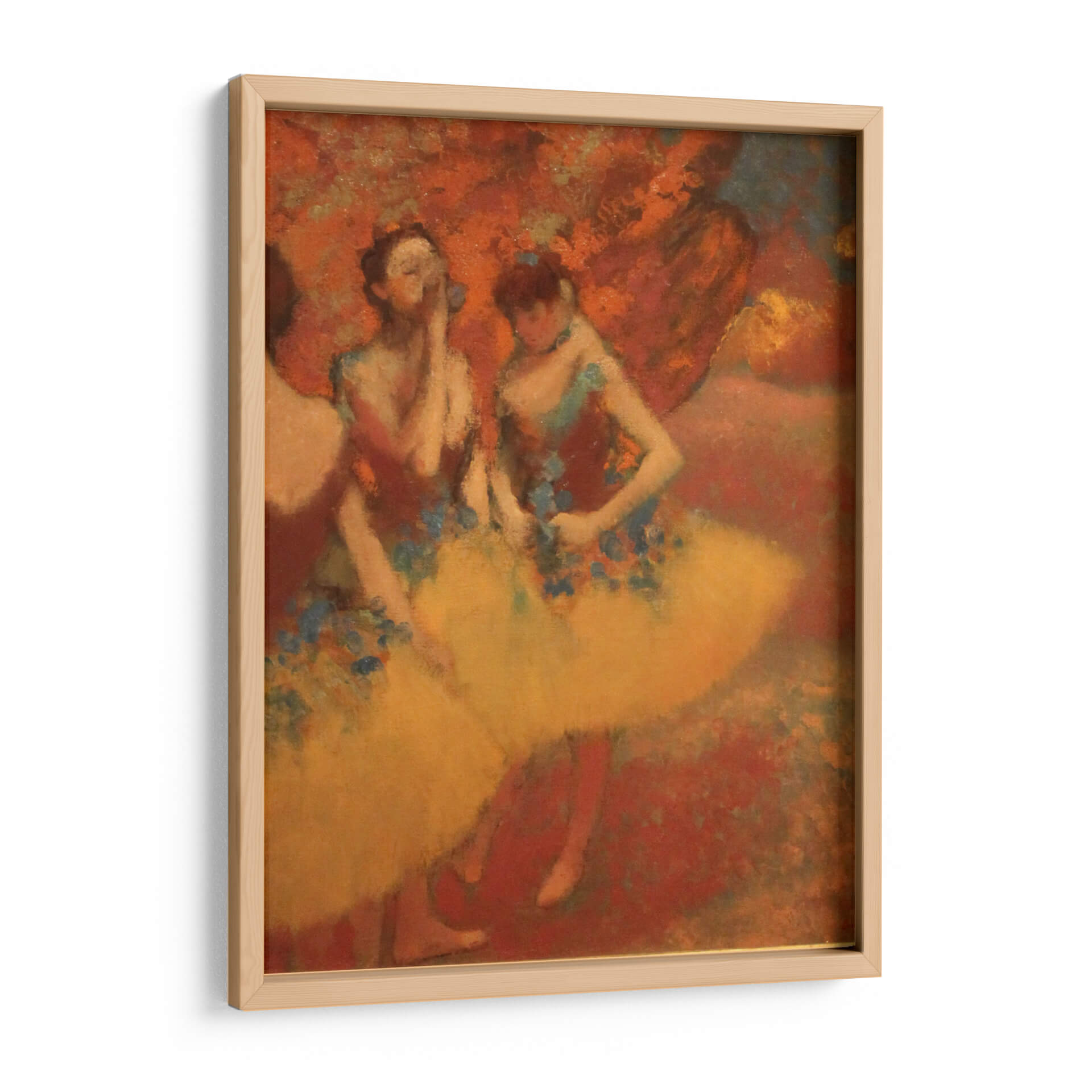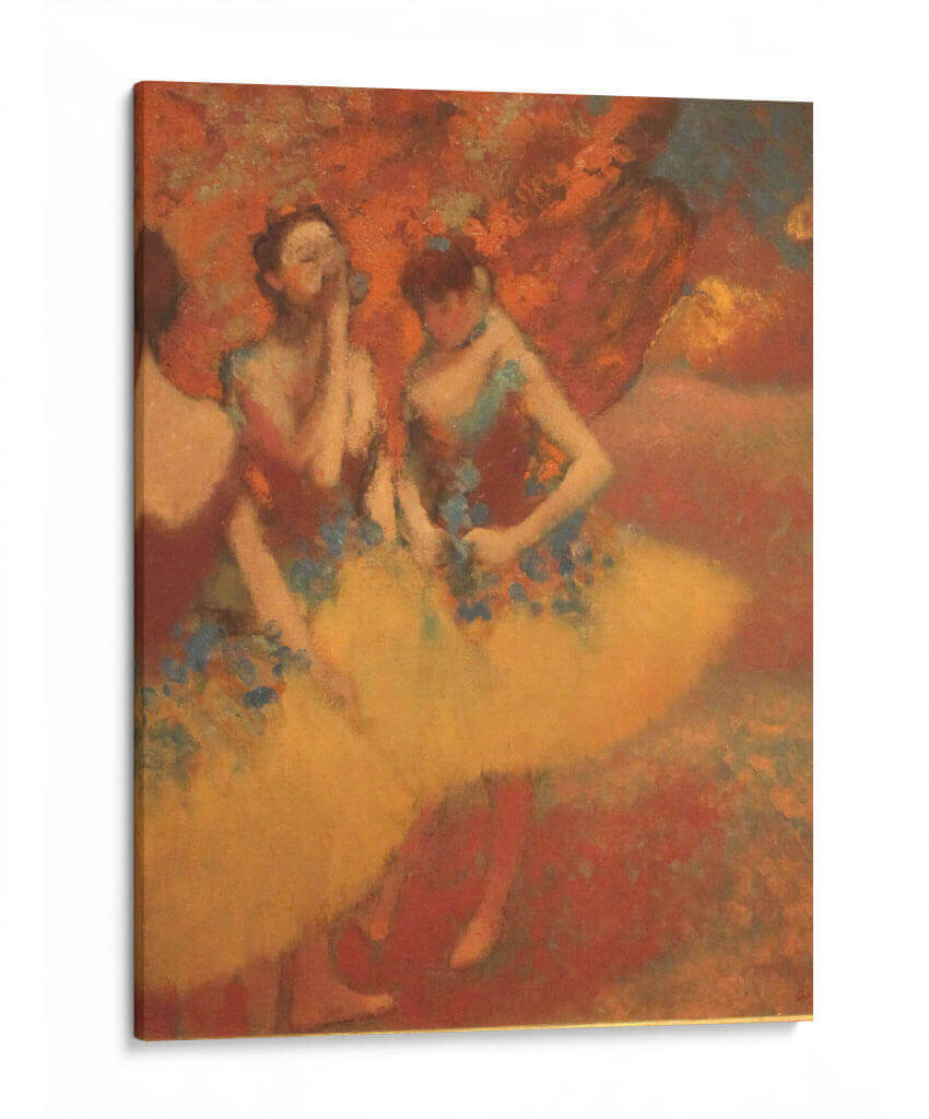Sumérgete en la gracia y el movimiento con este cautivador cuadro decorativo de "Tres bailarinas con faldas amarillas" de Edgar Degas. La obra captura un instante íntimo de tres bailarinas, con sus voluminosas faldas amarillas que irradian luz y vitalidad. La paleta de colores, dominada por cálidos tonos anaranjados y rojizos que contrastan con los azules y verdes de los tutús, crea una atmósfera vibrante y a la vez íntima. El estilo impresionista de Degas se manifiesta en las pinceladas sueltas y la captura de la luz, que dan vida a la escena y transmiten la sensación de movimiento efímero y la emotividad del ballet. Este cuadro decorativo es perfecto para añadir un toque de sofisticación y arte clásico a tu hogar u oficina. Imagina esta pieza como un punto focal en tu sala de estar, aportando energía y elegancia, o como una fuente de inspiración en tu estudio. Su temática de danza y su exquisita ejecución lo convierten en una adición atemporal a cualquier colección de arte decorativo.