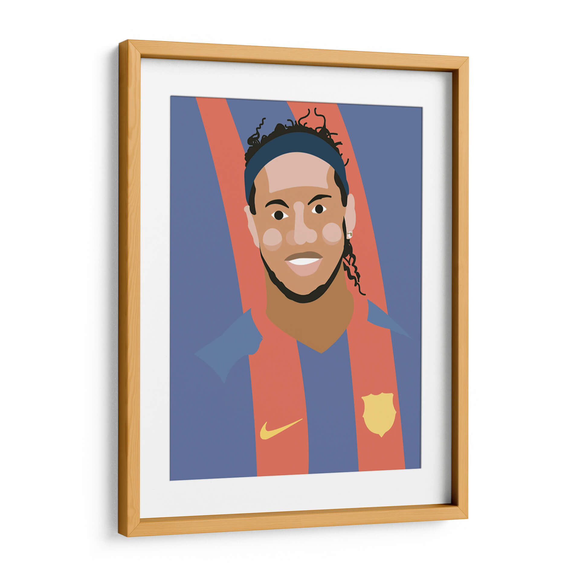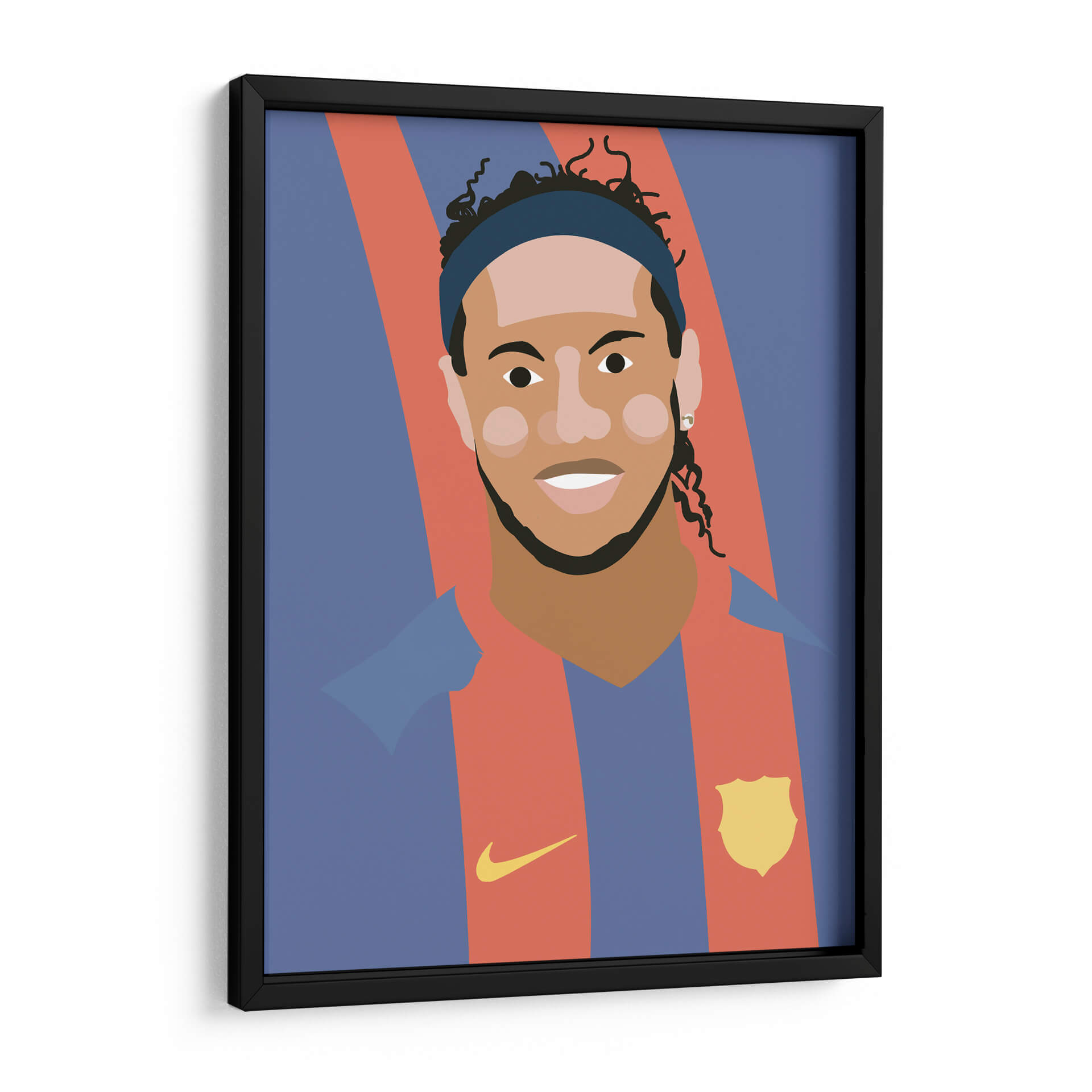 Inmortaliza la energía y el carisma del fútbol con este cautivador cuadro decorativo de Ronaldinho, una obra de arte digital que captura la esencia de uno de los jugadores más icónicos de la historia. El artista Eduardo Hernández presenta un retrato estilizado que va más allá de la simple representación, evocando la alegría y la maestría que caracterizaron la carrera del astro brasileño. La paleta de colores vibrantes, dominada por los icónicos azul y naranja a rayas, junto con el uso de formas geométricas limpias, confiere a la pieza un aire moderno y dinámico. La composición centrada en el rostro sonriente de Ronaldinho, con su característica melena y mirada pícara, irradia confianza y habilidad. Este cuadro decorativo es perfecto para cualquier aficionado al deporte rey o para aquellos que buscan añadir un toque de inspiración y vitalidad a su hogar u oficina. Ideal para salones, estudios o habitaciones temáticas, esta pieza aportará un punto focal lleno de carácter y un recordatorio constante de la magia del fútbol. Una adición imprescindible para coleccionistas y amantes del arte que aprecian la fusión de talento deportivo y expresión artística contemporánea.