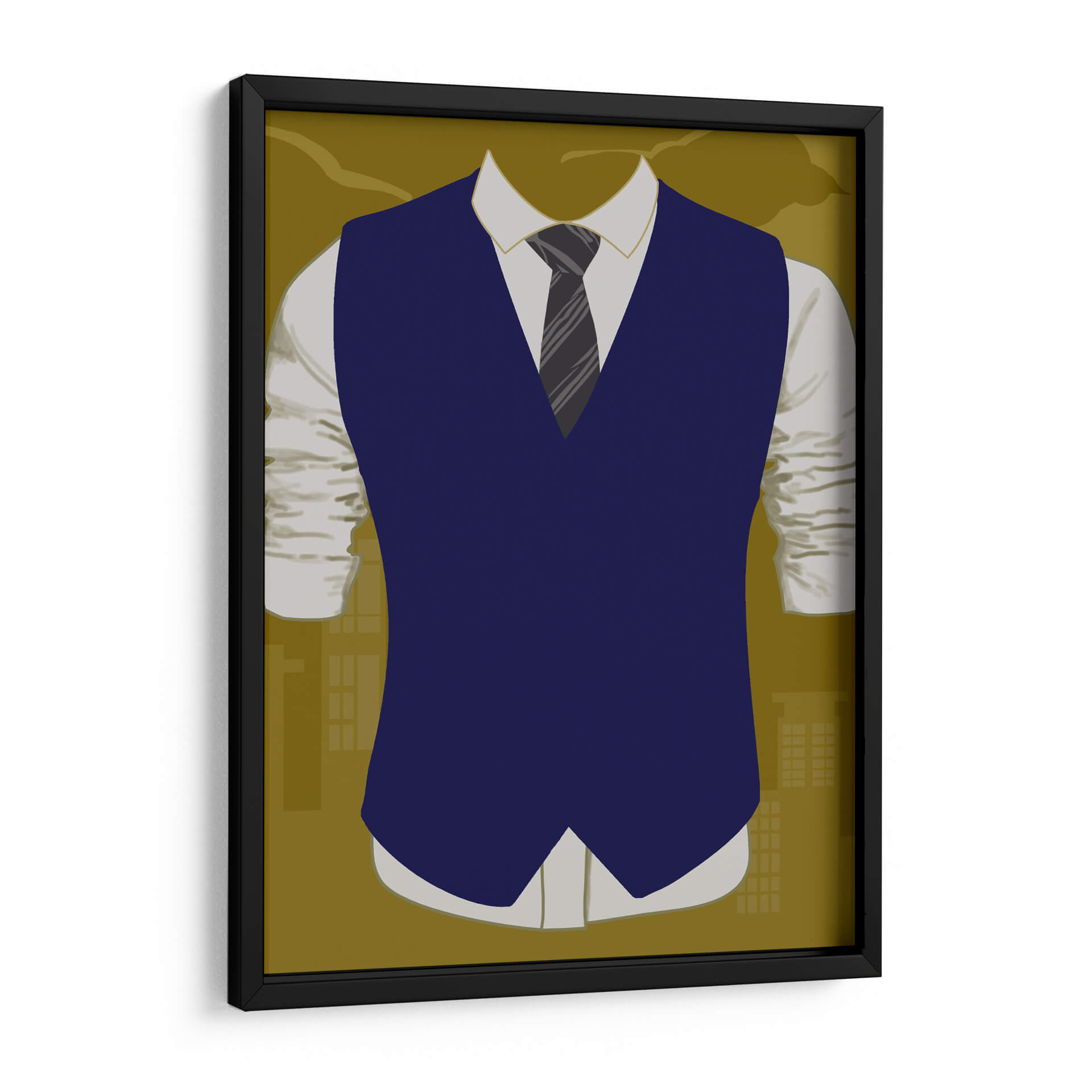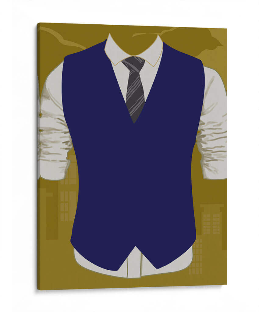 Sumérgete en la elegancia urbana con "Traje en la ciudad", una obra de arte contemporáneo que captura la esencia de la sofisticación moderna. Este cuadro decorativo presenta una figura masculina vestida con un impecable traje azul marino, camisa blanca y corbata a rayas, delineado contra un fondo abstracto de tonos dorados y siluetas urbanas sutiles. La composición minimalista y el uso audaz del color invitan a la reflexión sobre la identidad y la presencia en el bullicioso entorno de la ciudad. La paleta de colores, dominada por el contraste entre el azul vibrante y los tonos terrosos, crea una atmósfera de confianza y estilo, perfecta para aquellos que aprecian el diseño nítido y las declaraciones de moda. Este cuadro es ideal para infundir un toque de refinamiento en tu oficina, sala de estar o cualquier espacio que busque un acento de personalidad contemporánea. "Traje en la ciudad" no es solo una pieza decorativa, sino una invitación a proyectar seguridad y buen gusto en cada rincón de tu hogar u oficina, convirtiéndose en un punto focal que inspira y define tu estilo.