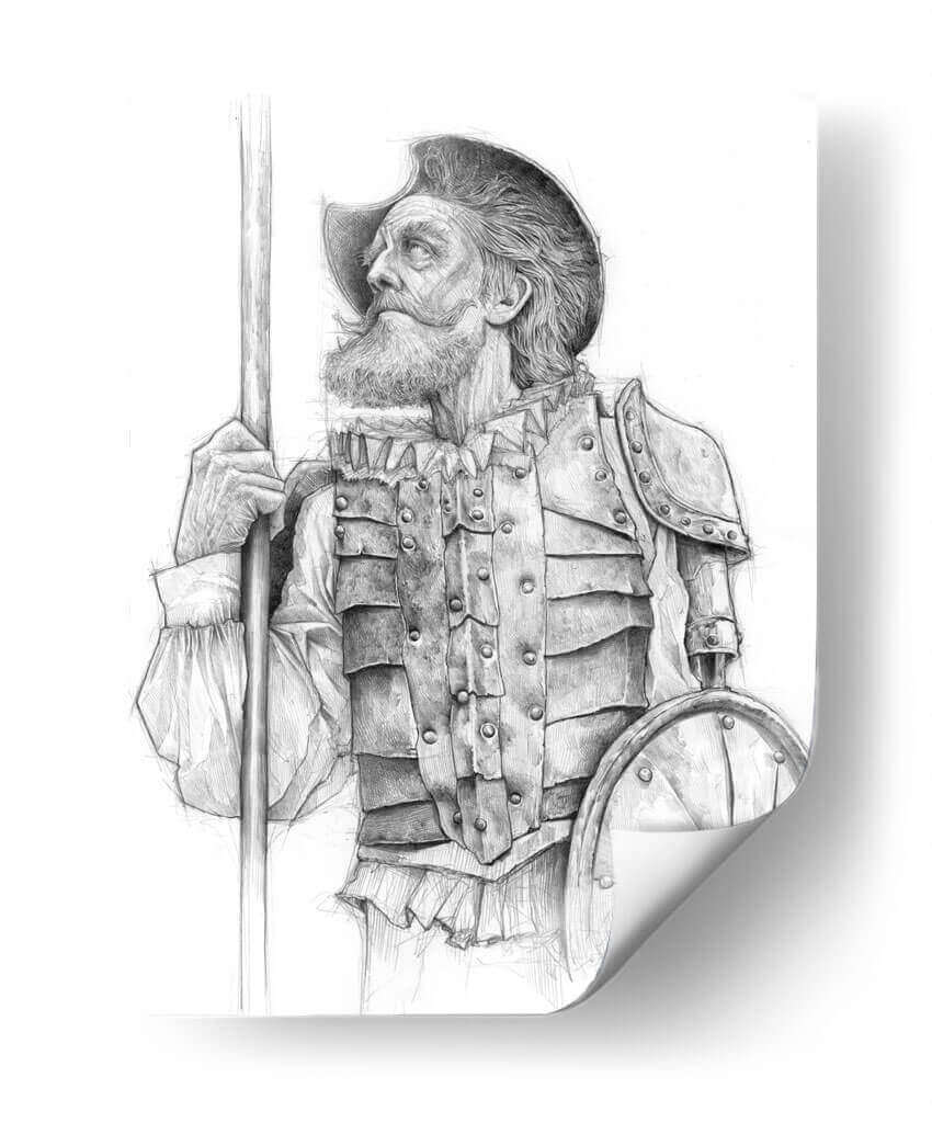 Sumérgete en la fuerza y la historia con este cautivador cuadro decorativo de Efraín Malo, titulado 'Img472'. Esta obra maestra en grafito captura la esencia de un caballero con armadura, portando lanza y escudo, con una mirada que evoca determinación y experiencia. El detallado trabajo en lápiz resalta la textura de la armadura, la nobleza en el rostro del personaje y el movimiento sugerido de sus ropajes, creando una pieza de arte que trasciende el tiempo. La paleta de colores monocromática, sutilmente matizada por los tonos del grafito, aporta una elegancia atemporal y una profundidad visual impresionante. Este cuadro decorativo es perfecto para quienes buscan añadir un toque de carácter, historia y sofisticación a sus espacios. Ideal para ubicar en un estudio, una biblioteca o una sala de estar, este retrato de guerrero no solo embellece, sino que también inspira conversaciones y admiración, convirtiéndose en el punto focal de cualquier decoración que busque un estilo clásico con un toque contemporáneo. Añade esta pieza única a tu colección y deja que su poderosa presencia transforme tu hogar u oficina.