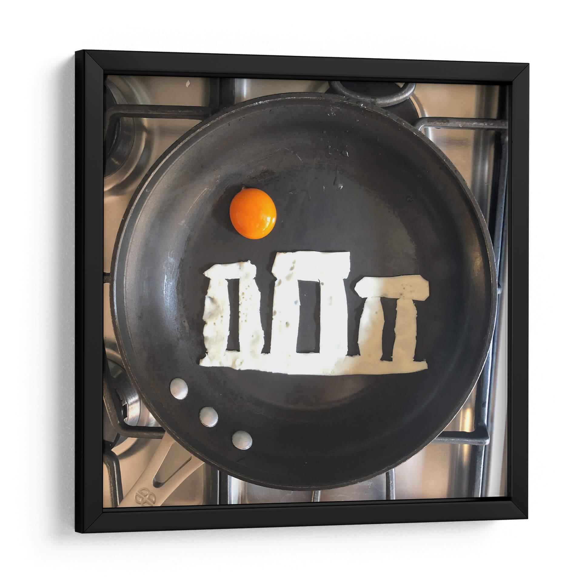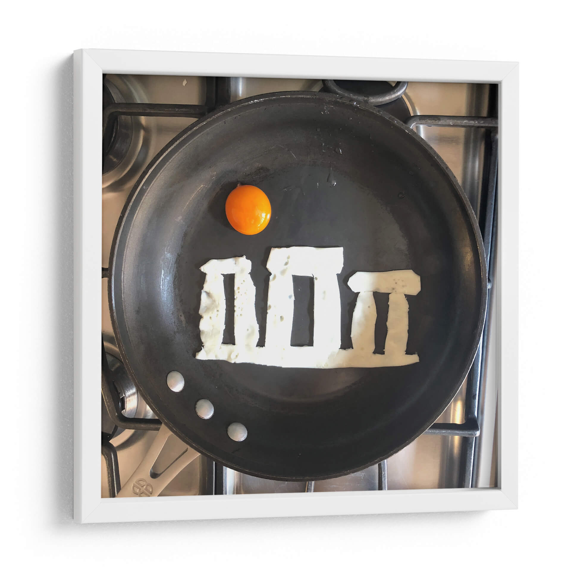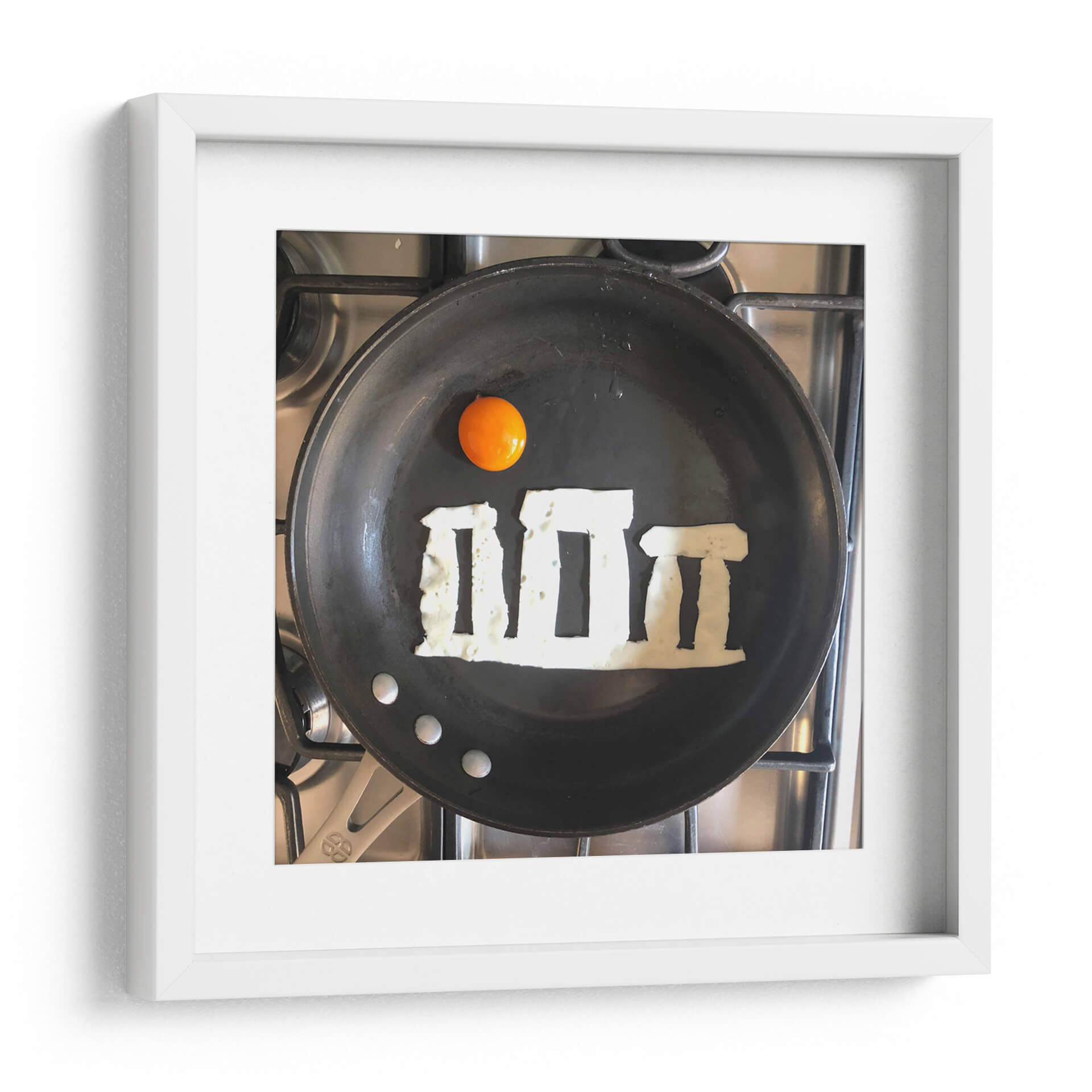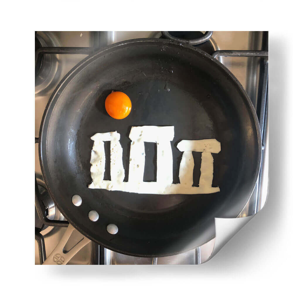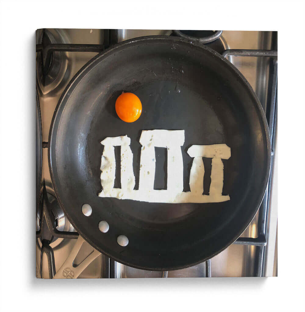 Sumérgete en la creatividad culinaria con "Stonehens", una obra de arte única del artista Eggshibit. Esta pieza captura la icónica formación de Stonehenge recreada ingeniosamente con claras de huevo sobre una sartén, coronada por una vibrante yema de huevo que evoca el sol. Los tonos terrosos y las texturas detalladas de los ingredientes contrastan con la superficie oscura de la sartén y el acero inoxidable de la estufa, creando una composición visualmente intrigante y llena de humor. "Stonehens" es una celebración lúdica de la historia y la gastronomía, fusionando lo antiguo con lo cotidiano de una manera inesperada. Su estilo surrealista y su enfoque minimalista la convierten en una pieza de conversación perfecta para cualquier cocina moderna, comedor o espacio que busque un toque de originalidad y buen humor. Ideal para los amantes del arte, la cocina y aquellos que aprecian un giro creativo en los objetos cotidianos. Añade esta pieza audaz y memorable a tu colección y transforma tu pared en una fuente de inspiración diaria, recordando que la belleza se puede encontrar en los lugares más insospechados.
