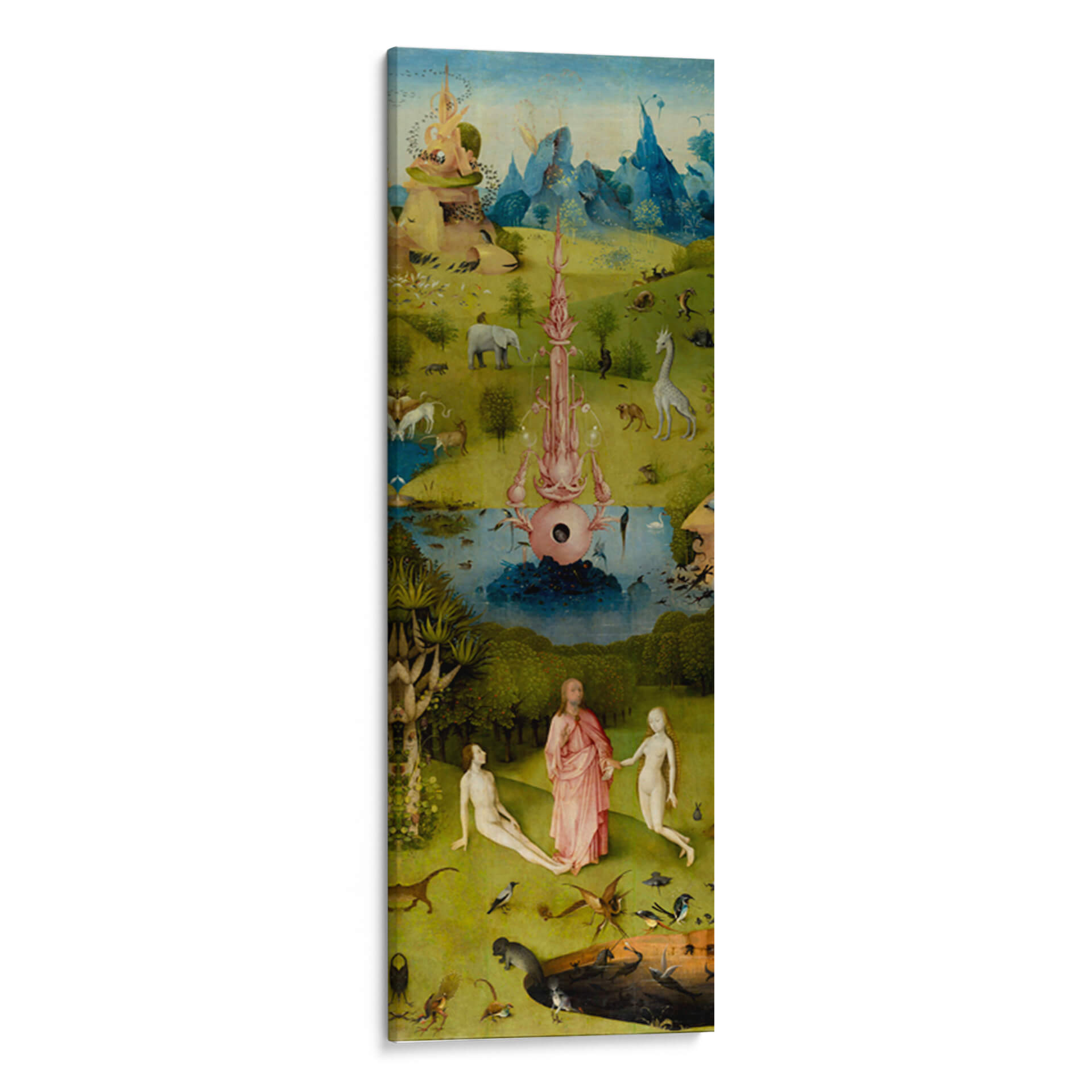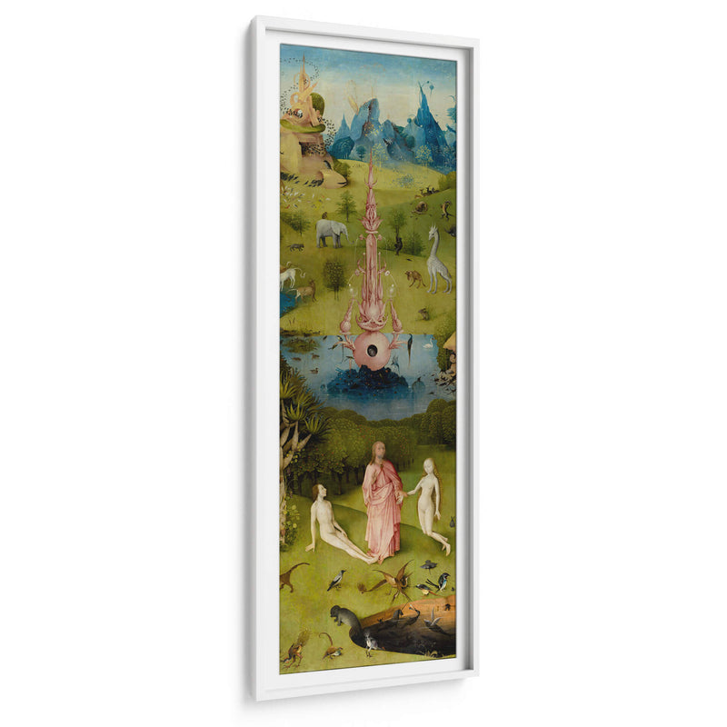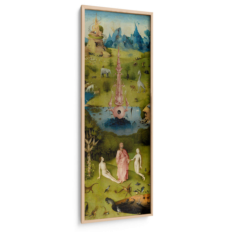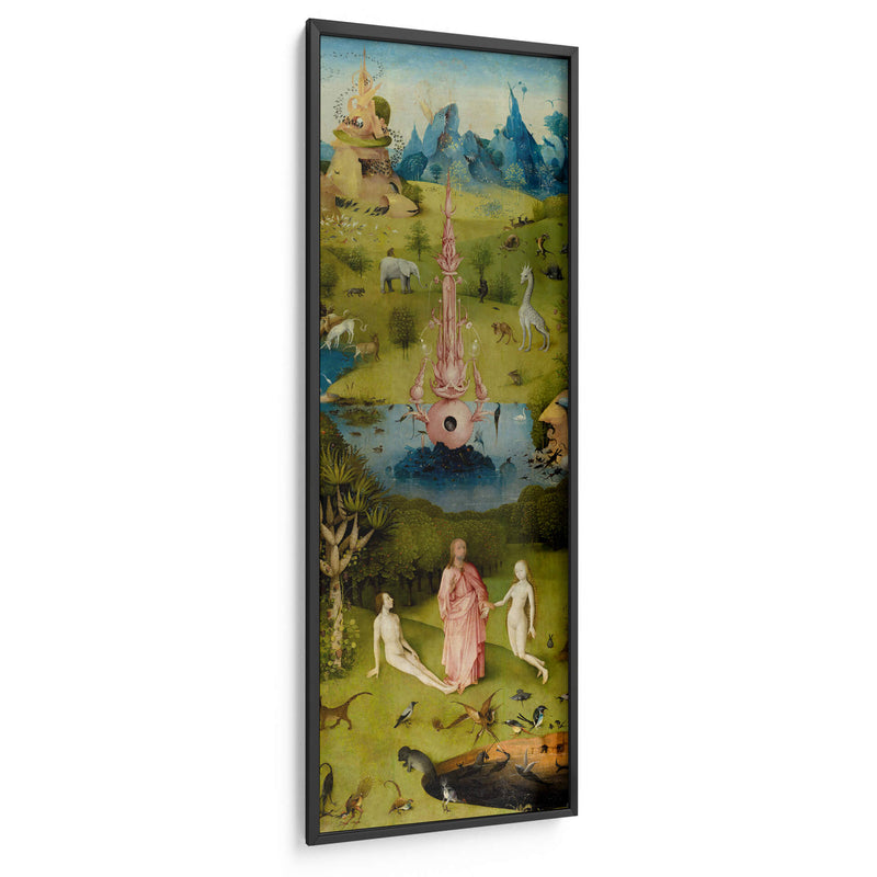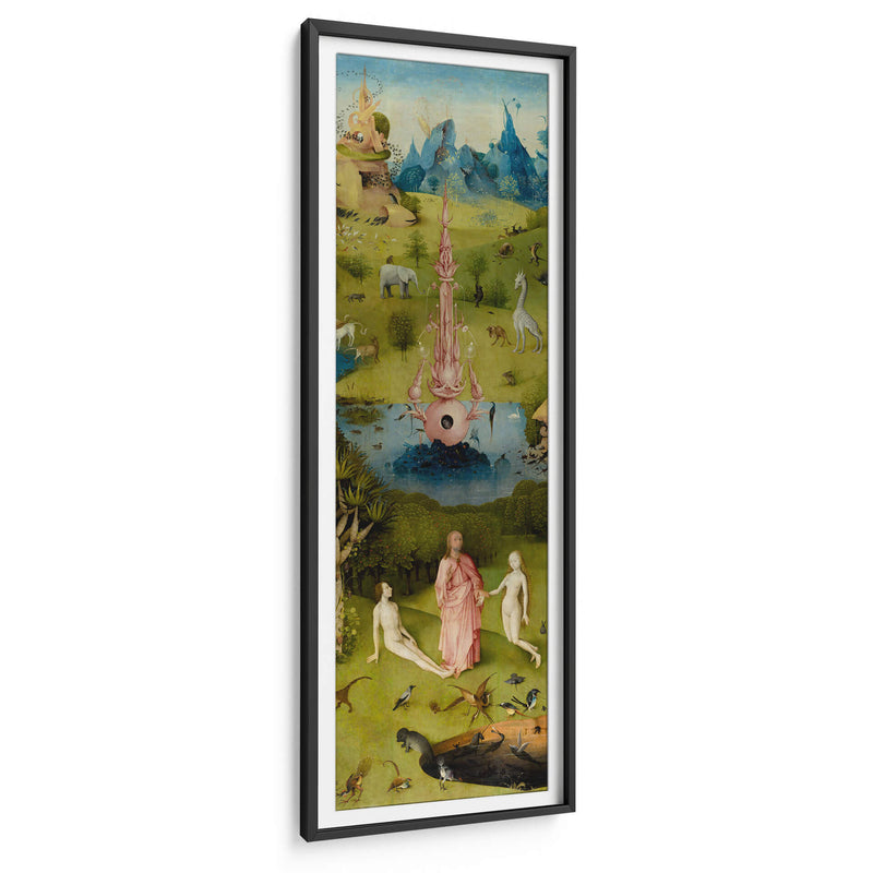 Adéntrate en el enigmático y surrealista 'Jardín del Edén I' del genio El Bosco. Esta obra maestra transporta al espectador a un mundo vibrante y detallado, repleto de simbolismo y criaturas fantásticas que invitan a la contemplación. La paleta de verdes exuberantes, azules celestes y toques vibrantes de color crea una atmósfera onírica, perfecta para aquellos que buscan una pieza de arte decorativo que despierte la imaginación y fomente la conversación. Los elementos visuales, desde las figuras humanas en un paisaje idílico hasta la fauna exótica y las formaciones geológicas inusuales, componen una escena compleja y fascinante. Este cuadro decorativo es ideal para añadir un toque de misterio y sofisticación a tu sala de estar, estudio u oficina, transformando cualquier espacio en una galería personal de arte de renombre. Si buscas una obra que combine historia, arte y una estética única, 'Jardín del Edén I' es una elección inigualable para tu decoración.