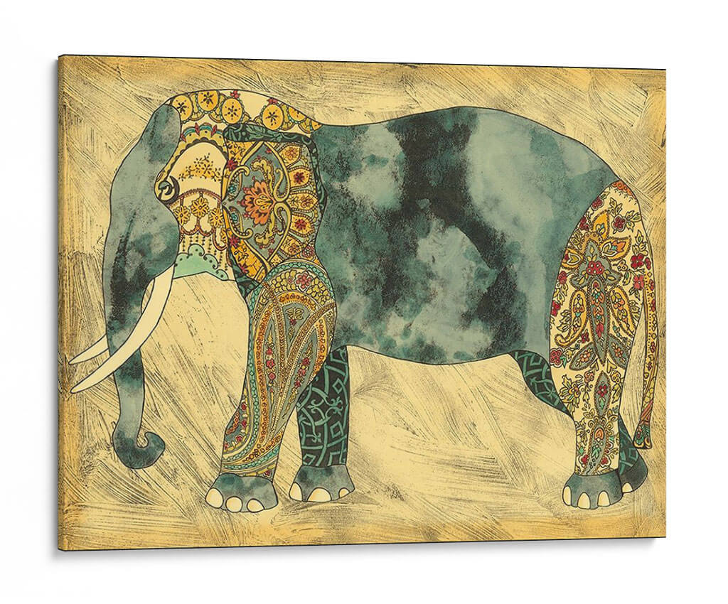 Sumérgete en la majestuosidad y el detalle de 'Elefante Real', una obra de arte contemporáneo que captura la esencia de estos magníficos animales con un toque de fantasía y tradición. La pieza presenta un elefante estilizado, cuya piel se transforma en un lienzo para intrincados patrones paisley y geométricos en tonos vibrantes de azul, ocre, rojo y amarillo. El fondo texturizado, con pinceladas que evocan la calidez de un atardecer o la riqueza de la tierra, complementa la figura central, creando una atmósfera serena pero llena de carácter. La composición, centrada en la imponente figura del elefante, invita a la contemplación y a la admiración de su fuerza y elegancia. Este cuadro decorativo es perfecto para añadir un punto de interés exótico y sofisticado a cualquier espacio, ya sea una sala de estar moderna, un estudio personal o incluso un rincón de meditación. Su estilo único, que fusiona elementos culturales con una sensibilidad moderna, lo convierte en una pieza decorativa excepcional para quienes buscan arte que cuente una historia y transmita una sensación de paz y poder. Ideal para quienes aprecian el arte figurativo con un giro artístico y buscan infundir a su hogar una dosis de espiritualidad y buen gusto.