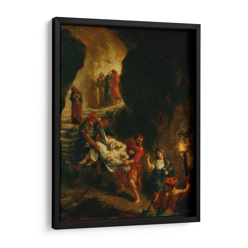 Keywords: Cristo llevado a la tumba, Eugène Delacroix, arte religioso, pintura histórica, arte clásico, romanticismo, obra maestra, cuadro decorativo, arte espiritual, decoración de pared, arte dramático, tonos tierra, luz y sombra, figura central, devoción, solemnidad, arte para el hogar, arte para oficina, pintura de figuras, arte evocador.