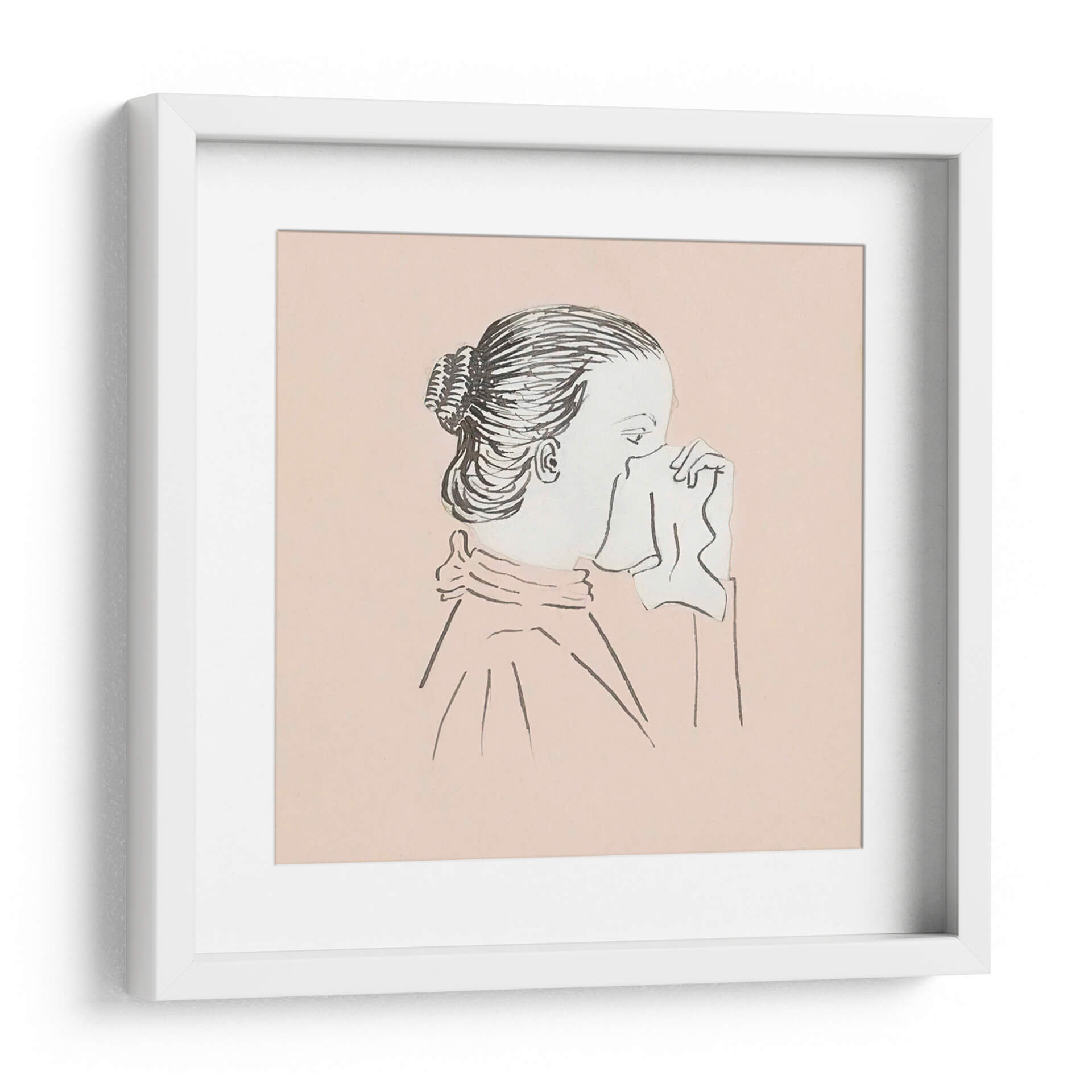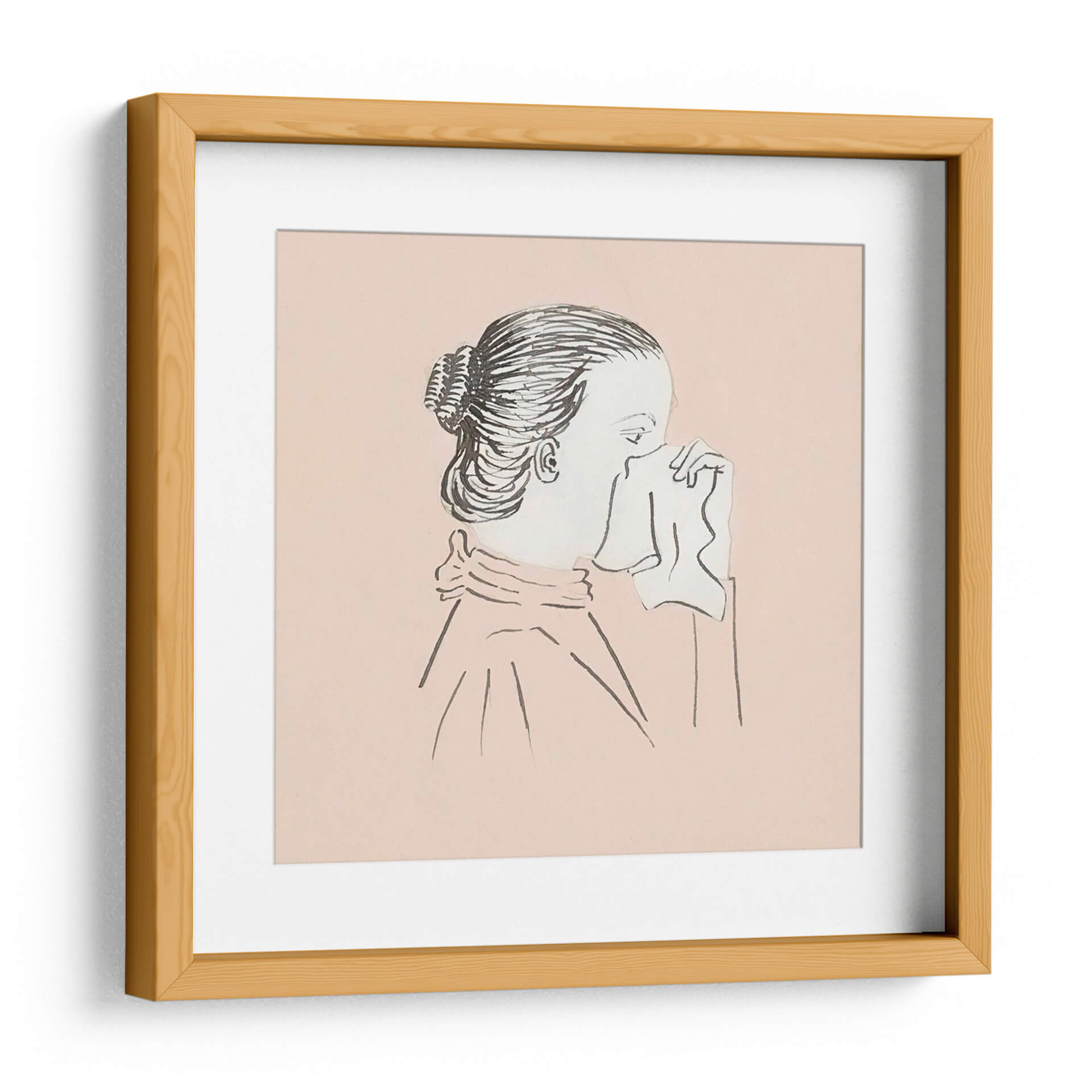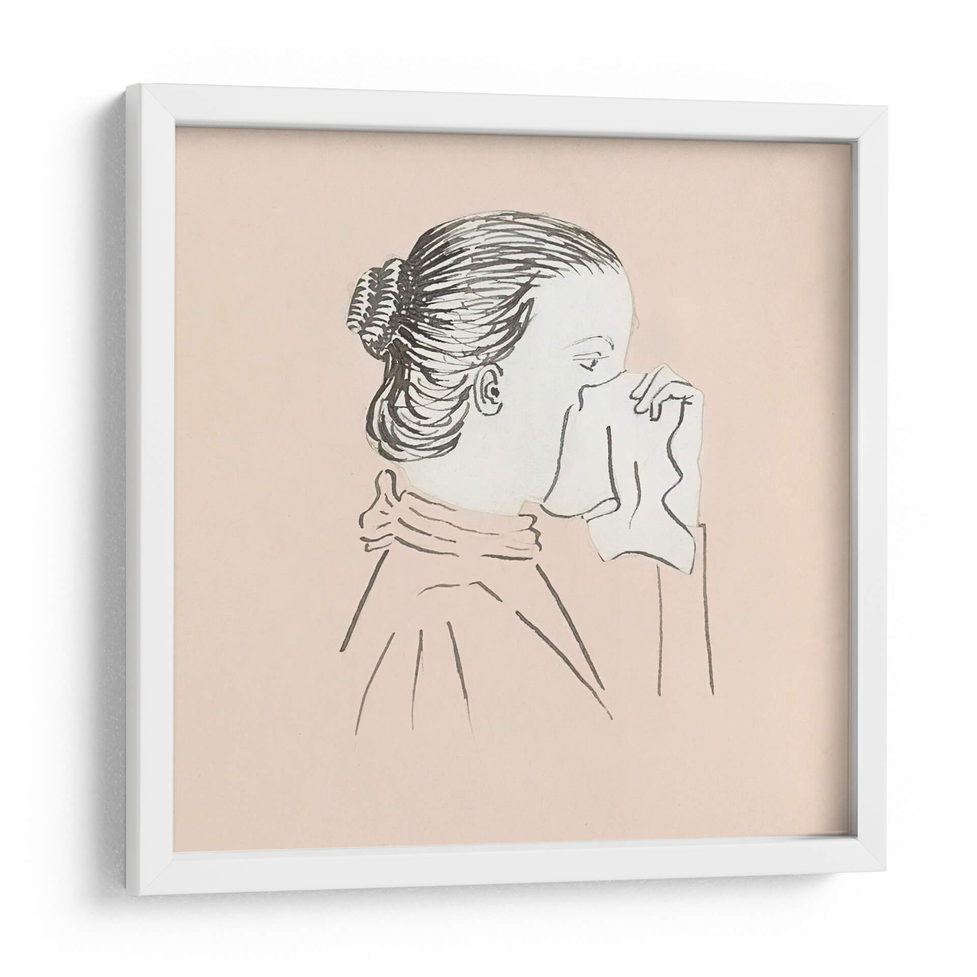 Sumérgete en la delicadeza y el misterio con este cautivador cuadro decorativo inspirado en la obra 'Cabeza de mujer con un pañuelo contra la nariz' de Julie de Graag. Esta pieza, que evoca una atmósfera de introspección y elegancia sutil, presenta un perfil femenino trazado con líneas finas y expresivas sobre un suave fondo color melocotón. La composición minimalista se centra en la figura, capturando un instante de reflexión o quizás un suspiro contenido, sugerido por el pañuelo que oculta parcialmente el rostro. La paleta de colores, dominada por el contraste entre el blanco y negro de la figura y el tono pastel del fondo, crea una sensación de calma y sofisticación. Ideal para añadir un toque de arte contemporáneo y contemplativo a cualquier espacio, este cuadro decorativo es perfecto para salones modernos, dormitorios serenos o incluso como una pieza de acento en una oficina. Su estilo gráfico y su temática evocadora lo convierten en una adición única a tu colección de arte de pared, invitando a la contemplación y al diálogo estético. Descubre la belleza de la simplicidad y la profundidad emocional con este exquisito cuadro decorativo.