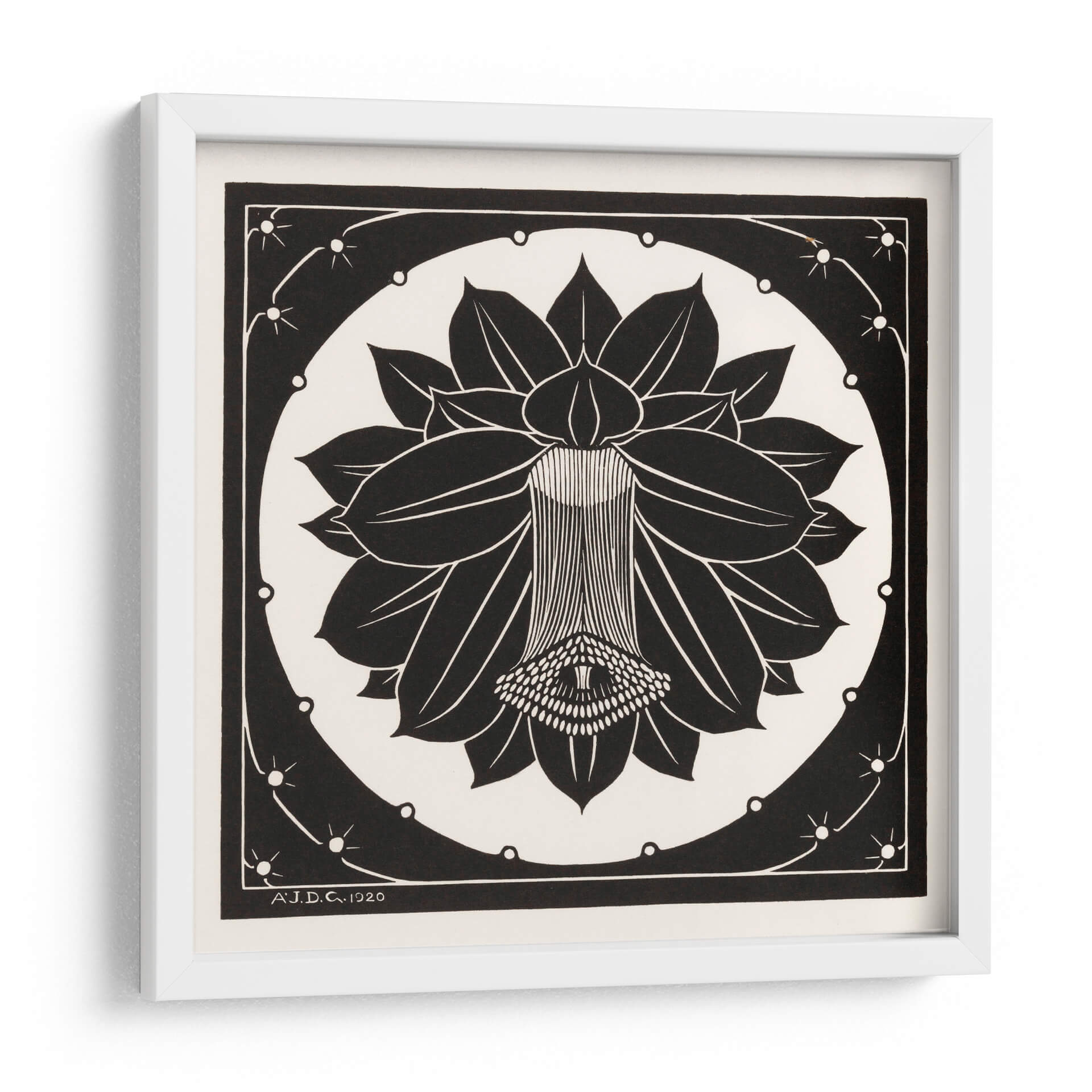 Embellece tu espacio con la elegancia atemporal de "Flor", una obra de arte decorativa que captura la esencia de la naturaleza con un estilo distintivo. Este cuadro, inspirado en la visión de Julie de Graag, presenta una representación gráfica y estilizada de una flor, dominada por un fuerte contraste entre el blanco y el negro. Las líneas limpias y la composición simétrica crean una sensación de orden y sofisticación, mientras que los detalles intrincados en el centro de la flor añaden una capa de interés visual. Ideal para quienes aprecian el arte gráfico y las piezas con un toque clásico y moderno a la vez. Su diseño monocromático lo convierte en una adición versátil, capaz de complementar una amplia gama de decoraciones interiores, desde minimalistas hasta eclécticas. "Flor" es más que un simple cuadro; es una declaración de estilo que aporta calma, belleza y un aire de refinamiento artístico a cualquier habitación, ya sea tu sala de estar, dormitorio u oficina. Descubre cómo esta pieza puede transformar tu hogar en una galería personal.