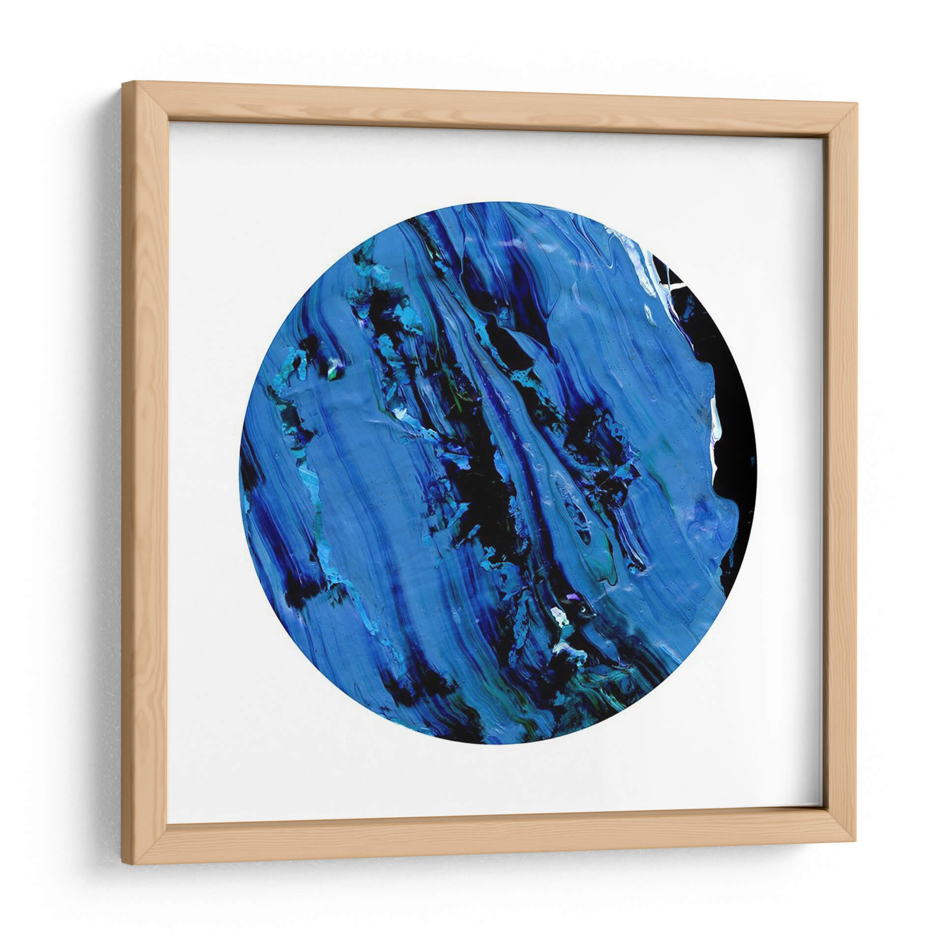 Sumérgete en la profundidad de "Círculo Pinteral En Blanco I", una obra de arte abstracto que evoca la inmensidad del océano o la energía de una nebulosa cósmica. La composición circular presenta pinceladas audaces y texturizadas en vibrantes tonos de azul, que van desde el cerúleo hasta el índigo profundo, contrastando con negros intensos y sutiles toques de blanco y violeta. Este cuadro decorativo contemporáneo, con su estilo dinámico y expresivo, crea una sensación de movimiento y profundidad, invitando a la contemplación. La paleta de colores intensos y la composición abstracta lo convierten en una pieza ideal para añadir un toque de sofisticación moderna a cualquier sala de estar, estudio u oficina. Su diseño circular, enmarcado por un fondo blanco limpio, asegura que la obra sea el punto focal de la habitación, transmitiendo una atmósfera de misterio y elegancia. Perfecto para quienes buscan un arte que impulse la conversación y añada un carácter único a su espacio vital.