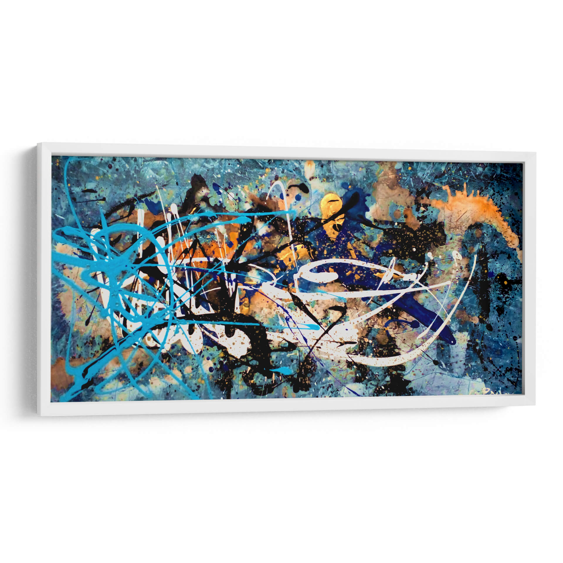 Sumérgete en la vibrante energía de "Sigrid", una obra de arte contemporáneo del aclamado artista Carlos Pixley. Este cautivador cuadro decorativo es una explosión de color y movimiento, con un estilo abstracto que invita a la interpretación personal. La composición se caracteriza por una intrincada red de trazos fluidos y salpicaduras, dominada por una base de tonos azules profundos y turquesas, salpicada con audaces acentos de naranja, blanco y negro. Los detalles dorados dispersos añaden un toque de sofisticación y brillo, creando un contraste dinámico con las profundidades marinas. "Sigrid" no es solo una pieza visual, sino una experiencia emocional que evoca una sensación de caos controlado y vitalidad. Ideal para espacios que buscan un punto focal moderno y lleno de carácter, como salas de estar, estudios o oficinas. Este cuadro decorativo es perfecto para añadir profundidad, textura y un toque de expresionismo abstracto a tu decoración, transformando cualquier pared en una galería personal. Descubre cómo esta pieza puede inspirar conversaciones y reflejar tu gusto por el arte audaz y contemporáneo.