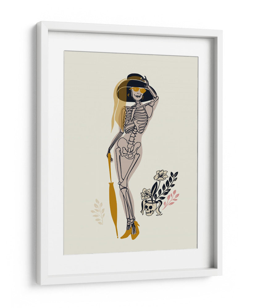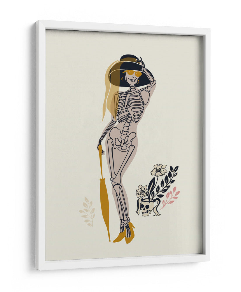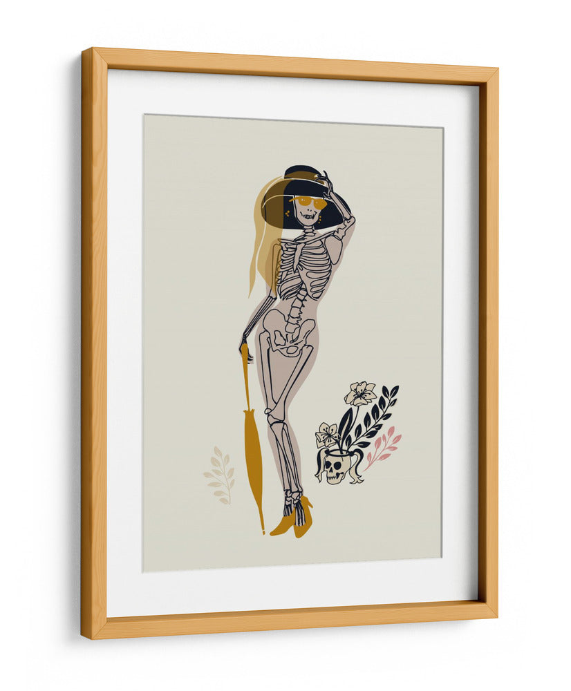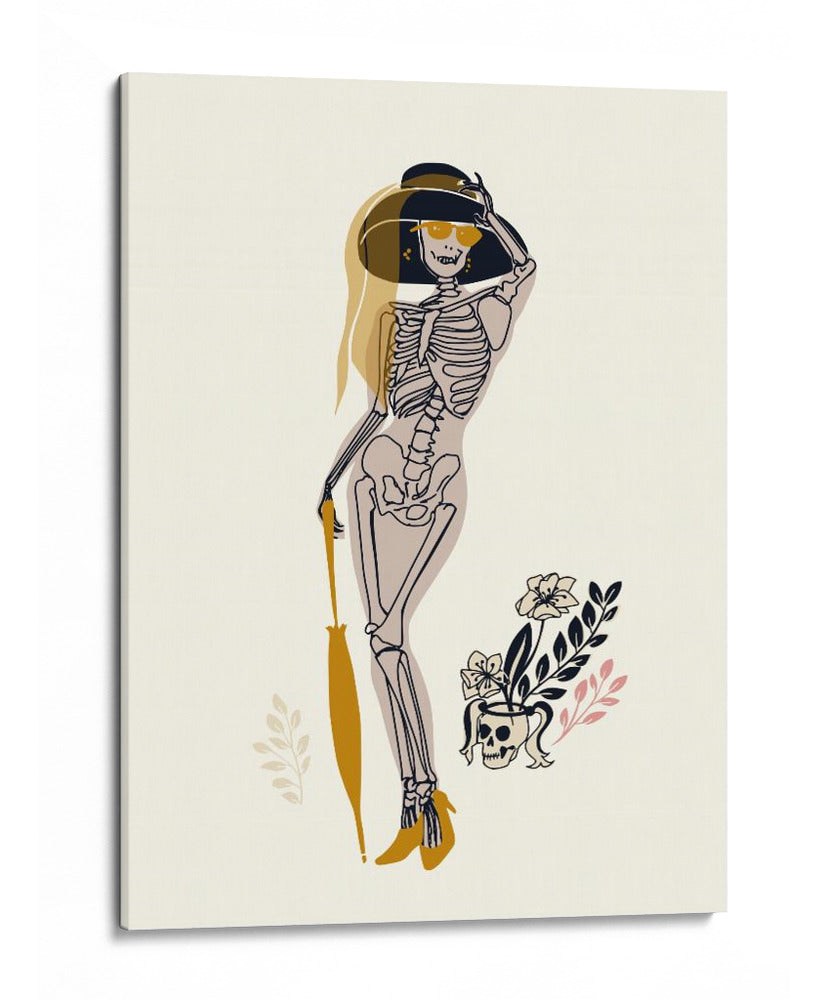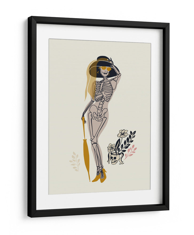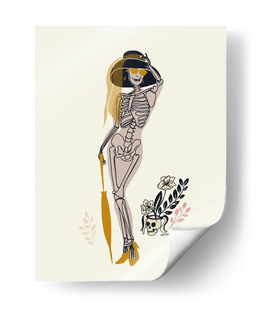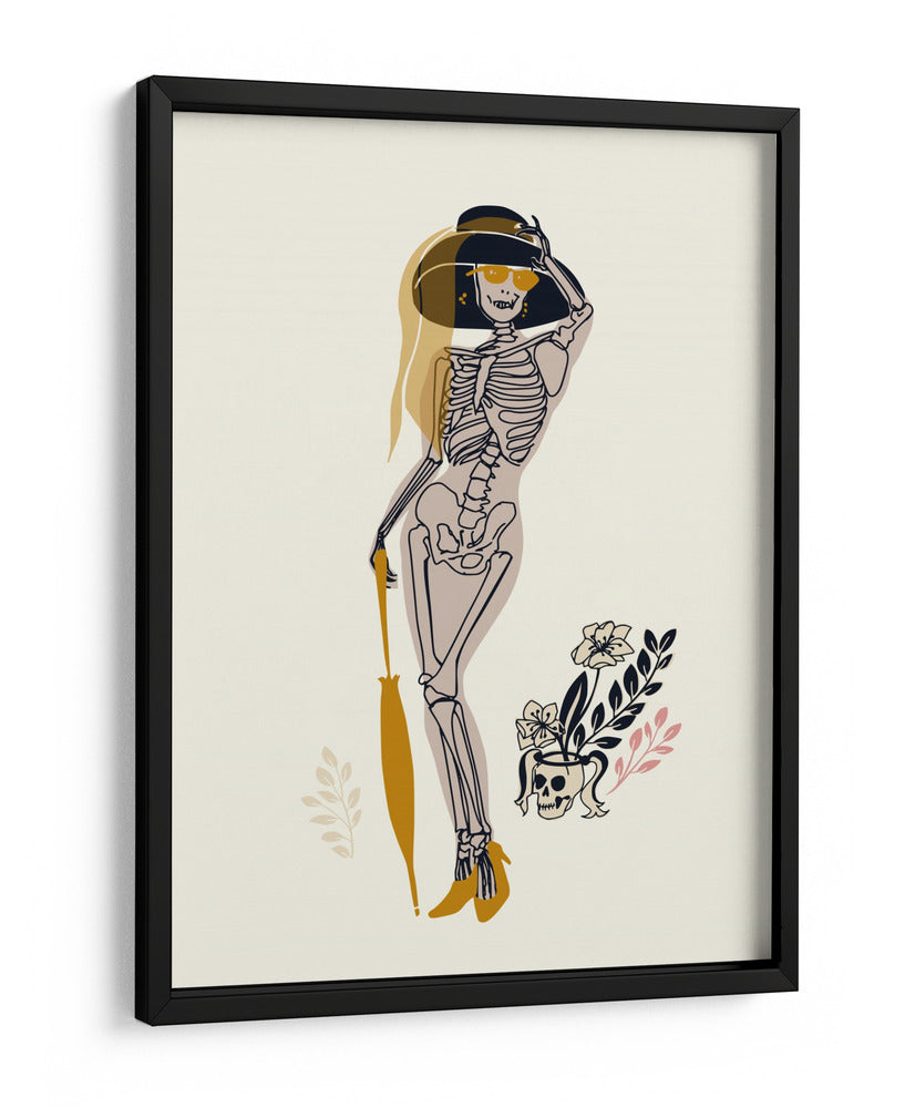 Adéntrate en un universo de estilo y misterio con esta cautivadora ilustración n.° 2 de una fashionista gótica. La obra presenta una figura esquelética elegante, vestida con un sombrero de ala ancha y gafas de sol, que evoca un aire de sofisticación enigmática. La paleta de colores, dominada por tonos neutros y cálidos acentos en mostaza y negro, crea una atmósfera a la vez moderna y atemporal. Los delicados trazos y la composición estilizada de la figura esquelética, junto a un detalle floral que emerge de una calavera, añaden un toque de dualidad entre la vida y la muerte, lo macabro y lo chic. Este cuadro decorativo es ideal para añadir un punto focal intrigante a tu salón, un toque de personalidad a tu dormitorio o un aire de vanguardia a tu espacio de trabajo. Su diseño único y su narrativa visual invitan a la reflexión y a la admiración, convirtiéndolo en una pieza de arte de pared que sin duda generará conversación y admiración en cualquier ambiente contemporáneo que busque un carácter distintivo y audaz. Una elección perfecta para amantes del arte moderno y la estética gótica.
