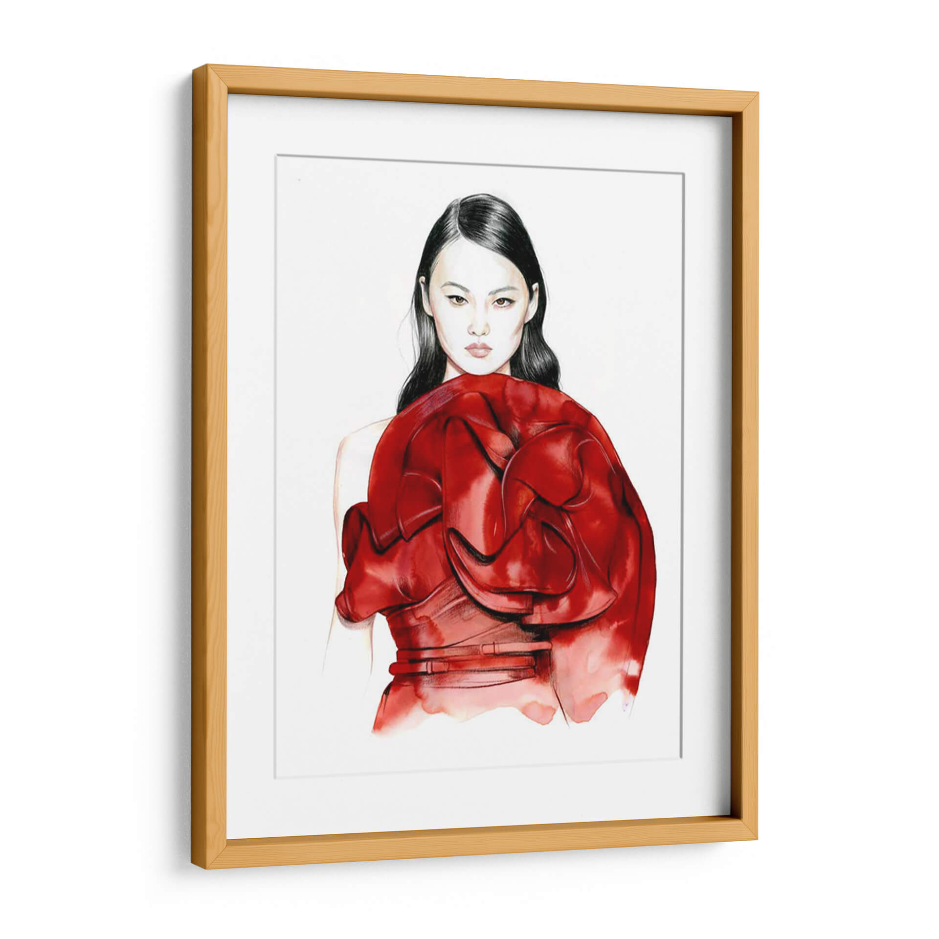 Sumérgete en la sofisticación audaz con este cautivador cuadro decorativo "Olanes Rojos". La obra presenta un retrato estilizado de una mujer asiática, con una expresión serena y una mirada penetrante que capta la atención. Lo que realmente define esta pieza es su voluminoso vestido rojo, que evoca la forma de un pétalo de rosa o una cascada de seda, aportando dramatismo y elegancia. La paleta de colores se centra en el vibrante rojo carmesí, con matices que sugieren profundidad y volumen, contrastando sutilmente con los tonos piel y los trazos delicados del cabello oscuro. La técnica de acuarela o similar, con trazos fluidos y contornos marcados, le confiere un aire de moda y arte contemporáneo. Este cuadro es perfecto para añadir un toque de color y personalidad a salones modernos, vestidores o estudios de moda. Su atmósfera es de confianza y estilo, convirtiéndolo en un punto focal ideal para quienes buscan piezas únicas que expresen audacia y refinamiento. "Olanes Rojos" no es solo una decoración, es una declaración de estilo que embellecerá cualquier espacio con su energía y estética inconfundible. Ideal para inspirar y elevar el ambiente de tu hogar u oficina.