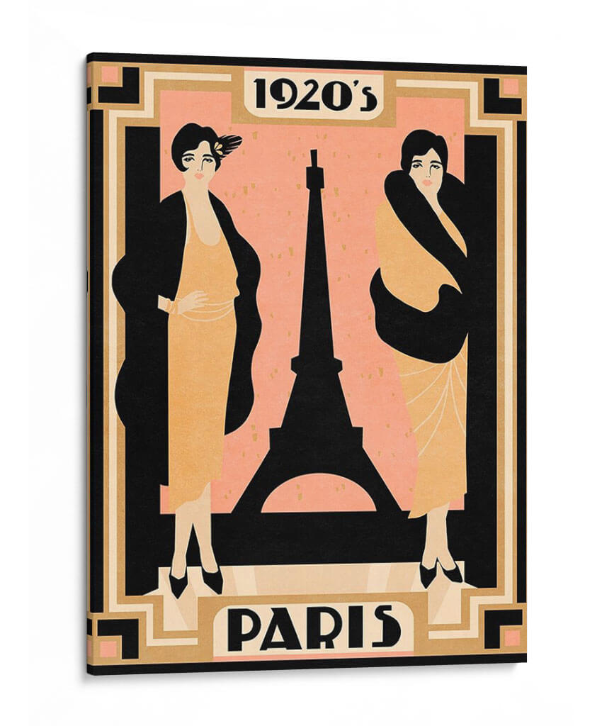Adéntrate en el glamour y la sofisticación de la década de 1920 con este cautivador cuadro decorativo '1920s Paris II'. Esta obra de arte evoca la esencia de una era dorada, presentando a dos elegantes figuras femeninas con atuendos de la época, enmarcando la icónica silueta de la Torre Eiffel. La paleta de colores, dominada por tonos pastel como el melocotón y el beige, combinada con el negro y acentos dorados, crea una atmósfera nostálgica y chic. El estilo Art Decó se manifiesta en las líneas geométricas audaces y la simetría de la composición, aportando un toque de elegancia atemporal. Ideal para quienes buscan añadir un aire de refinamiento y un toque de historia a su hogar u oficina, este cuadro decorativo es perfecto para espacios que buscan un punto focal distintivo y lleno de carácter. Transforma tu pared en una ventana al pasado, evocando el encanto de París en su máximo esplendor.