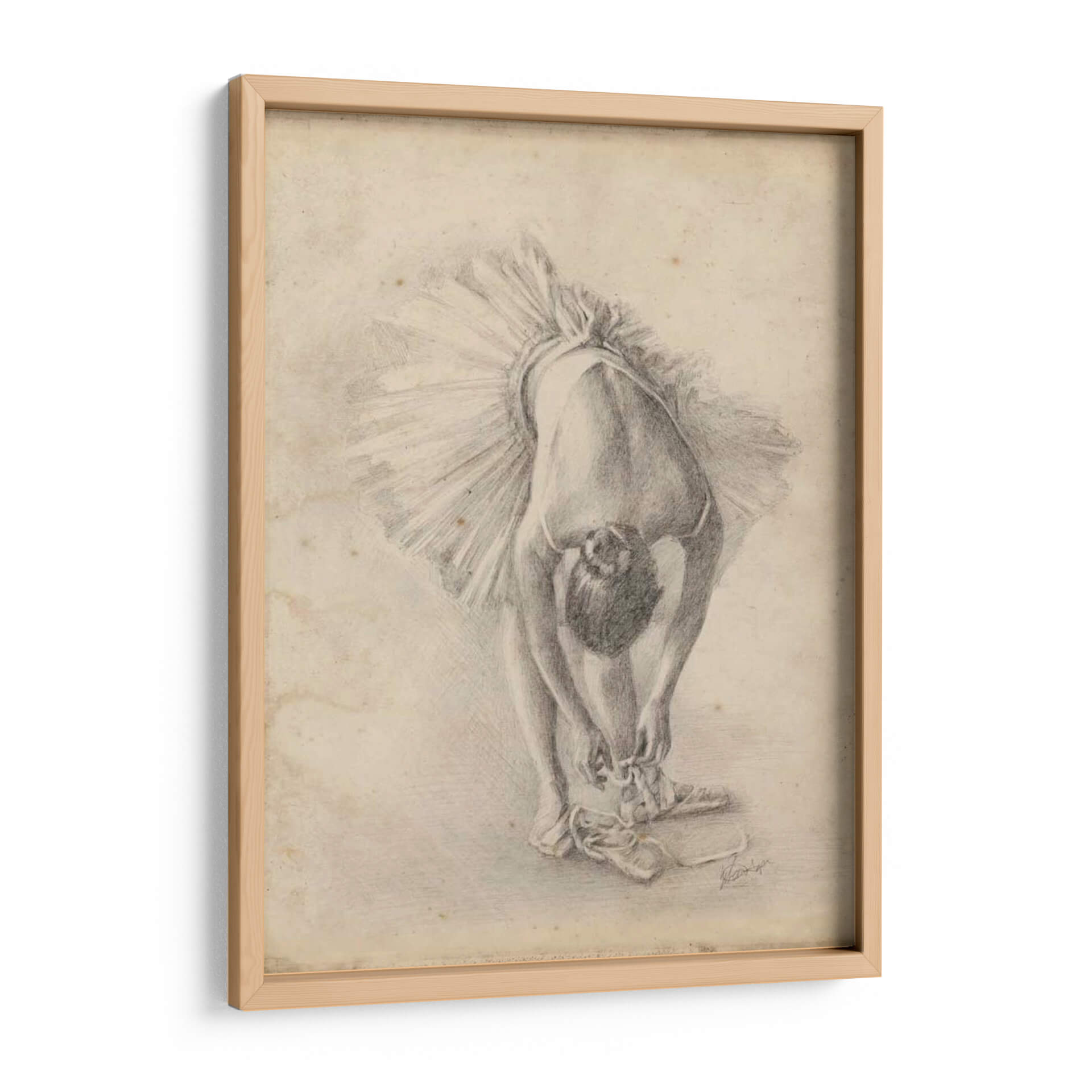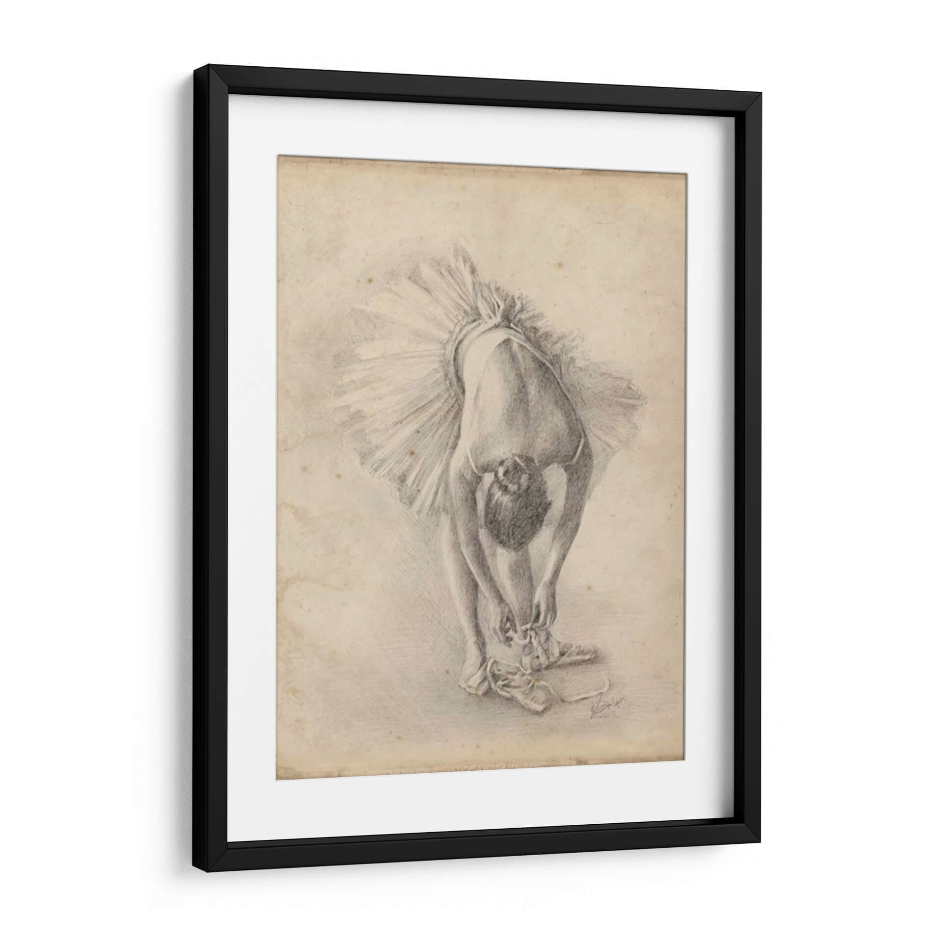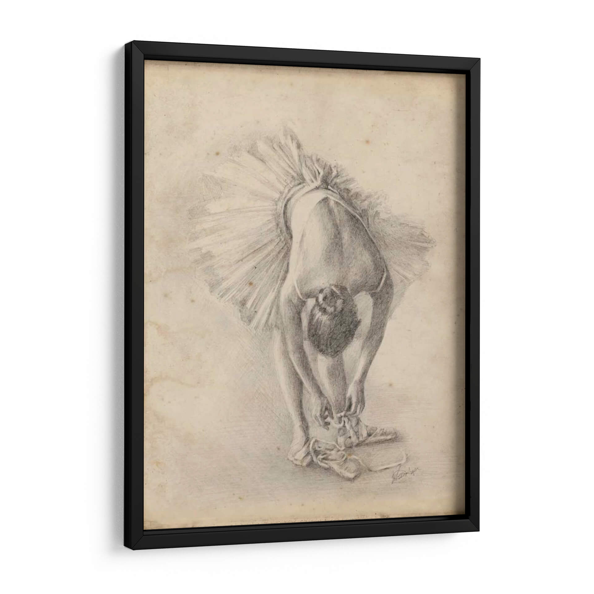 Sumérgete en la delicadeza y el arte de la danza con nuestro cuadro decorativo "Antiguo Bailarina Estudio I" de Ethan Harper. Esta obra maestra captura un momento íntimo y de profunda concentración de una bailarina en pleno estudio, atándose sus zapatillas de ballet. Realizada con una técnica de lápiz magistral, la pieza resalta la elegancia de la figura humana y la expresividad de cada movimiento, incluso en la quietud. Los tonos sepia y grises sutiles, junto con la textura que evoca el papel antiguo, confieren a esta obra un aire clásico y atemporal. La iluminación suave y las sombras cuidadosamente sombreadas añaden profundidad y realismo, invitando al espectador a ser testigo de la disciplina y la pasión que definen a una bailarina. Es la pieza decorativa perfecta para añadir un toque de sofisticación y serenidad a cualquier espacio, ya sea una sala de estar, un dormitorio, un estudio de danza o una oficina con inspiración artística. Este cuadro decorativo es una celebración de la belleza del movimiento y la dedicación, ideal para quienes aprecian el arte figurativo y la estética clásica. Su diseño evoca calma y admiración, convirtiéndose en un punto focal que inspira y embellece.