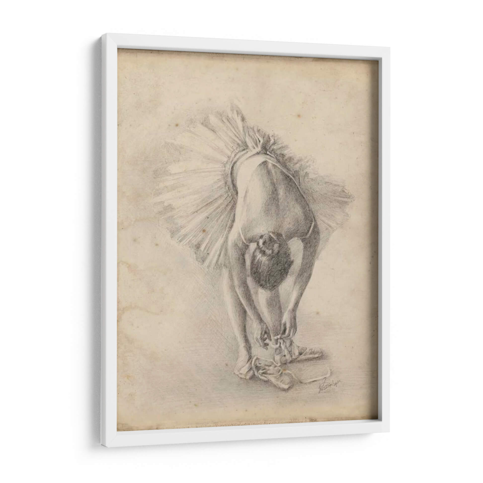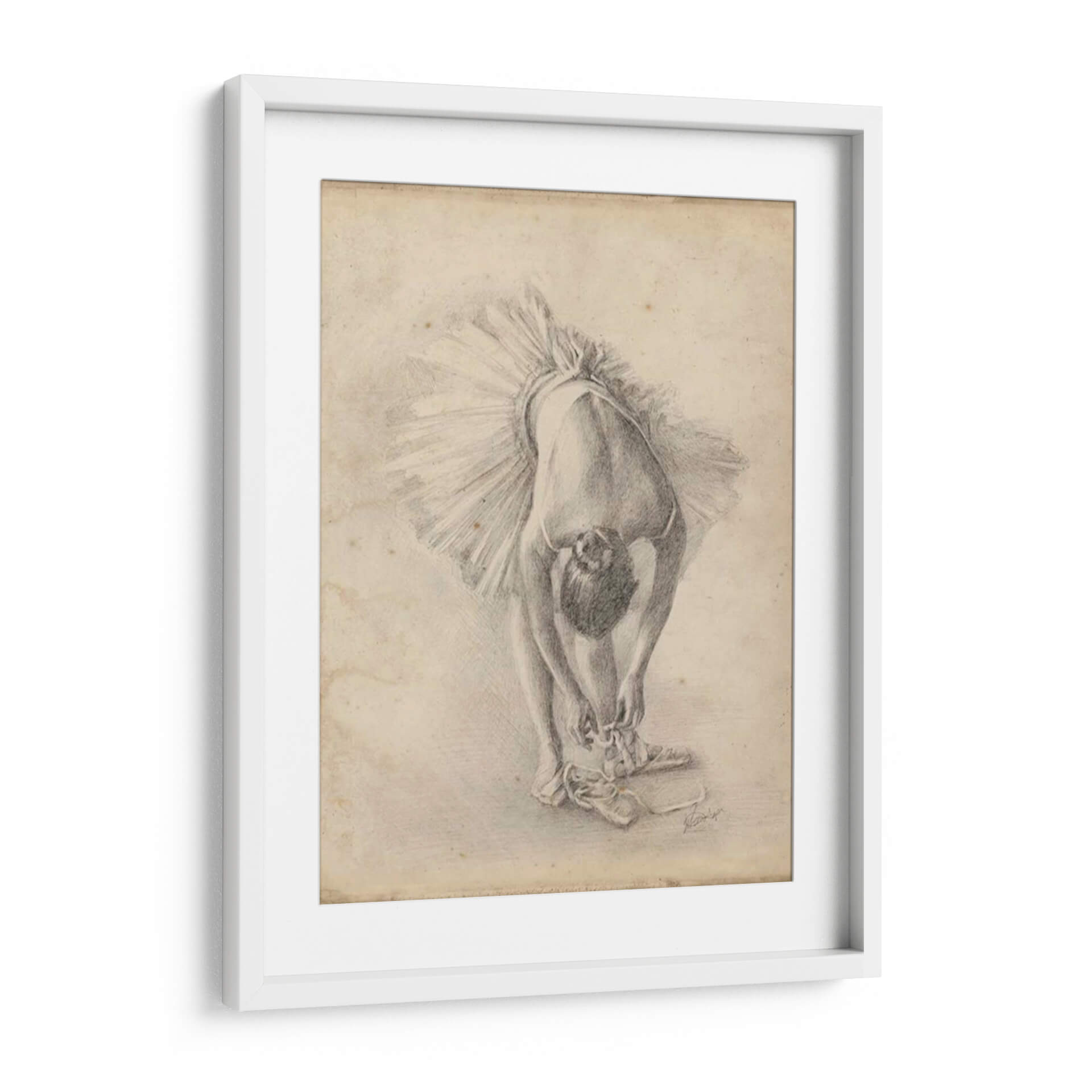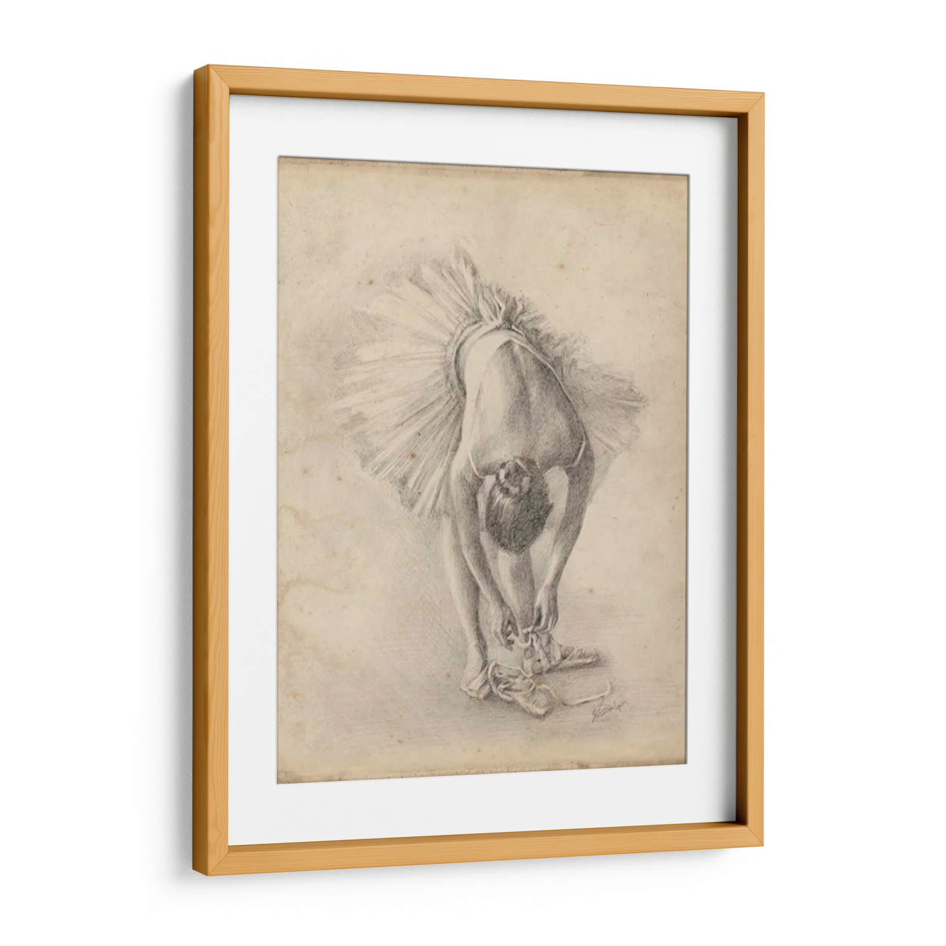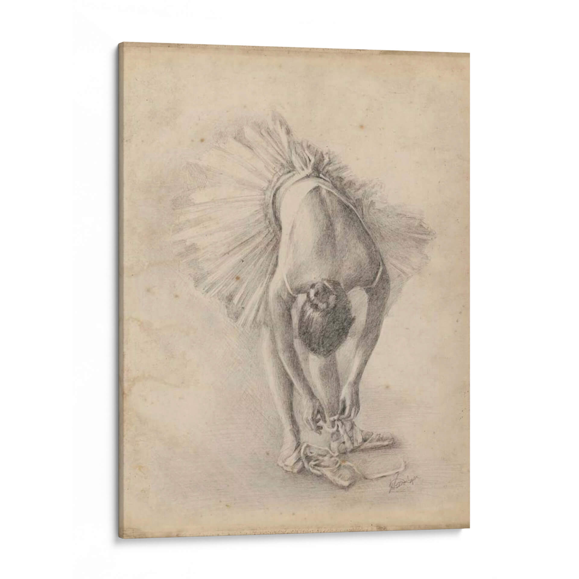 Sumérgete en la delicadeza y el arte de la danza con nuestro cuadro decorativo "Antiguo Bailarina Estudio I" de Ethan Harper. Esta obra maestra captura un momento íntimo y de profunda concentración de una bailarina en pleno estudio, atándose sus zapatillas de ballet. Realizada con una técnica de lápiz magistral, la pieza resalta la elegancia de la figura humana y la expresividad de cada movimiento, incluso en la quietud. Los tonos sepia y grises sutiles, junto con la textura que evoca el papel antiguo, confieren a esta obra un aire clásico y atemporal. La iluminación suave y las sombras cuidadosamente sombreadas añaden profundidad y realismo, invitando al espectador a ser testigo de la disciplina y la pasión que definen a una bailarina. Es la pieza decorativa perfecta para añadir un toque de sofisticación y serenidad a cualquier espacio, ya sea una sala de estar, un dormitorio, un estudio de danza o una oficina con inspiración artística. Este cuadro decorativo es una celebración de la belleza del movimiento y la dedicación, ideal para quienes aprecian el arte figurativo y la estética clásica. Su diseño evoca calma y admiración, convirtiéndose en un punto focal que inspira y embellece.