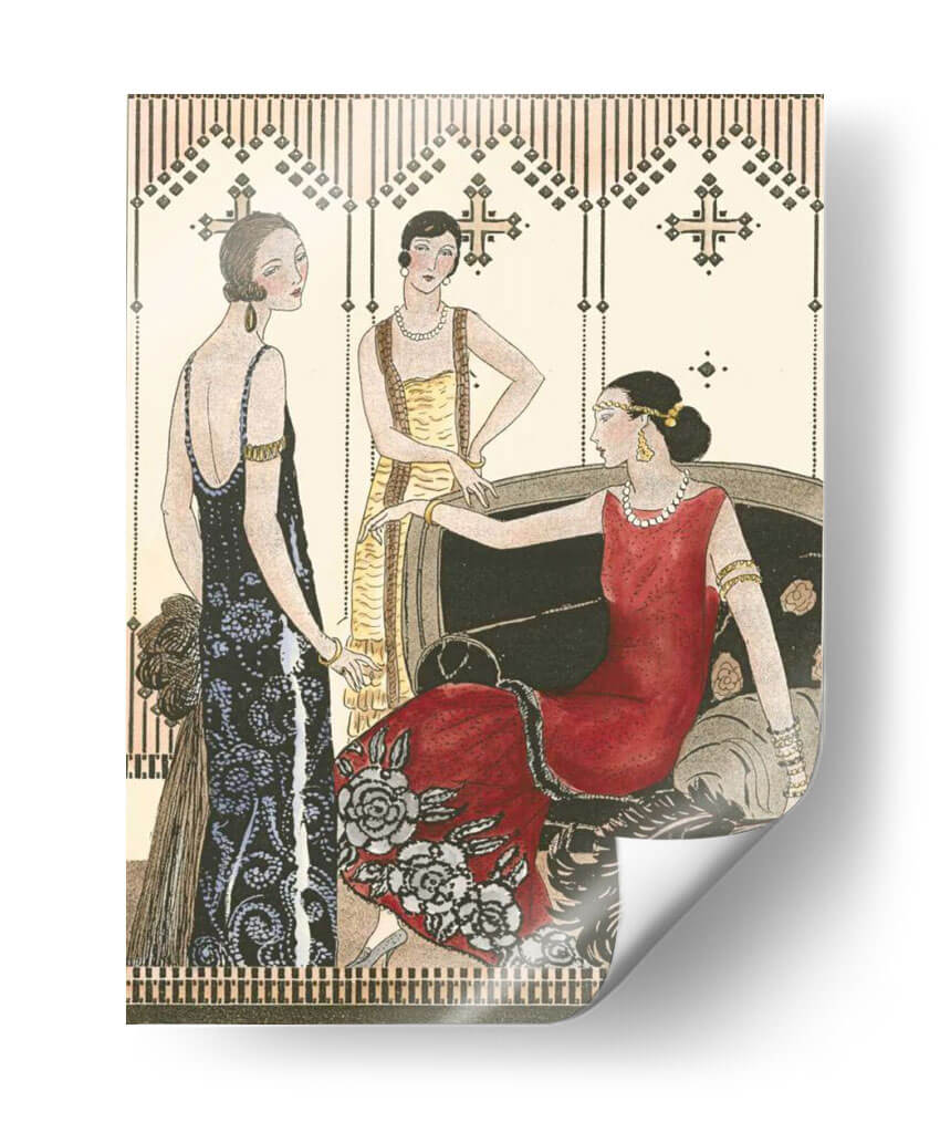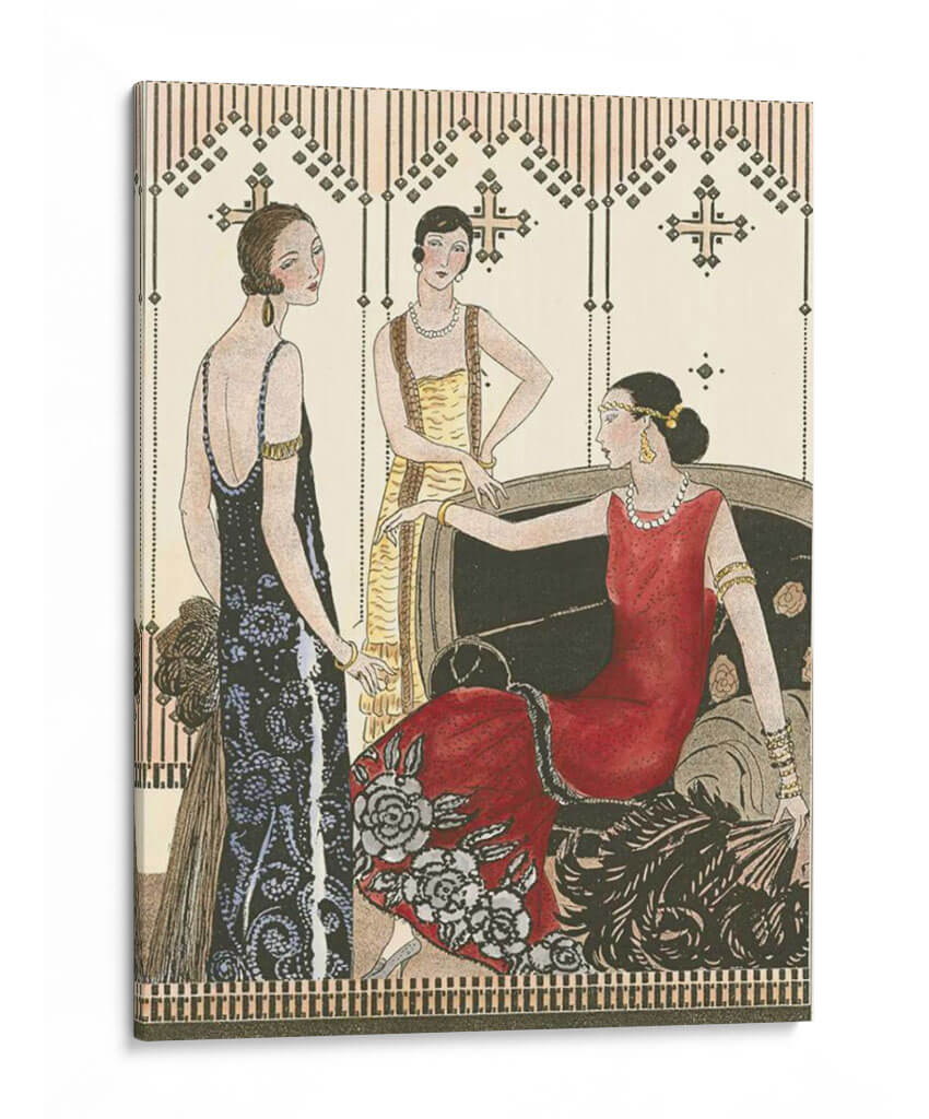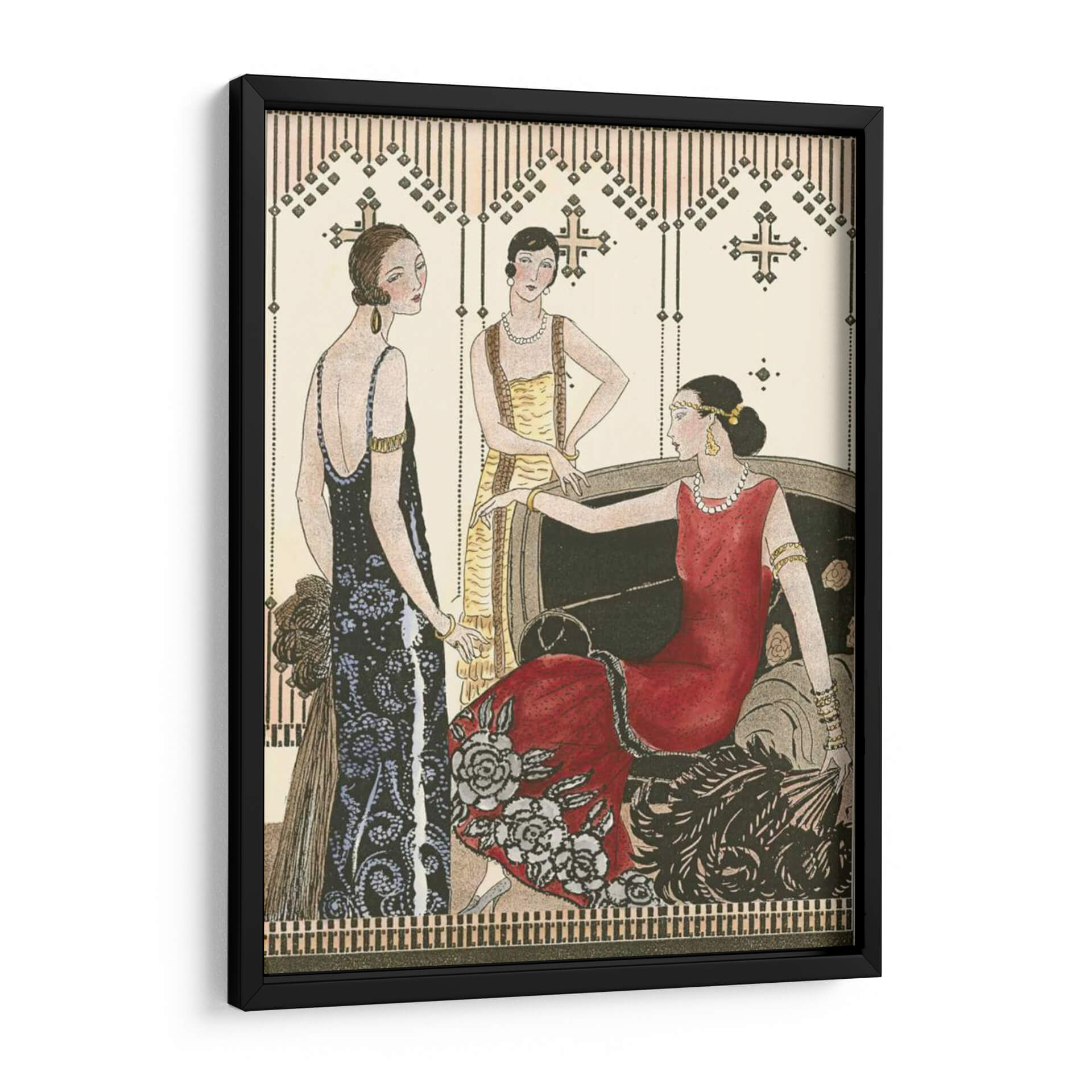 Sumérgete en la opulencia y el glamour de la era Art Déco con "Art Deco Elegance Iv", una obra maestra visual que captura la sofisticación de una época pasada. Este cuadro decorativo presenta a tres mujeres elegantemente vestidas, evocando un ambiente de salón chic y conversación animada. Los colores predominantes, como el rojo vibrante del vestido de una de las figuras, el dorado sutil de los detalles y el azul profundo de otro atuendo, se combinan con un fondo de tonos neutros y patrones geométricos distintivos del estilo Art Déco. La composición, con sus líneas estilizadas y figuras estilizadas, crea una sensación de movimiento y profundidad. Ideal para añadir un toque de elegancia atemporal a tu sala de estar, comedor u oficina, esta pieza es perfecta para aquellos que aprecian el diseño clásico y la moda vintage. Transforma tu espacio con este retrato de moda que irradia estilo y refinamiento, convirtiéndose en un punto focal que inspira conversación y admiración.