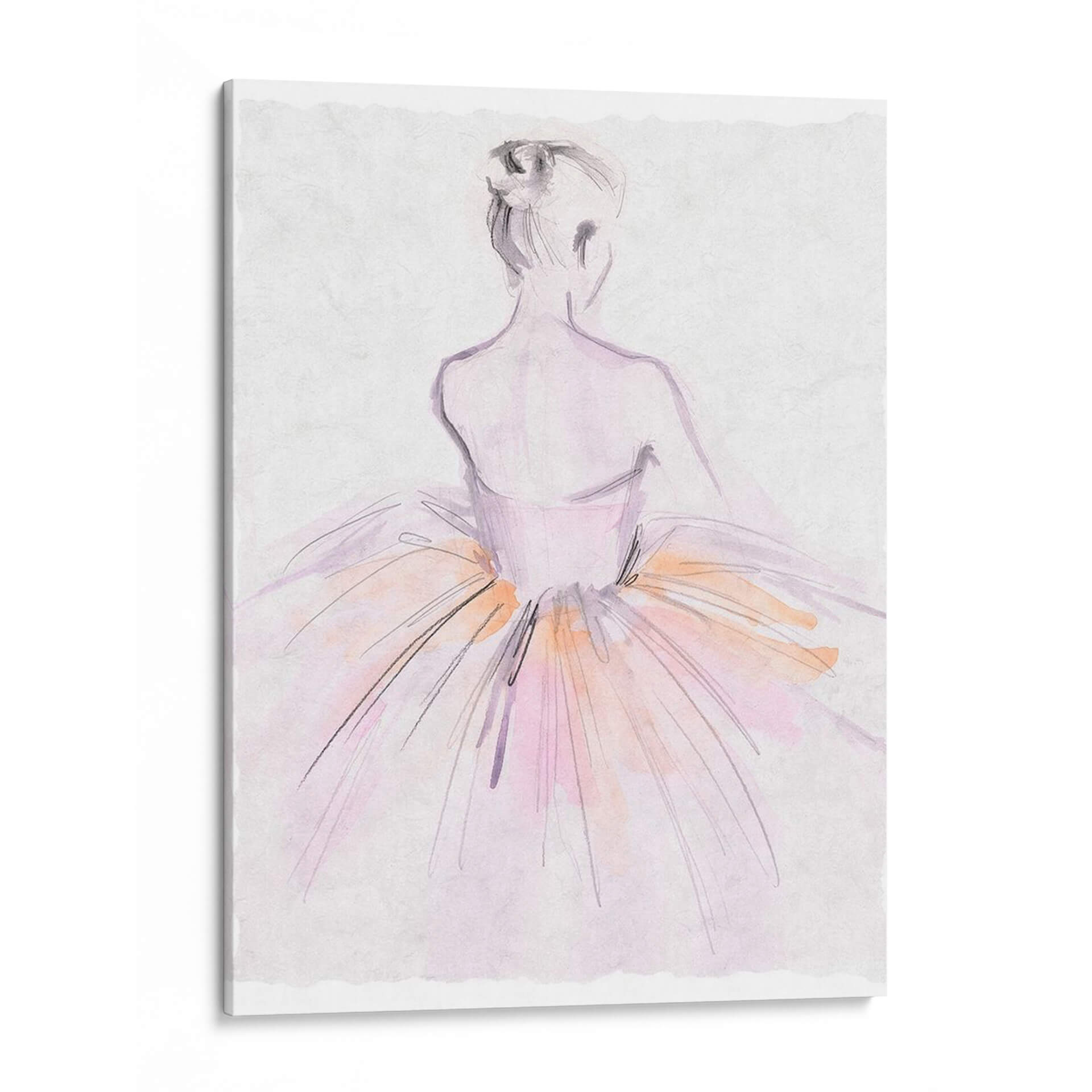 Sumérgete en la delicadeza y el movimiento con "Bailarina Acuarela II", una obra de arte que captura la esencia de la danza con trazos etéreos y una paleta de colores pastel. Esta pieza, creada por la artista Jennifer Paxton Parker, presenta la figura de una bailarina desde atrás, envuelta en un tutú que se despliega en tonos suaves de rosa y naranja, evocando una sensación de gracia y ligereza. La técnica de acuarela, combinada con líneas de boceto a lápiz, le confiere un aire de intimidad y espontaneidad, como si capturase un instante fugaz de una actuación. El fondo neutro y texturizado permite que la figura de la bailarina sea el centro de atención, proyectando una atmósfera de serenidad y elegancia. Ideal para añadir un toque de sofisticación y dulzura a cualquier espacio, este cuadro decorativo es perfecto para dormitorios, salas de estar o estudios donde se busca inspiración y calma. Su estilo contemporáneo y su temática universal lo convierten en una adición versátil para diversos estilos de decoración, desde el minimalista hasta el bohemio chic. "Bailarina Acuarela II" no es solo una imagen, es una invitación a sentir la poesía del movimiento y la belleza efímera de la danza.