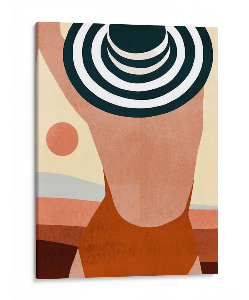 Sumérgete en la calidez y el estilo de "Bañadores de Sunseeker II", una cautivadora obra de arte de Victoria Borges. Esta pieza evoca la esencia de un día soleado en la playa con su vibrante paleta de colores terrosos y un toque de azul profundo en el icónico sombrero. La composición minimalista, centrada en la figura de una mujer de espaldas luciendo un sombrero de rayas audaz, crea una atmósfera de serenidad y elegancia veraniega. Los tonos cálidos, que van desde el naranja quemado hasta ocres suaves, se mezclan con sutiles capas de color que sugieren un paisaje desértico o una costa al atardecer. El sol circular, un punto focal adicional, añade un toque de calidez y vitalidad. Este cuadro decorativo es perfecto para añadir un aire vacacional y sofisticado a cualquier espacio, desde una sala de estar moderna hasta un dormitorio que busque un refugio de tranquilidad. "Bañadores de Sunseeker II" no es solo una imagen, es una invitación a relajarse y disfrutar de la belleza del verano. Ideal para quienes buscan arte contemporáneo que combine diseño audaz con una sensación de calma y evasión. Añade un toque de estilo único a tu hogar u oficina con esta pieza inspiradora de Victoria Borges.
